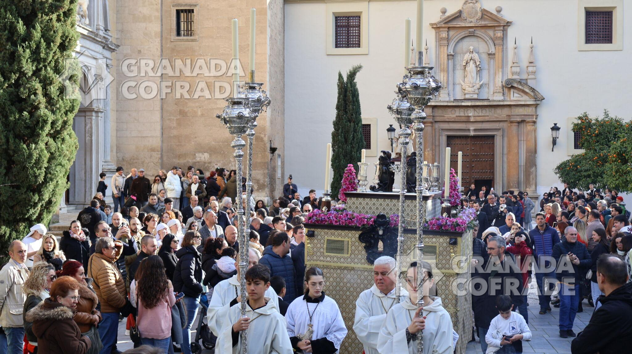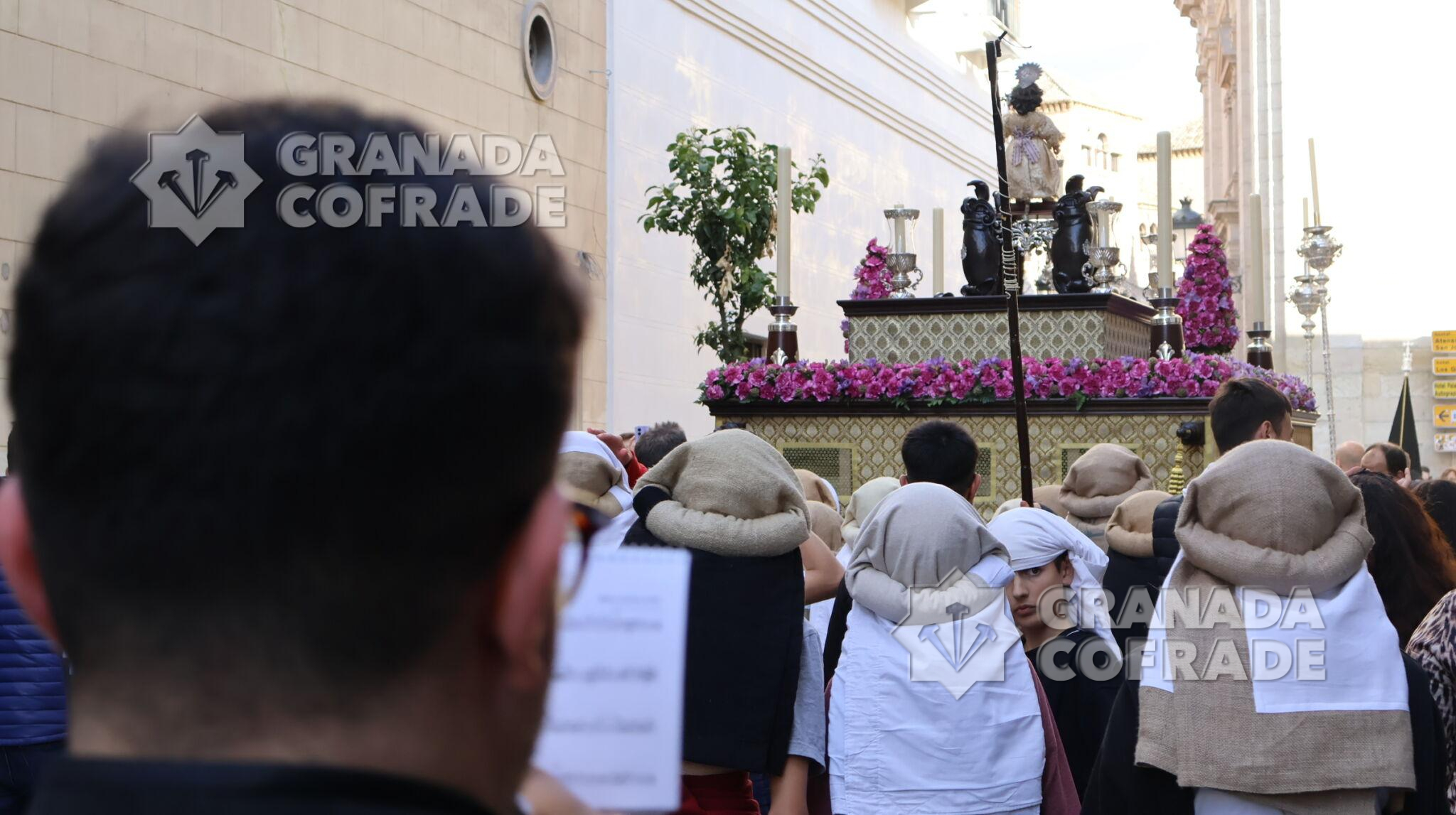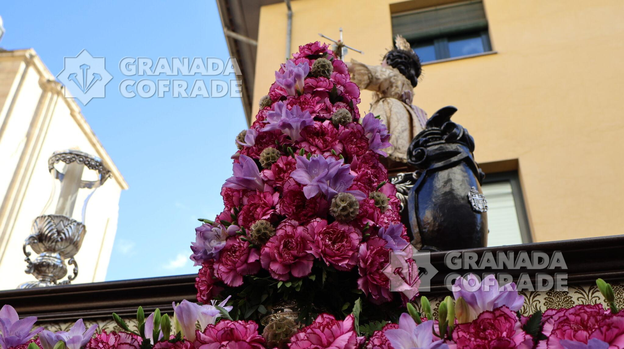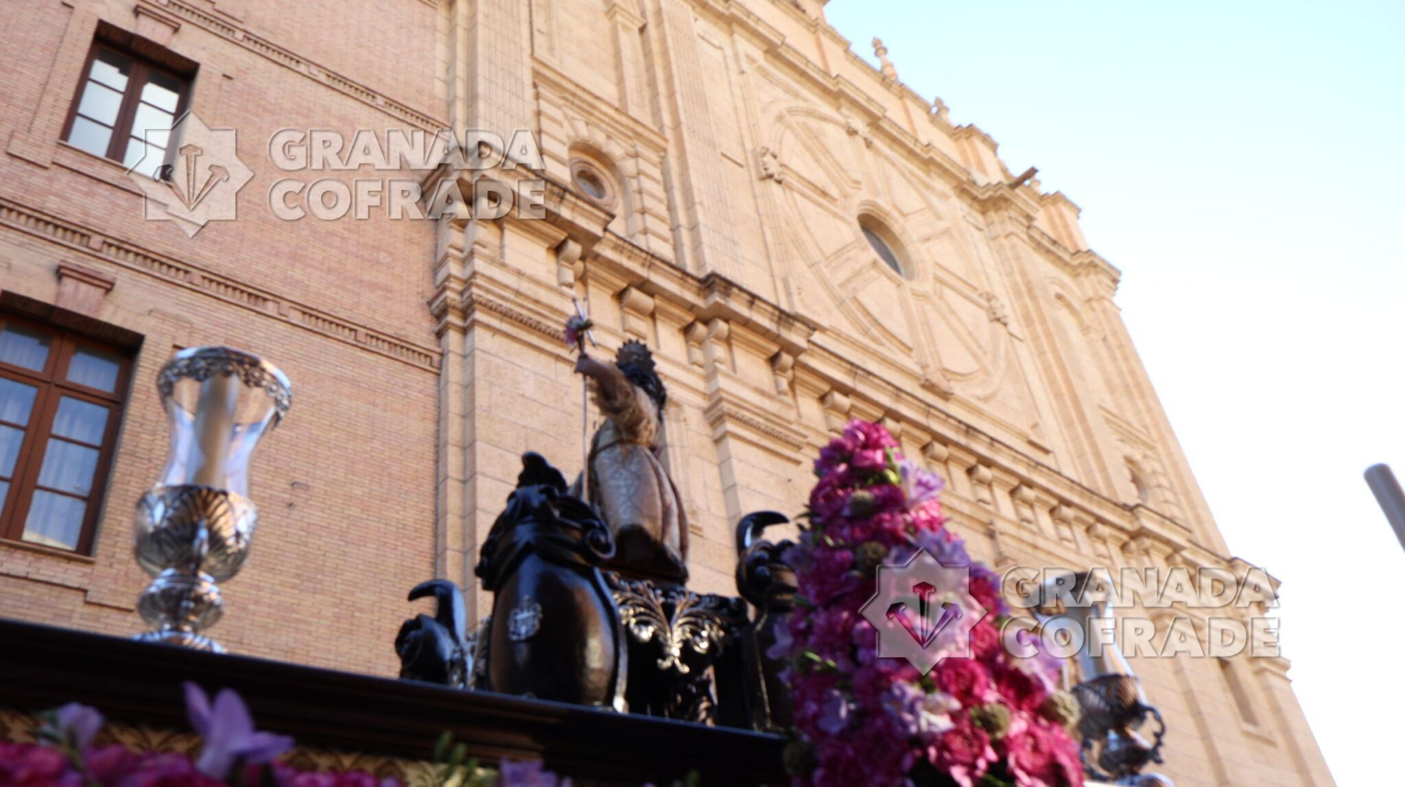 El recorrido de la comitiva religiosa se dirigió después de la salida hacia Rector López Argüeta y calle San Jerónimo hasta la plaza de la Romanilla, bajando por Trinidad a Duquesa y regresando de nuevo al monasterio de San Jerónimo por López Argüeta. Una salida procesional que se veía acompañada por la banda de cornetas y tambores de las Angustias, de Motril. El paso calzaba veinte costaleros a las órdenes de Samuel López.