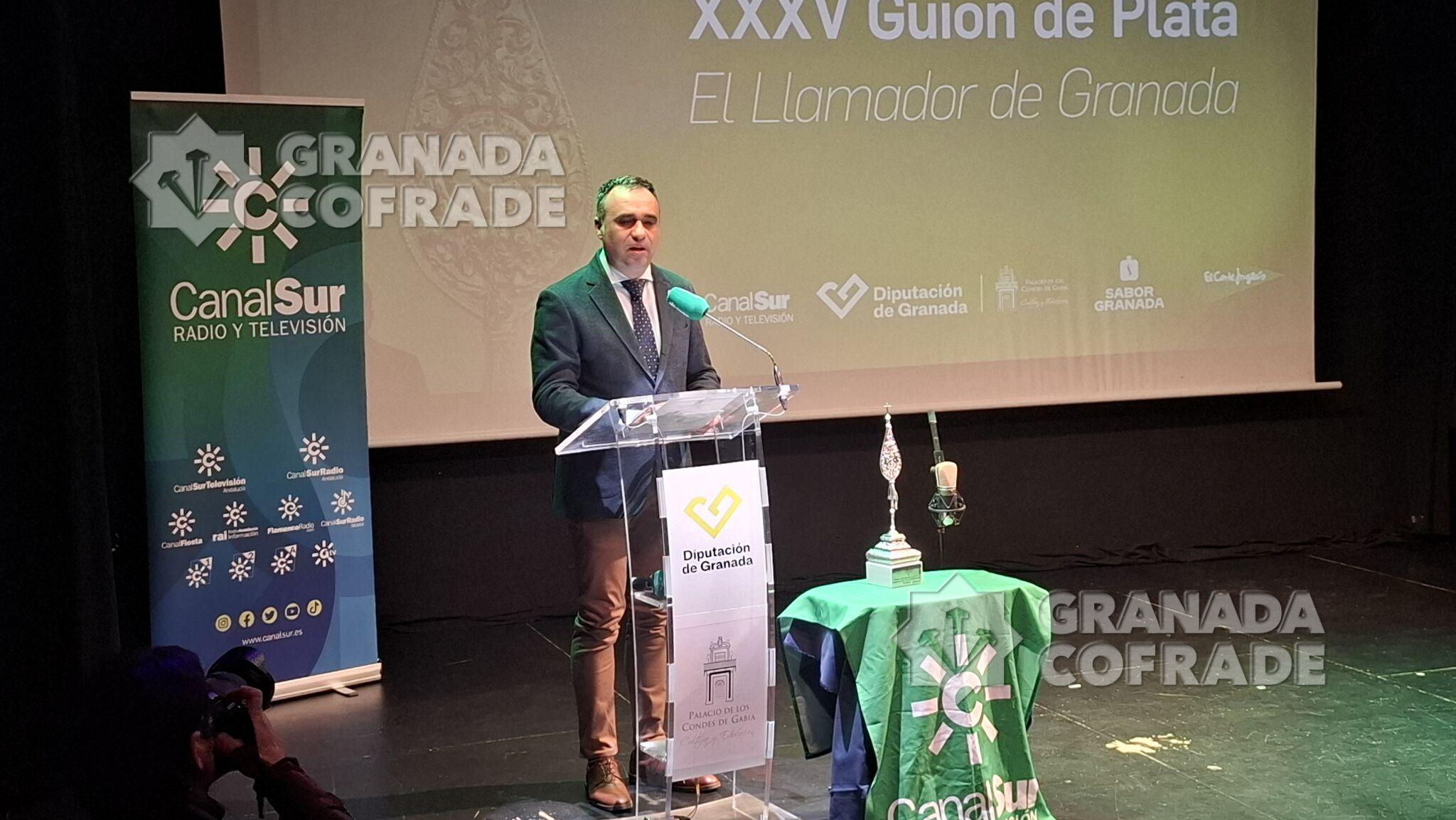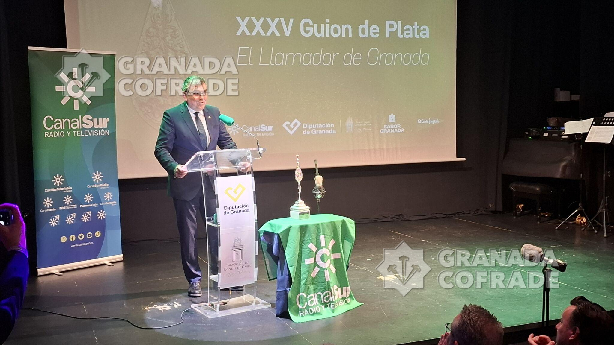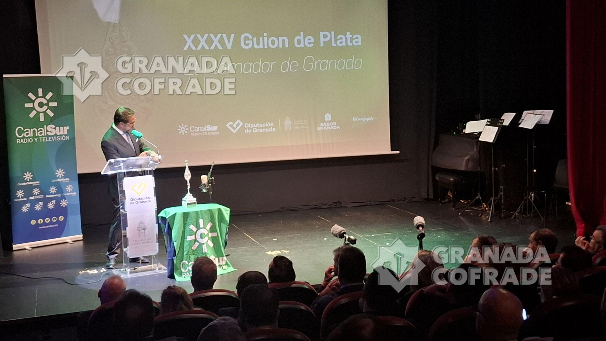La cofradía del Santísimo Cristo de la Misericordia, del Silencio, recogió ayer el «Guion de Plata» de Canal Sur en Granada. Una entrega que efectuó al hermano mayor de la corporación de la madrugada del Viernes Santo el director general de Canal Sur, Juan de Dios Mellado, acompañado por el director territorial en Granada, Aurelio Cappa y el presidente de la Diputación Provincial de Granada, Francis Rodríguez. Fue anoche en el Salón de Actos del Palacio de los Condes de Gabia, del Realejo, en un acto que estuvo acompañado musicalmente por el grupo «GranaMusic» y que contó con las principales autoridades locales, provinciales y autonómicas, unidas al Subdelegado del Gobierno. Estaba además del presidente de la Diputación, distintos parlamentarios andaluces junto al Delegado Territorial del Gobierno Andaluz en Granada, Antonio Granados y la Alcaldesa de Granada, Marifrán Carazo, quien cerró el turno de palabra. El presidente de la Federación de Cofradías asistió también al igual que el consiliario y Delegado Episcopal, José Gabriel Martín, y el vicario de Pastoral, José Carlos Isla.