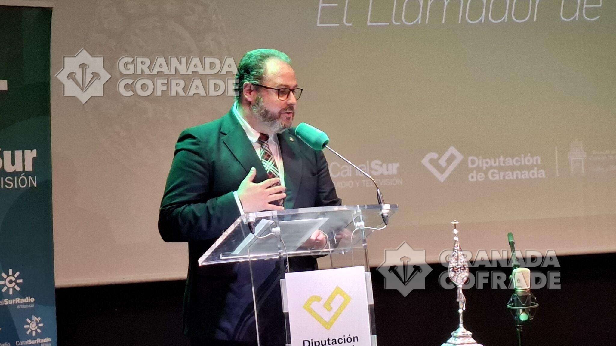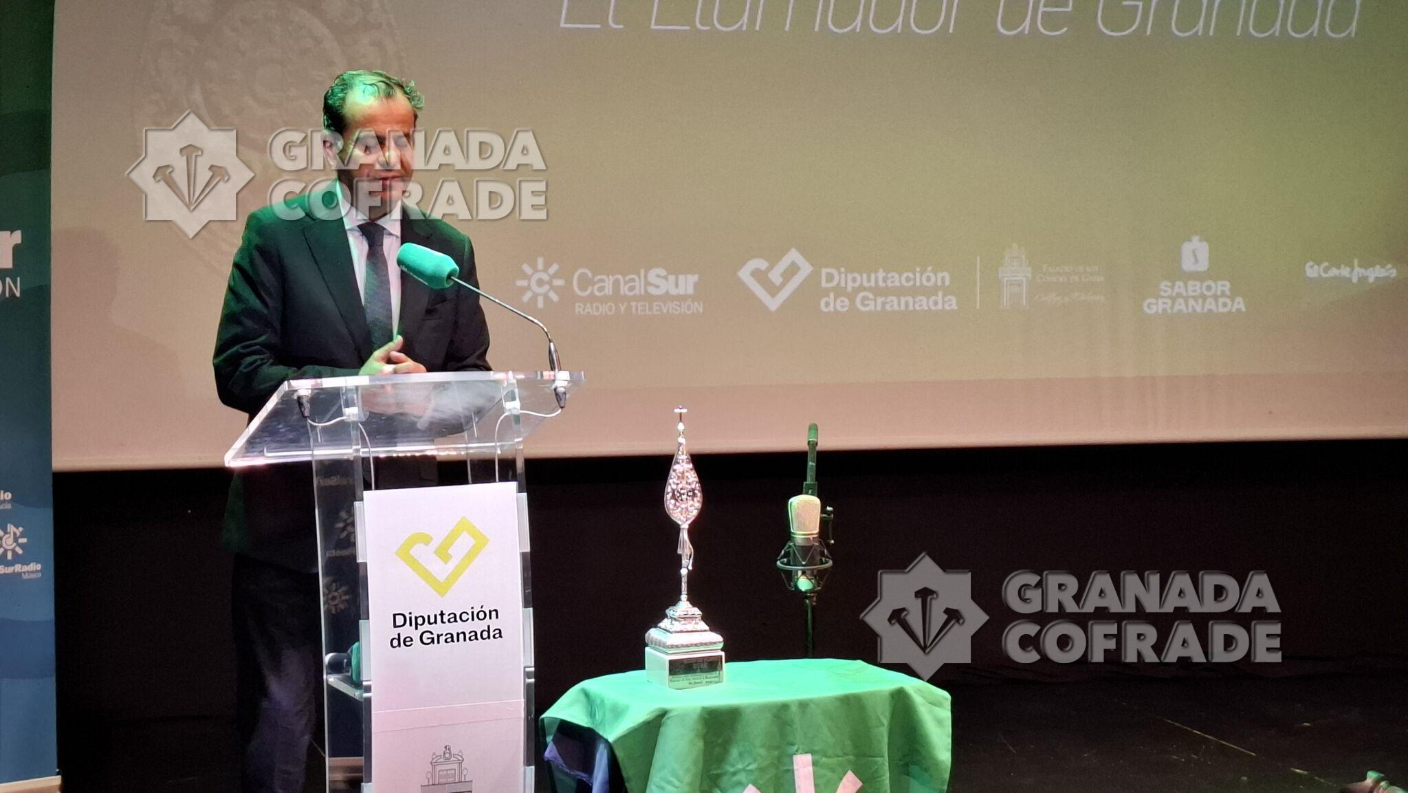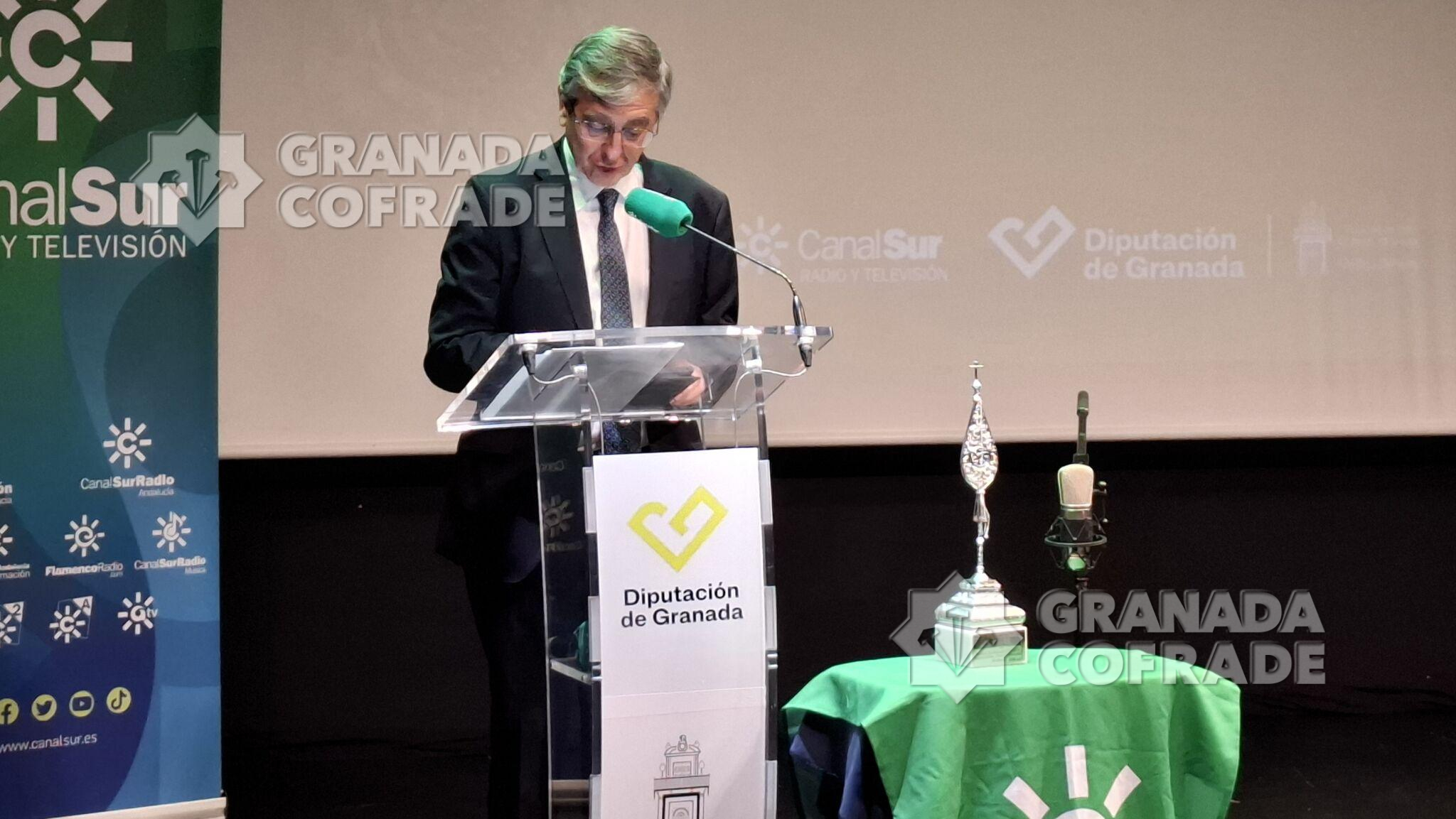 La cofradía del Santísimo Cristo de la Misericordia, del Silencio, recogió ayer el «Guion de Plata» de Canal Sur en Granada. Una entrega que efectuó al hermano mayor de la corporación de la madrugada del Viernes Santo el director general de Canal Sur, Juan de Dios Mellado, acompañado por el director territorial en Granada, Aurelio Cappa y el presidente de la Diputación Provincial de Granada, Francis Rodríguez. Fue anoche en el Salón de Actos del Palacio de los Condes de Gabia, del Realejo, en un acto que estuvo acompañado musicalmente por el grupo «GranaMusic» y que contó con las principales autoridades locales, provinciales y autonómicas, unidas al Subdelegado del Gobierno. Estaba además del presidente de la Diputación, distintos parlamentarios andaluces junto al Delegado Territorial del Gobierno Andaluz en Granada, Antonio Granados y la Alcaldesa de Granada, Marifrán Carazo, quien cerró el turno de palabra. El presidente de la Federación de Cofradías asistió también al igual que el consiliario y Delegado Episcopal, José Gabriel Martín, y el vicario de Pastoral, José Carlos Isla.