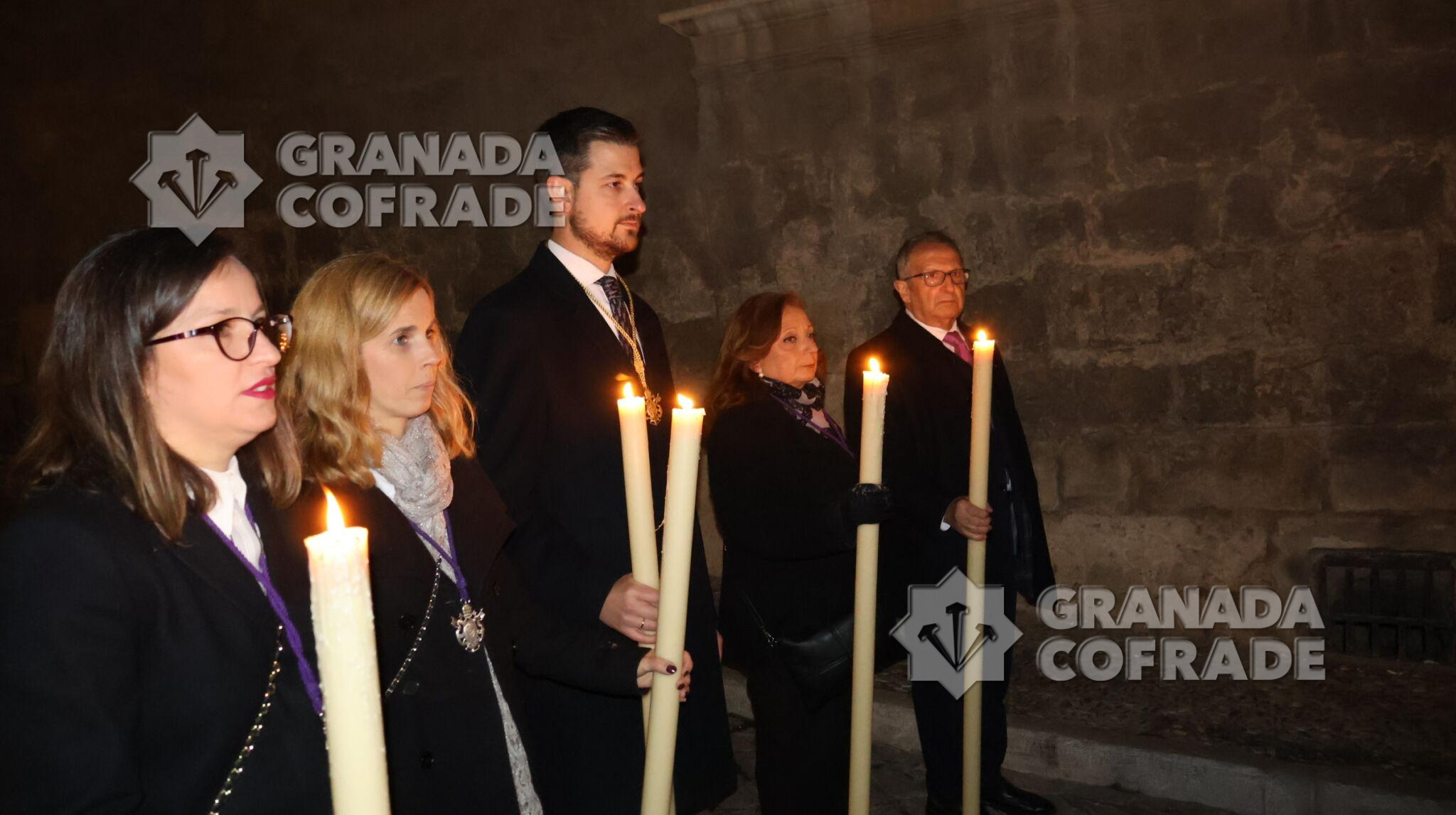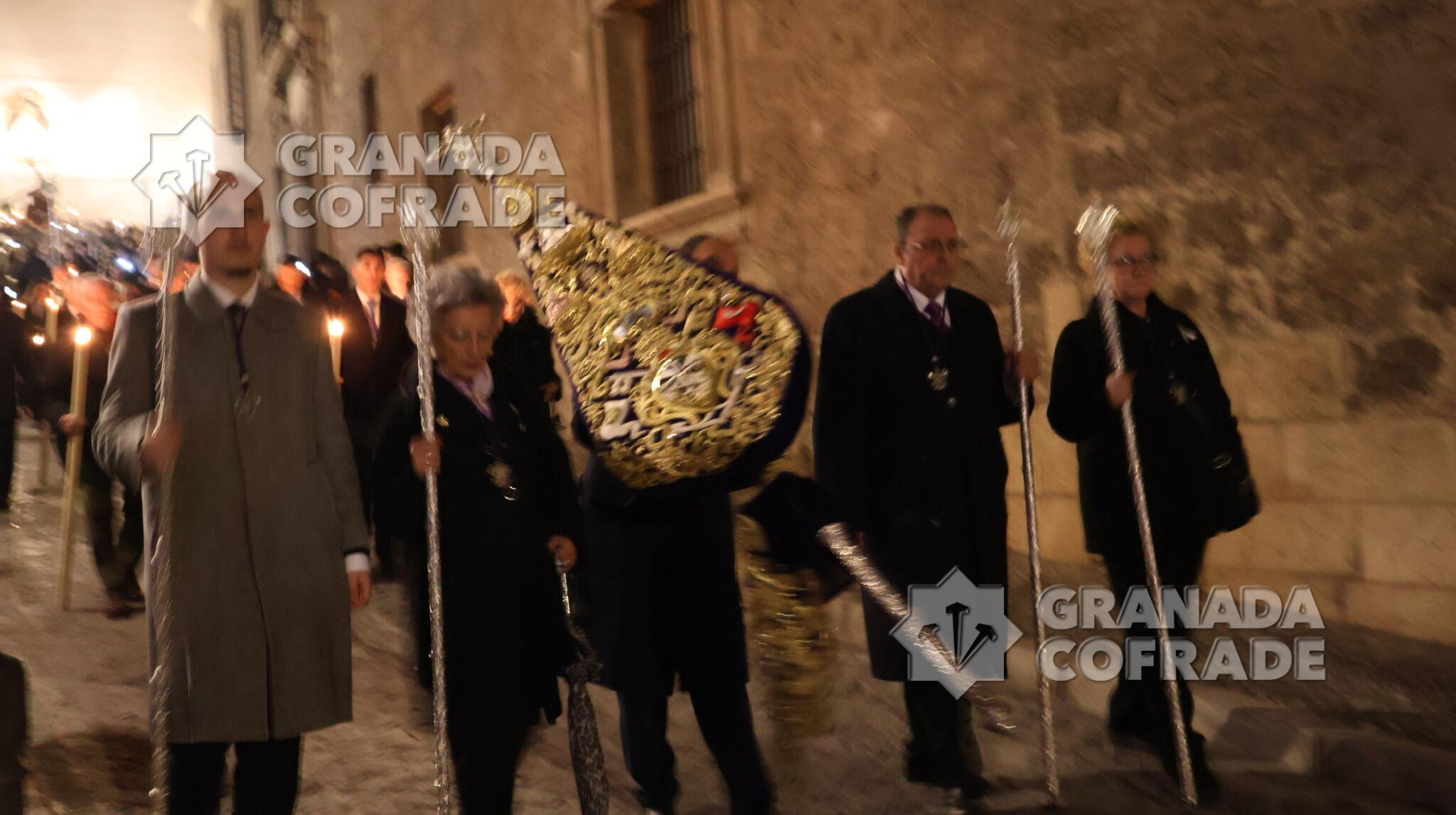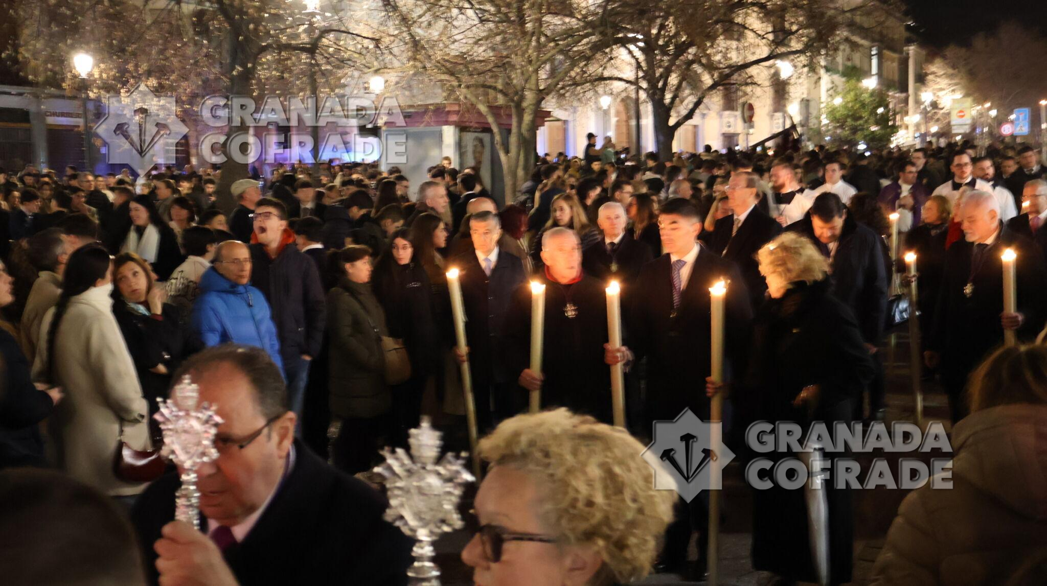El cortejo estaba integrado por cuarenta y cinco parejas de hermanos y en la ante presidencia participaban, como es costumbre en esta hermandad, los hermanos mayores que ha tenido la corporación en las últimas décadas. Hacia las nueve de la noche llegó al templo de Santo Domingo ocupando su capilla en el interior y aguardando el momento de la celebración de los cultos cuaresmales de la hermandad y los preparativos para la estación de penitencia del Miércoles Santo.