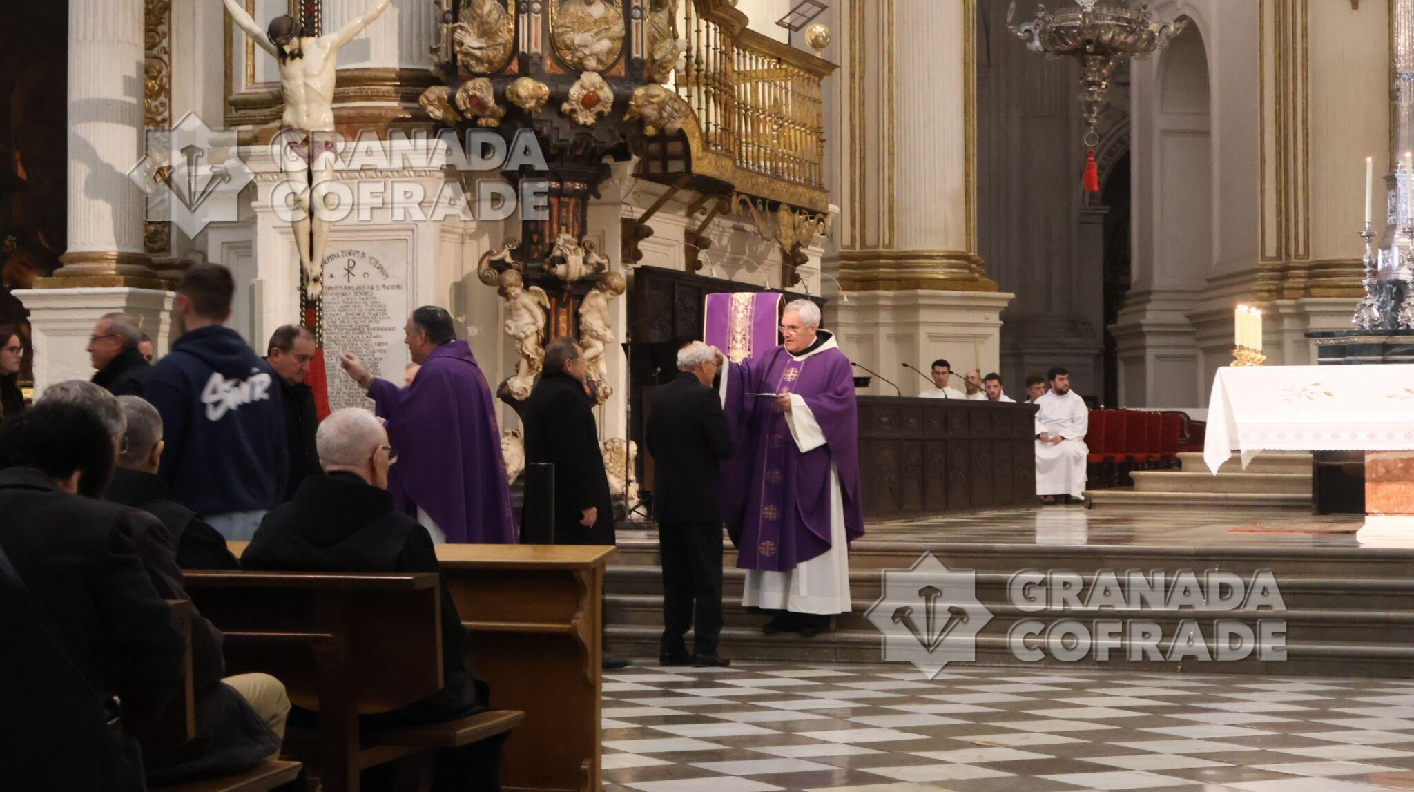 «Vivamos la cuaresma con esa condición necesaria para vivir de verdad el Triduo Santo de la Semana Santa y en la Vigilia Pascual» señaló el prelado granadino en la celebración de la Eucaristía del Miércoles de Ceniza en una Catedral totalmente abarrotada de fieles que asistieron a la celebración como no se recuerda de participación, desde hace muchos años. La presencia en el tabernáculo central de la Capilla Mayor, perfectamente encajada, de la urna con las reliquias de San Juan de Dios atrajo a muchos mas granadinos deseosos de recordar al Santo de los Pobres que falleció en nuestra ciudad ahora hace 475 años. Este hecho fue remarcado con insistencia el arzobispo Gil Tamayo en su homilía, uniendo el sentido de la cuaresma, la práctica del ayuno, de la oración y de la limosna «con la vida ejemplar de entrega de San Juan de Dios en nuestra ciudad». Hizo un recorrido por las principales virtudes del fundador de la Orden Hospitalaria y de «su amor por los más desfavorecidos» recorriendo su biografía, la devoción a la Virgen de Guadalupe en cuyo santuario aprendió la formación suficiente para asistir a los enfermos de Granada como «un especialista en ayudar y en acompañar a los enfermos». El arzobispo recordó que «es el Miércoles de Ceniza de 2025 con el que iniciamos la cuaresma que se sustenta en los tres ejes fundamentales que hemos escuchado en el Evangelio que hemos proclamado. Por una parte la oración y por otra, el ayuno y la limosna que Juan Ciudad «practicó como una forma de entregarse por amor a los necesitados. Recorrió Europa, en Ceuta, en Gibraltar… este librero que puso tienda junto al Arco de Elvira. ¿Qué nos dice hoy?, porque no es una figura que se pierde en la noche de los tiempos y que recordamos. Es alguien que se pareció a Jesús y que dio su vida por los demás», reflejó el arzobispo.