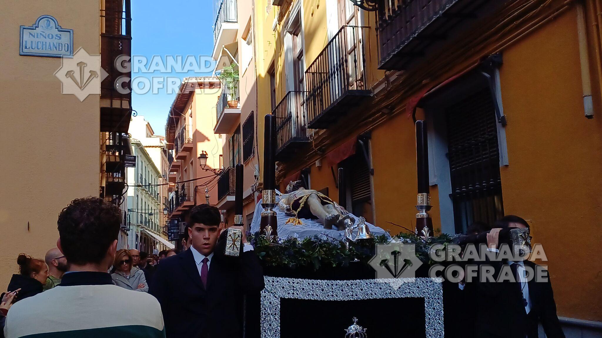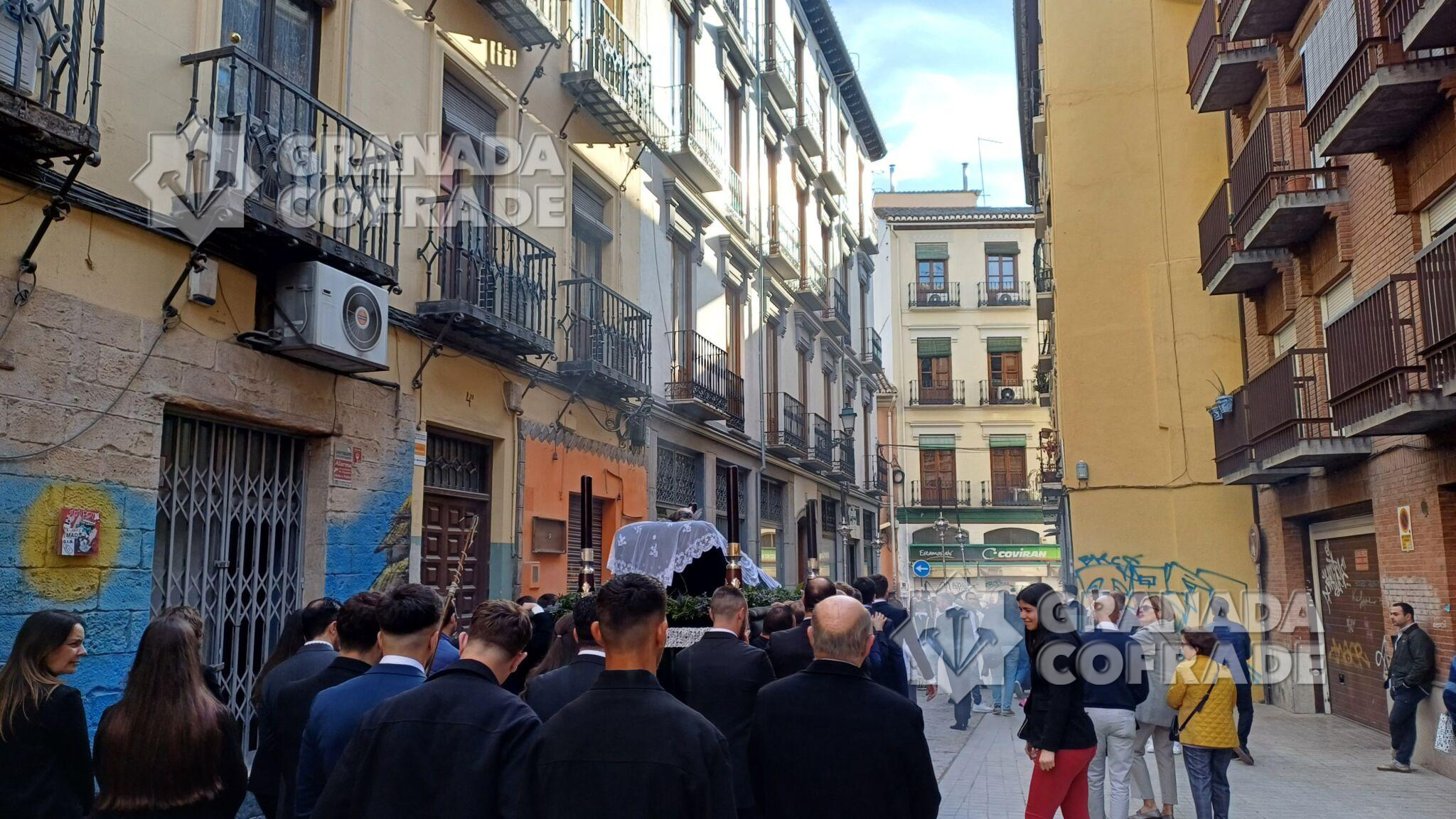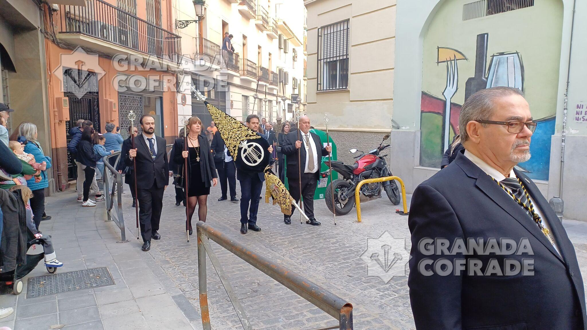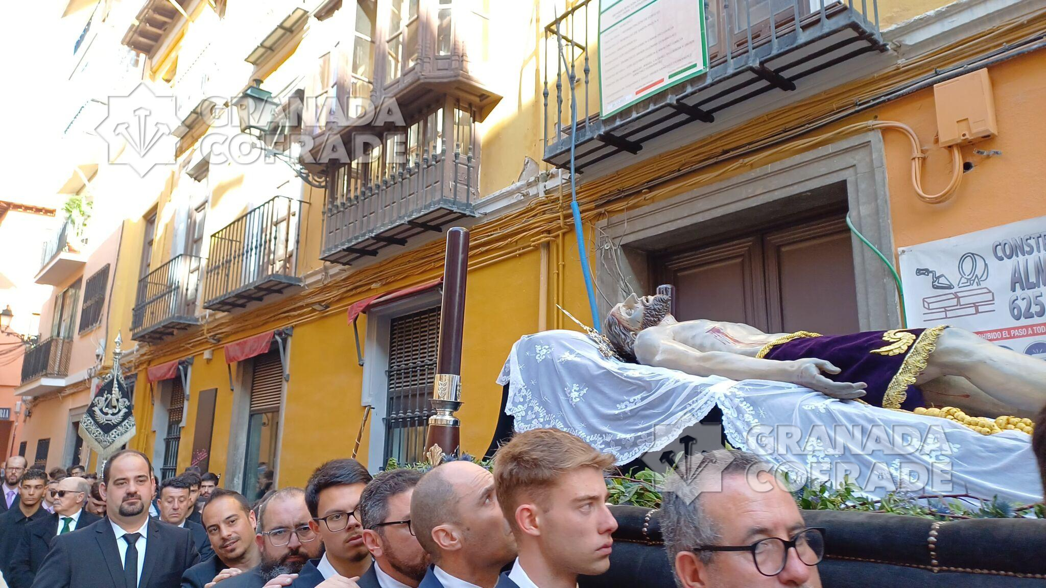 La imagen del Señor del Descendimiento presidió en sus andas de traslado el Vía Crucis extraordinario del Centenario de la revitalización de la hermandad de la Soledad y Descendimiento. Partió del monasterio de San Jerónimo portado por su cuadrilla de costaleros mandada por Miguel Leyva y con el acompañamiento de la banda de música «San Sebastián», de Padul, interpretando composiciones de corte sobrio y solemne. Un recorrido que realizaron veinte parejas de hermanos y que siguió por calle Rector López Argüeta hasta San Jerónimo y Arriola, para seguir por Aranda y entrar en el corazón del barrio del Boquerón y acceder por Santa Paula a Tendillas de Santa Paula, San Jerónimo y Capuchinas para regresar nuevamente a su sede por plaza de la Trinidad hasta Gran Capitán.