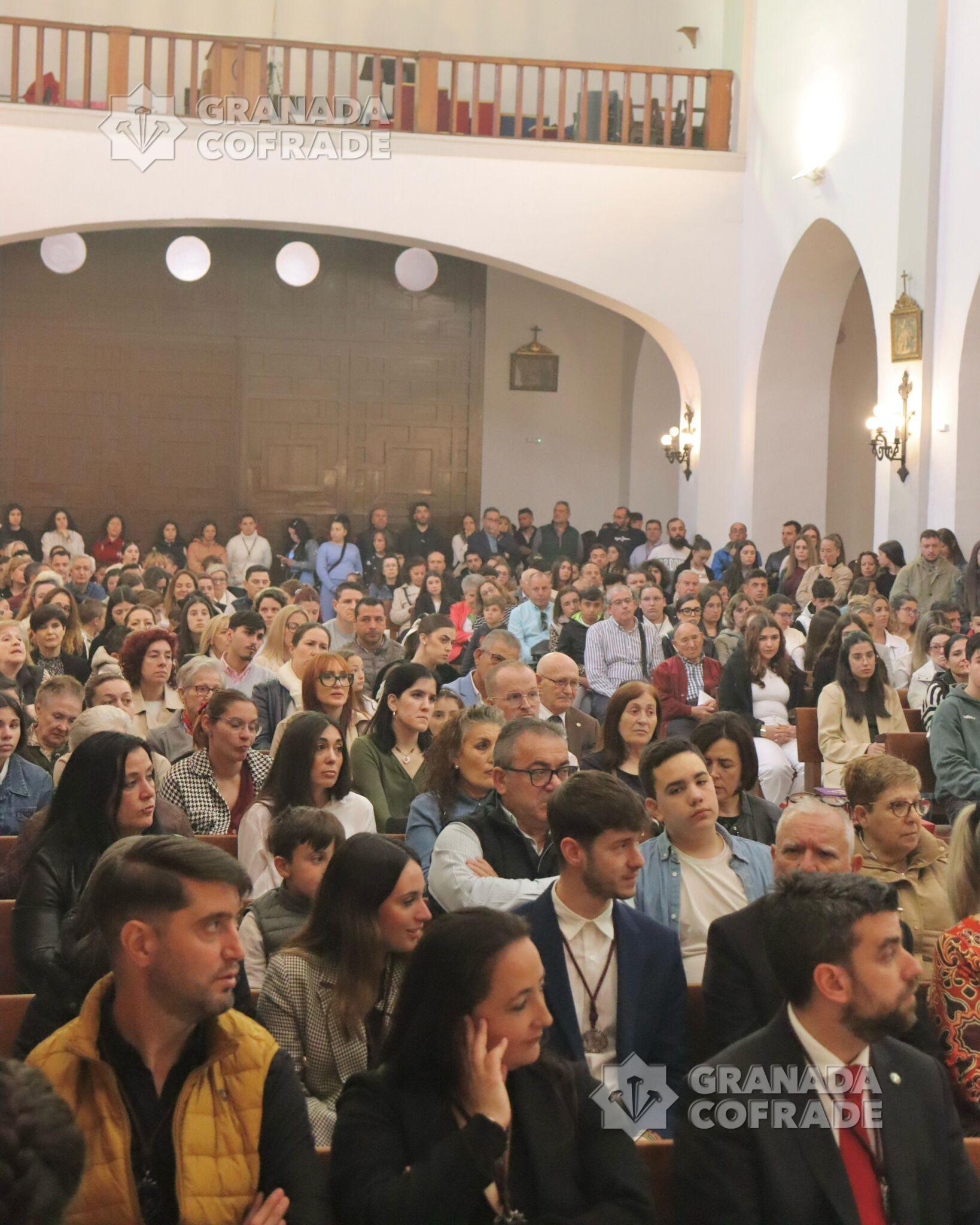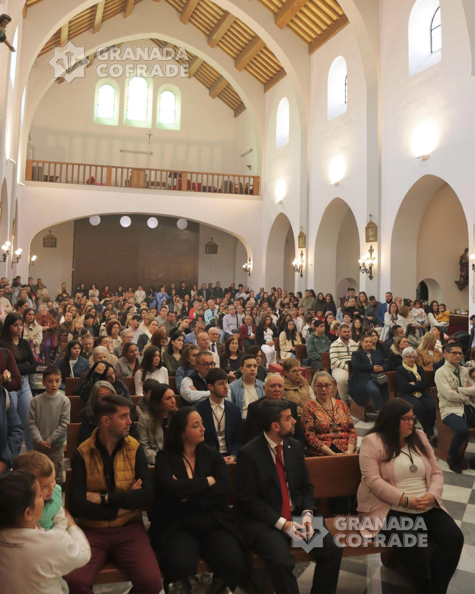 «Portar la medalla de la Hermandad , es proclamar al Mundo que somos Cristianos», dijo el consiliario de la cofradía de Nuestro Padre Jesús del Trabajo en la homilía de la Función Principal de Instituto que tuvo lugar ayer en la sede de esta cofradía del Lunes Santo. Un lleno total y absoluto del templo para esta celebración en la que se impusieron 226 nuevas medallas a otros tantos nuevos hermanos que se incorporan a la nómina de esta cofradía zaidinera. Desde Macarena, una niñas con un mes de edad hasta el nuevo hermano de 73 años, José Luis, había una horquilla de nuevos cofrades, masculinos y femeninos, que juraron Reglas y recibieron la medalla de la corporación. Para ello, además del consiliario de la cofradía y del hermano mayor, se precisó de otros miembros de la Junta de Gobierno para poder corresponder con la medalla a todos los nuevos hermanos de la cofradía, que fueron recibidos ayer ya en la hermandad.