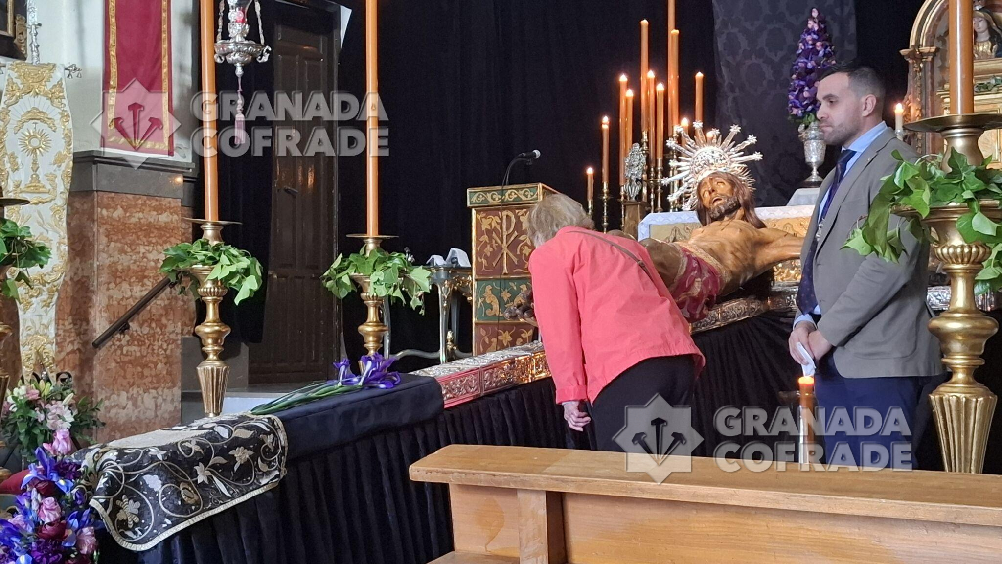 El besapies al Sagrado Protector de Granada continuará a lo largo del día de hoy, Viernes de Dolores, de 10.00 a 21.00 horas y mañana, Sábado de Pasión en el mismo horario hasta que a las nueve de la noche se proceda a la subida al paso de la venerada imagen del Santo Crucifijo de San Agustín.