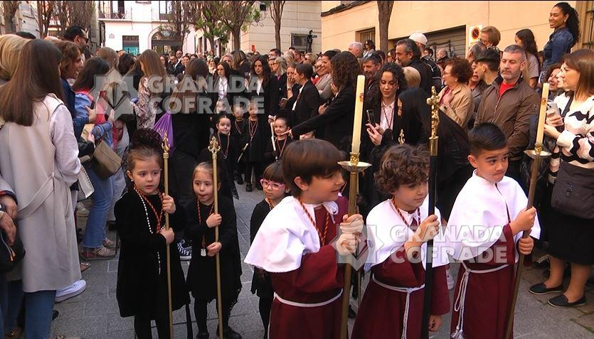 En un barrio tan cofrade como el Realejo tenía que haber procesión infantil. Y nada menos que desde hace diez años el colegio de las Mercedarias se pone en la calle cada Semana de Pasión anunciando la próxima Semana Santa. Fue hace una década cuando un grupo de padres, madres, abuelas y profesoras del colegio Mercedarias pusieron en marcha un proyecto con más ilusión que recursos. Pero la unión hace la fuerza y comenzó una actividad que ayer, Jueves de Pasión, cumplió una década, su procesión infantil. Todo el colegio se involucra desde el mes de octubre en la preparación de esta salida procesional por los aledaños del colegio, aunque sigue siendo el grupo de padres y profesoras quienes son el motor del equipo.