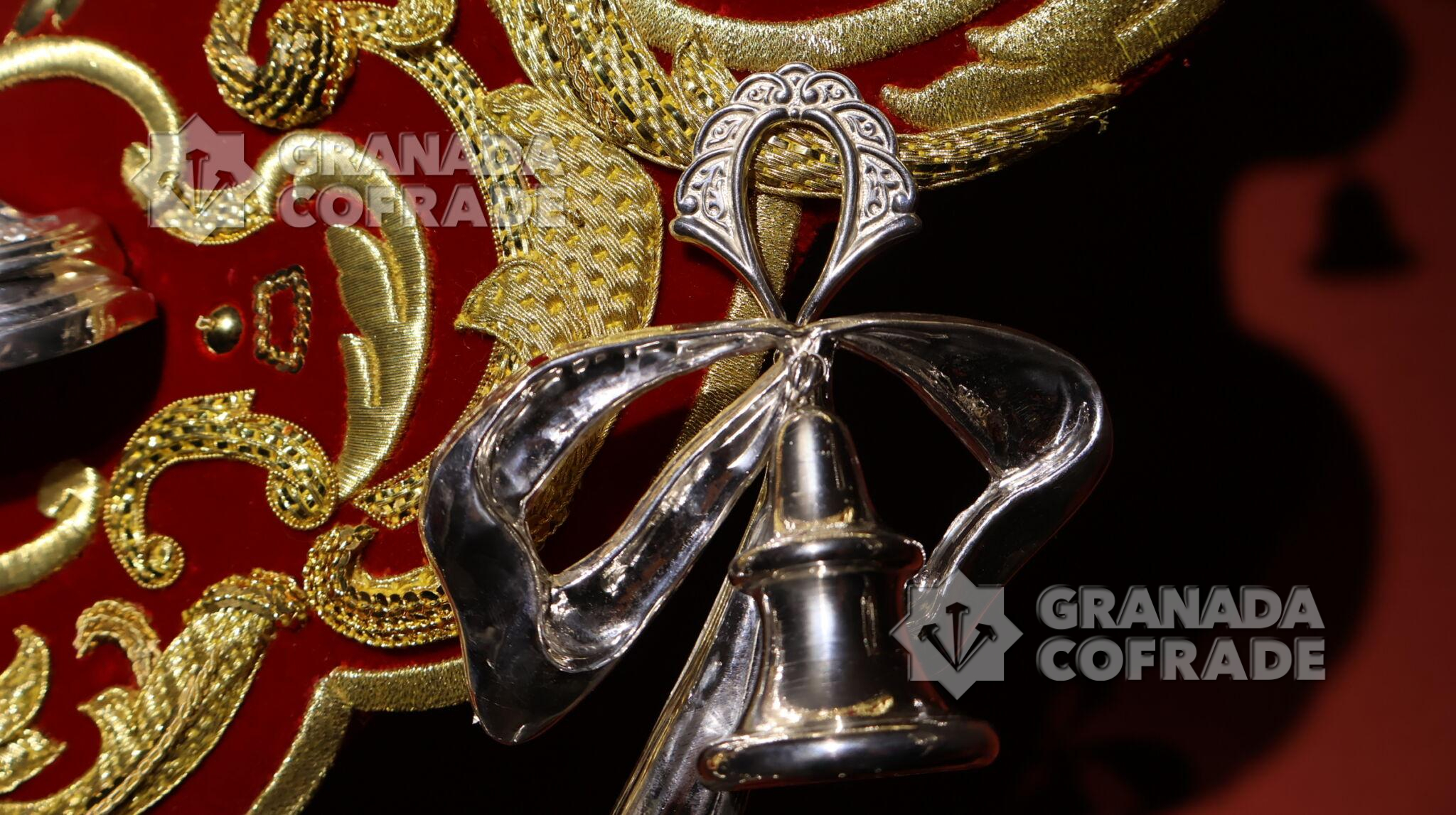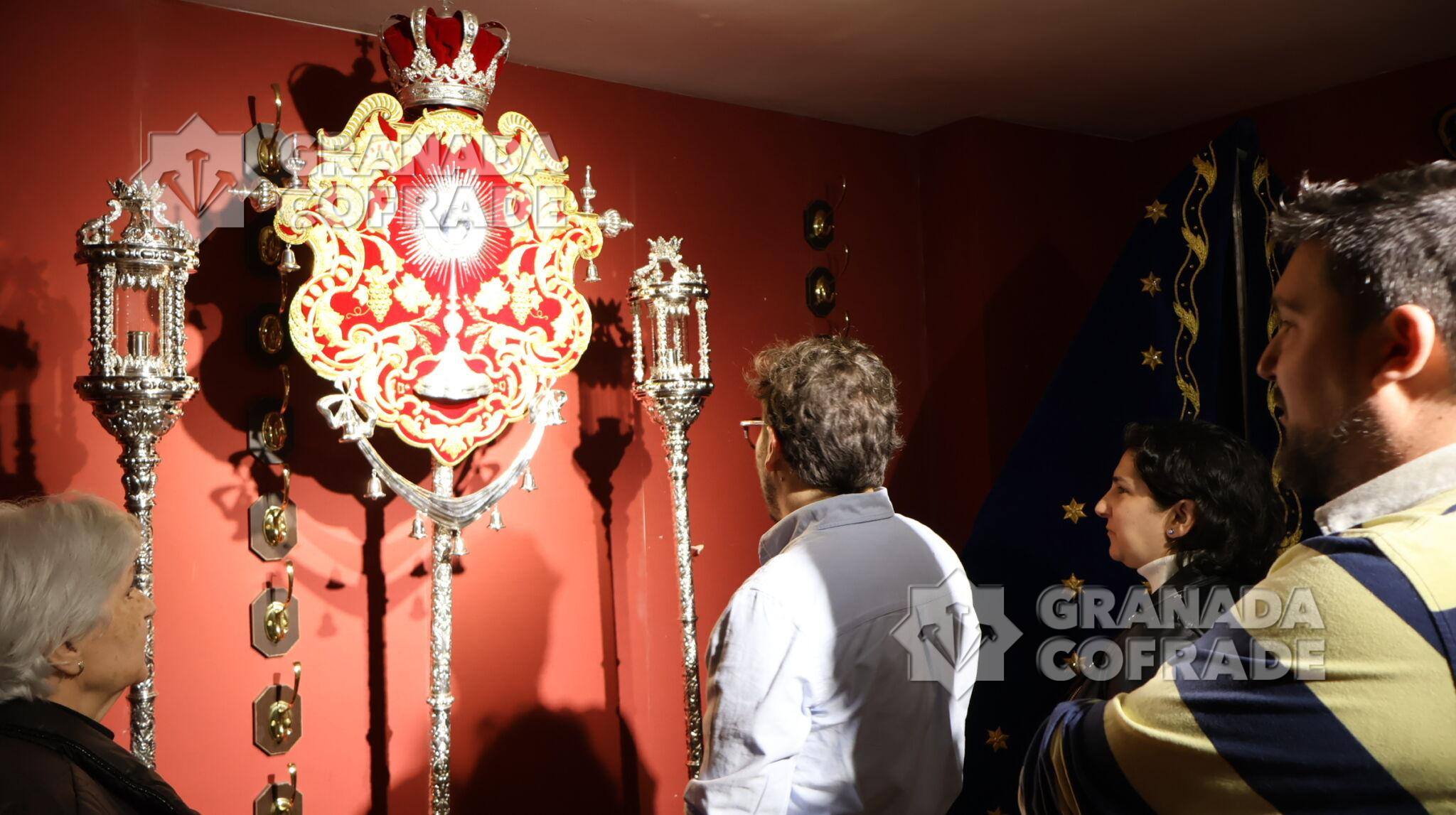 Anoche fue bendecido el nuevo Guion Sacramental que estrenará la hermandad del Santísimo Cristo de la Sagrada Lanzada en su estación penitencial del Martes Santo. Corrió a cargo del consiliario y párroco de la de Nuestra Señora de los Dolores, Cristóbal Sánchez, y en su casa de hermandad ubicada junto al templo de los Dolores, en el Zaidín. Después de la oración y bendición, asperjó con agua bendita el nuevo enser que se acompaña también de dos originales faroles de acompañamiento con forma cilíndrica. La pieza, obra del bordador granadino Álvaro Abril Vela, gira en torno a la reproducción central de la custodia con la que la Hermandad rinde culto al Santísimo. El diseño se inspira en las bambalinas del paso de palio de María Santísima de la Caridad y en la riqueza ornamental del barroco granadino, especialmente en los retablos de la Basílica de San Juan de Dios.