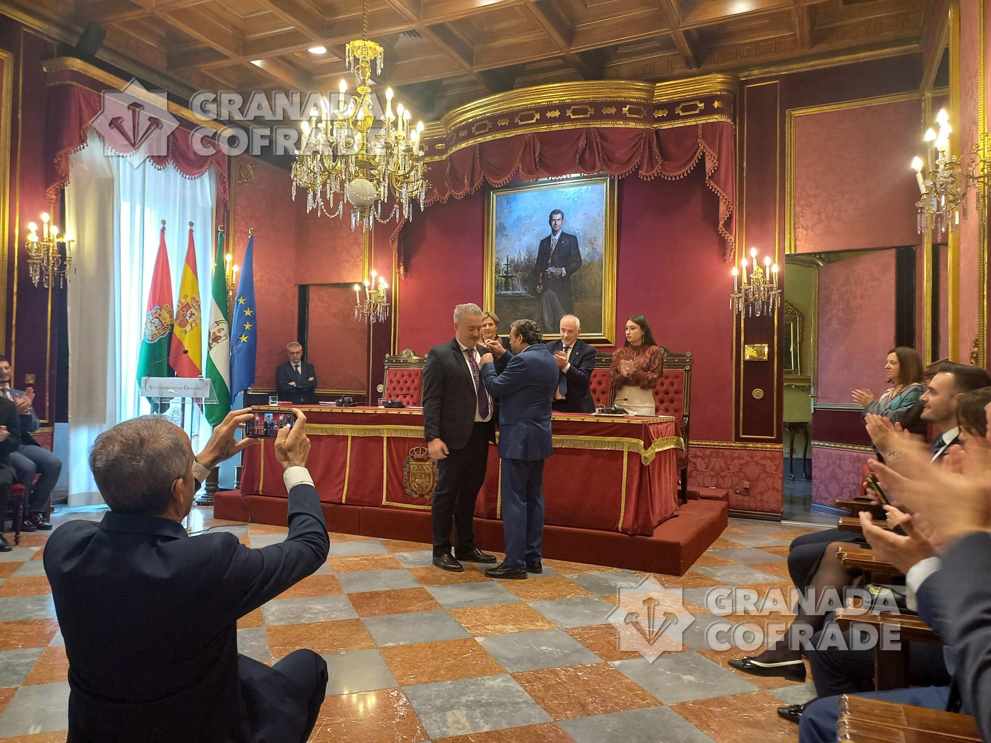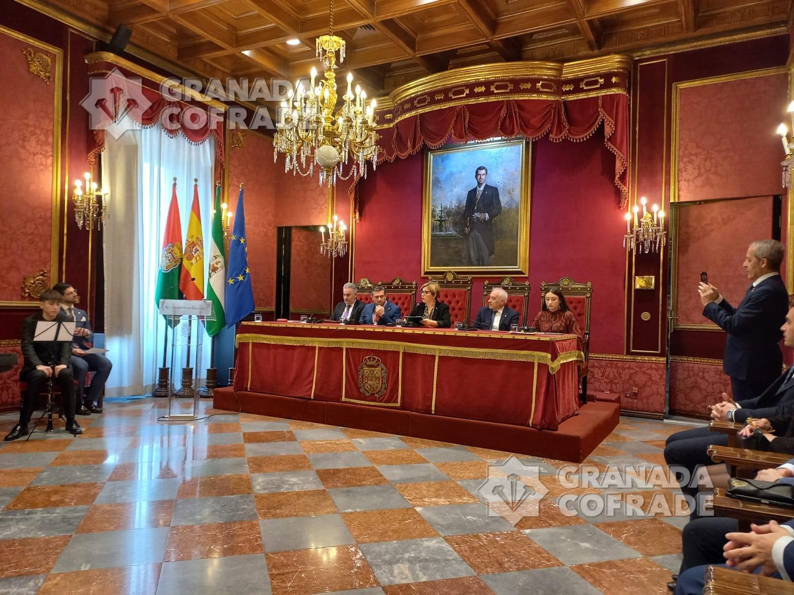 Como es habitual en Granada, Domingo de Pasión es sinónimo de Pregón del Costalero en el Salón de Plenos del Ayuntamiento de nuestra ciudad. La cita, convocada siguiendo la tradición por la cofradía de la Santa Cena, congregó a un buen número de costaleros, capataces, cofrades y hermanos de la corporación del Domingo de Ramos, llenando todo el espacio disponible, para escuchar las palabras del pregonero del presente año, David Morente Rivas.