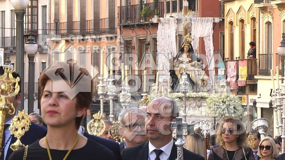 Diez ciriales anunciaban la presencia de Santa María de la Alhambra, himno nacional y la interpretación de la marcha «Virgen de la Alhambra» estrenada por la Banda de Música San Sebastián, de la localidad granadina de Padul, dirigida por Víctor Manuel Ferrer. Después, marchas de coronación dedicadas a distintas Titulares granadinas que ostentan este rango y composiciones clásicas para Santa María de la Alhambra, cuyo paso iba salió mandado por Francisco García Figueroa y Ángel Sabador, acompañados por el capataz actual José Luis Pérez Raya. En el trayecto se incorporaron al martillo costaleros veteranos de la cofradía que fueron parte de la cuadrilla de 2000, Paco Albea y Cecilio Aguilar entre ellos; capataces como Pepe Carvajal y José Carvajal Linares y hermanos vinculados a esta corporación nazarena a lo largo de su historia.