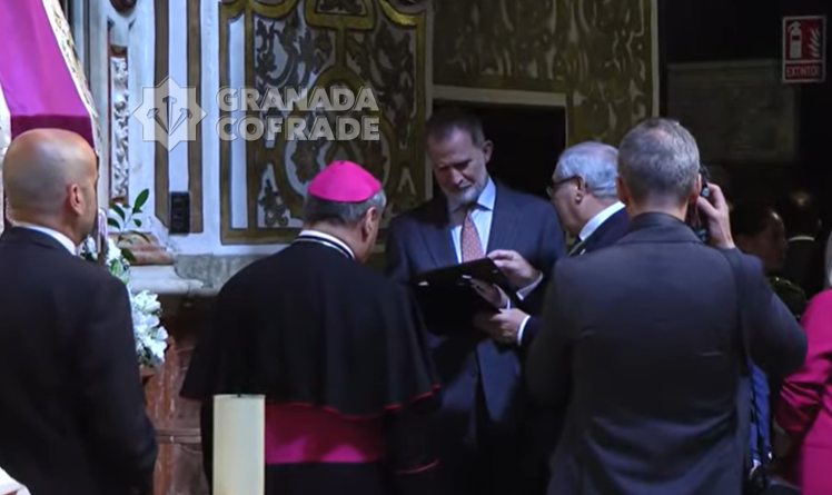 Veinticinco minutos ha permanecido S. M. El Rey de España en el interior de la basílica de Nuestra Señora de las Angustias donde ha renovado el nombramiento como Hermano Mayor Perpetuo de la Hermandad Patronal de Nuestra Señora de las Angustias, Patrona de Granada. El monarca ha sido recibido en la puerta de la basílica por arzobispo de Granada, monseñor Gil Tamayo, acompañado por el hermano mayor, Antonio González. Estaba el presidente de la Junta de Andalucía, Juanma Moreno, junto a la alcaldesa de la ciudad, Marifrán Carazo. Acompañaban a la comitiva hasta el interior de la basílica, después de saludar el Rey a numerosos vecinos de Granada que le esperaban en la puerta del templo, el delegado del Gobierno de España en Andalucía, el bastetano Pedro Fernández y el párroco de la basílica, Blas Gordo.