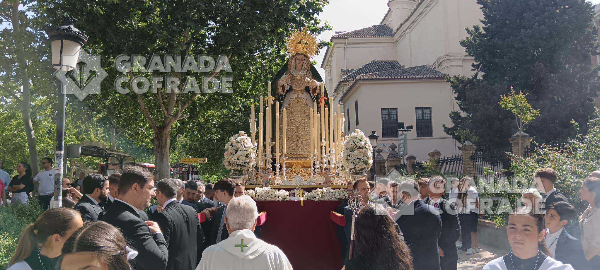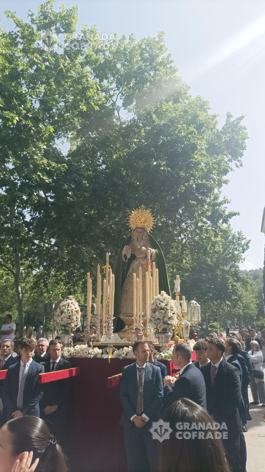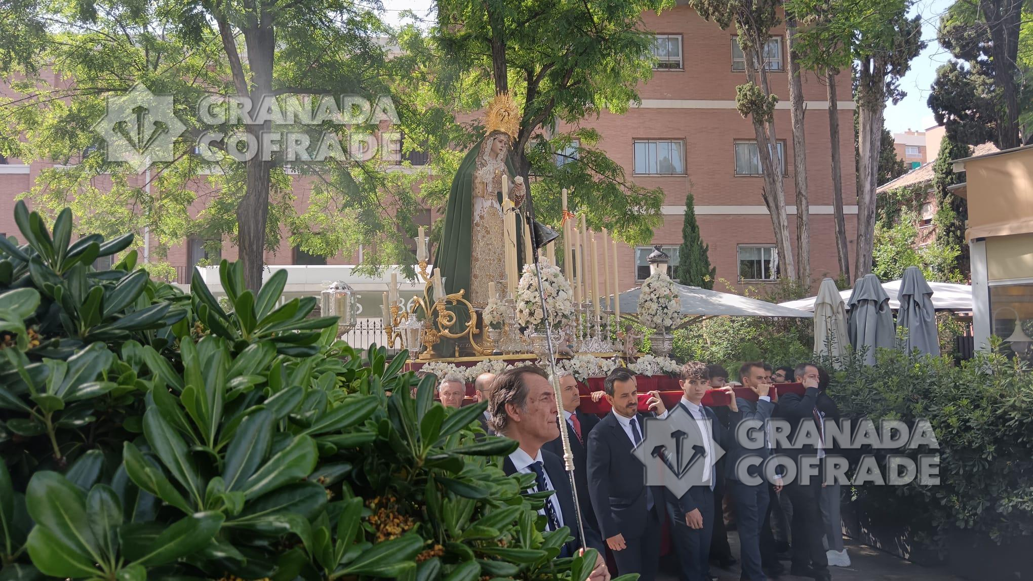 Las calles de los alrededores del Paseo de los Basilios, Paseo del Salón, Paseo de la Bomba y Puente Verde vieron pasar ayer a la Santísima Virgen del Mayor Dolor, la «Reina de Roma» que, a falta de un mes exacto para la conmemoración del XXV aniversario de la peregrinación al Vaticano de su cofradía de penitencia, presidió el Vía Lucis de la Delegación de Juventud de la Archidiócesis de Granada. Una iniciativa que se celebra por quinta vez consecutiva y que atrajo a numerosos grupos jóvenes de nuestras hermandades, entre otros, del Resucitado de Regina Mundi, Cristo del Trabajo, Resurrección y Triunfo, Jesús Nazareno, Jesús de la Paciencia, Buena Muerte, Maravillas, Meditación, Entrada en Jerusalén, Consuelo, Esperanza, Favores, Tres Caídas, Señor de la Humildad, Soledad de San Jerónimo, Vía Crucis y Adma-Alhambra.