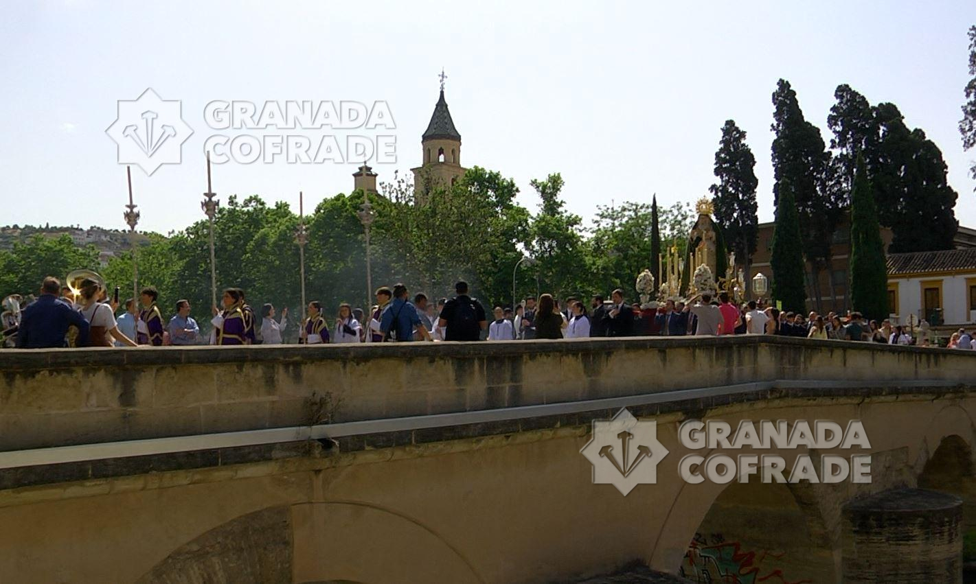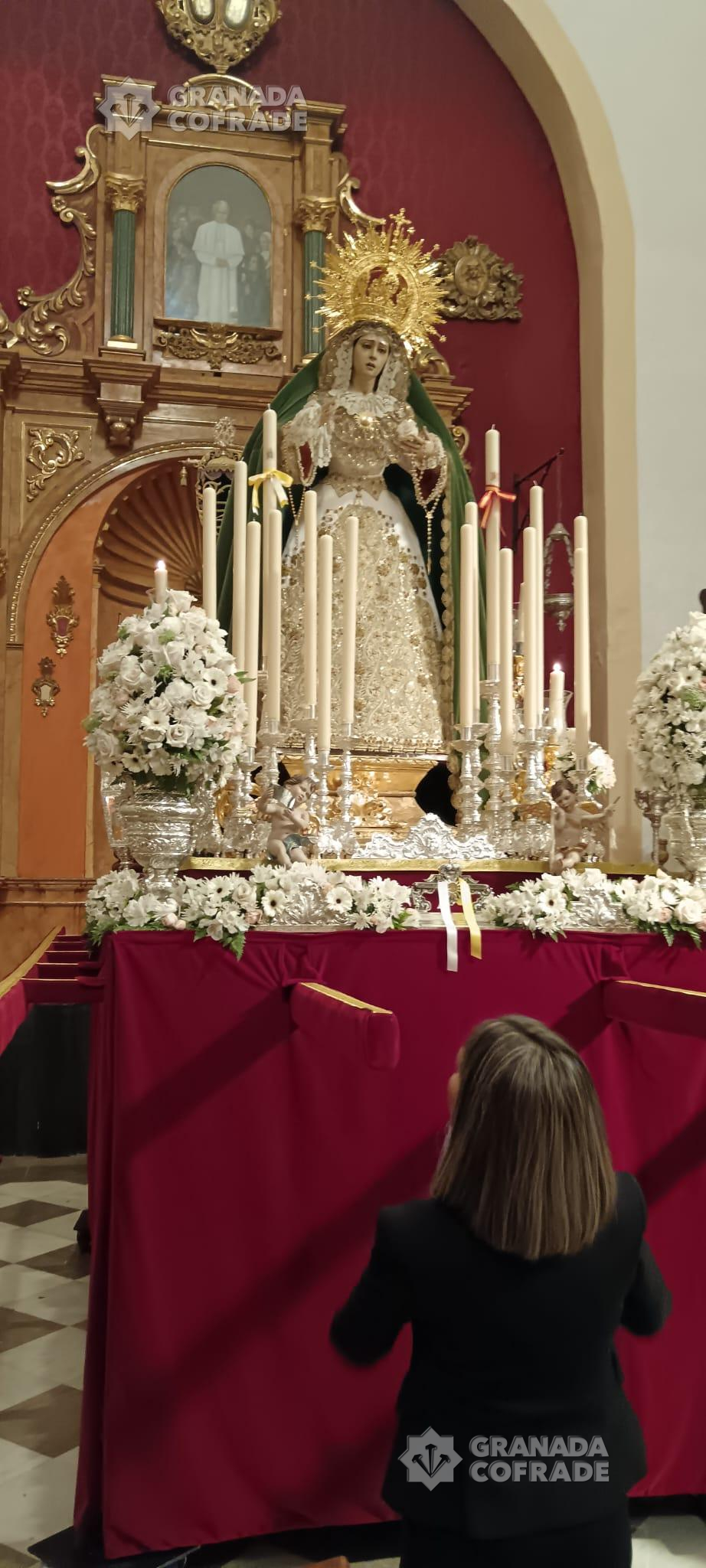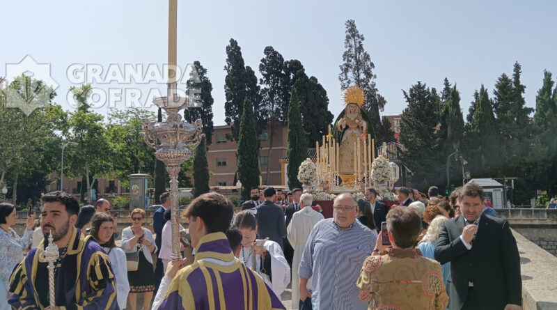Las calles de los alrededores del Paseo de los Basilios, Paseo del Salón, Paseo de la Bomba y Puente Verde vieron pasar ayer a la Santísima Virgen del Mayor Dolor, la «Reina de Roma» que, a falta de un mes exacto para la conmemoración del XXV aniversario de la peregrinación al Vaticano de su cofradía de penitencia, presidió el Vía Lucis de la Delegación de Juventud de la Archidiócesis de Granada. Una iniciativa que se celebra por quinta vez consecutiva y que atrajo a numerosos grupos jóvenes de nuestras hermandades, entre otros, del Resucitado de Regina Mundi, Cristo del Trabajo, Resurrección y Triunfo, Jesús Nazareno, Jesús de la Paciencia, Buena Muerte, Maravillas, Meditación, Entrada en Jerusalén, Consuelo, Esperanza, Favores, Tres Caídas, Señor de la Humildad, Soledad de San Jerónimo, Vía Crucis y Adma-Alhambra.