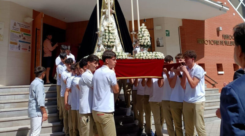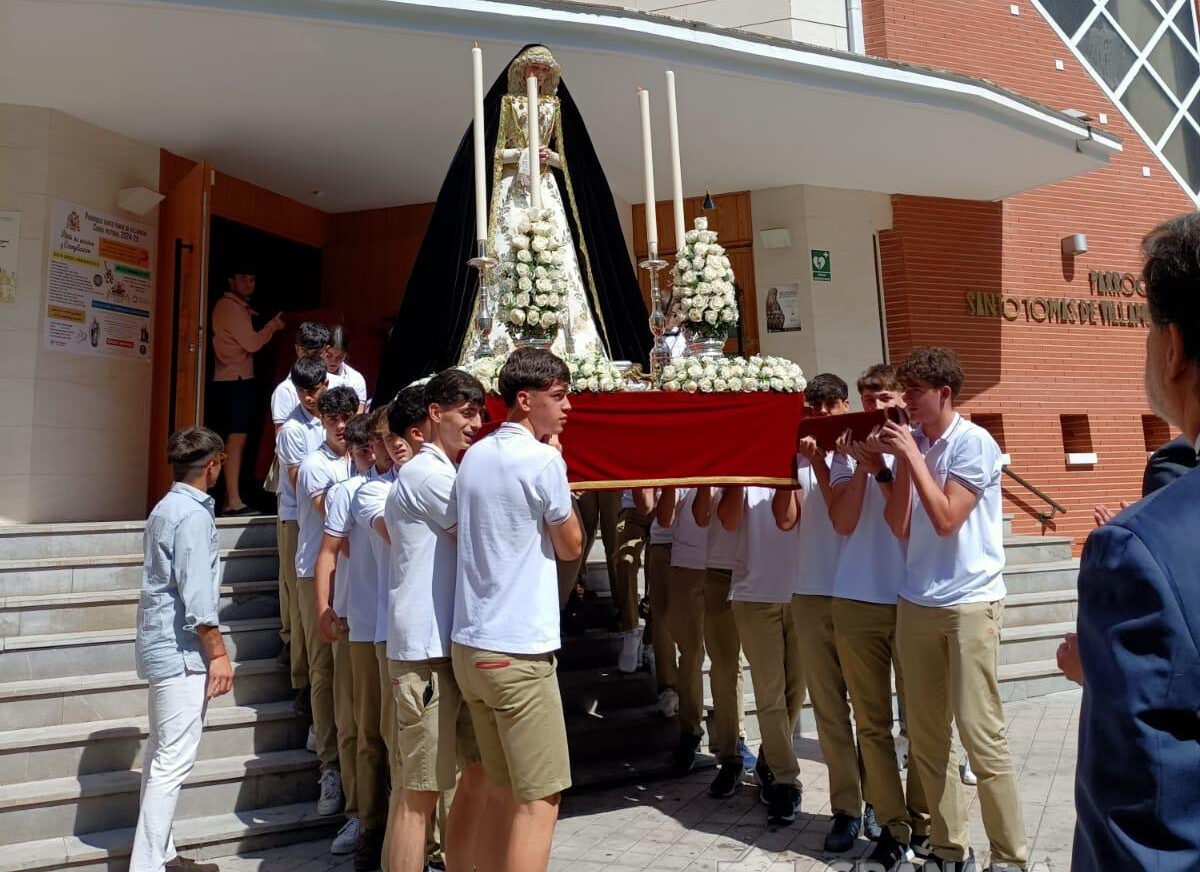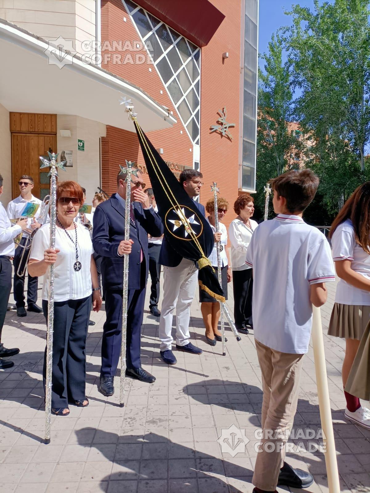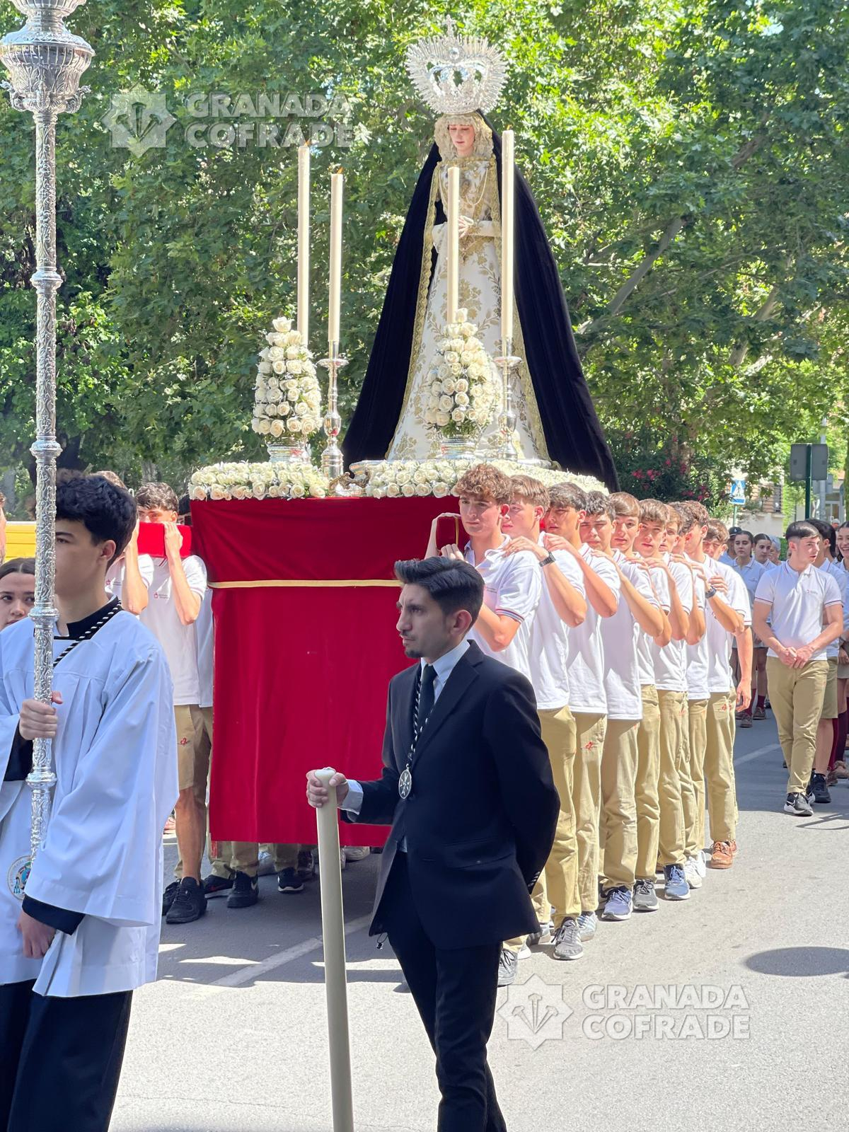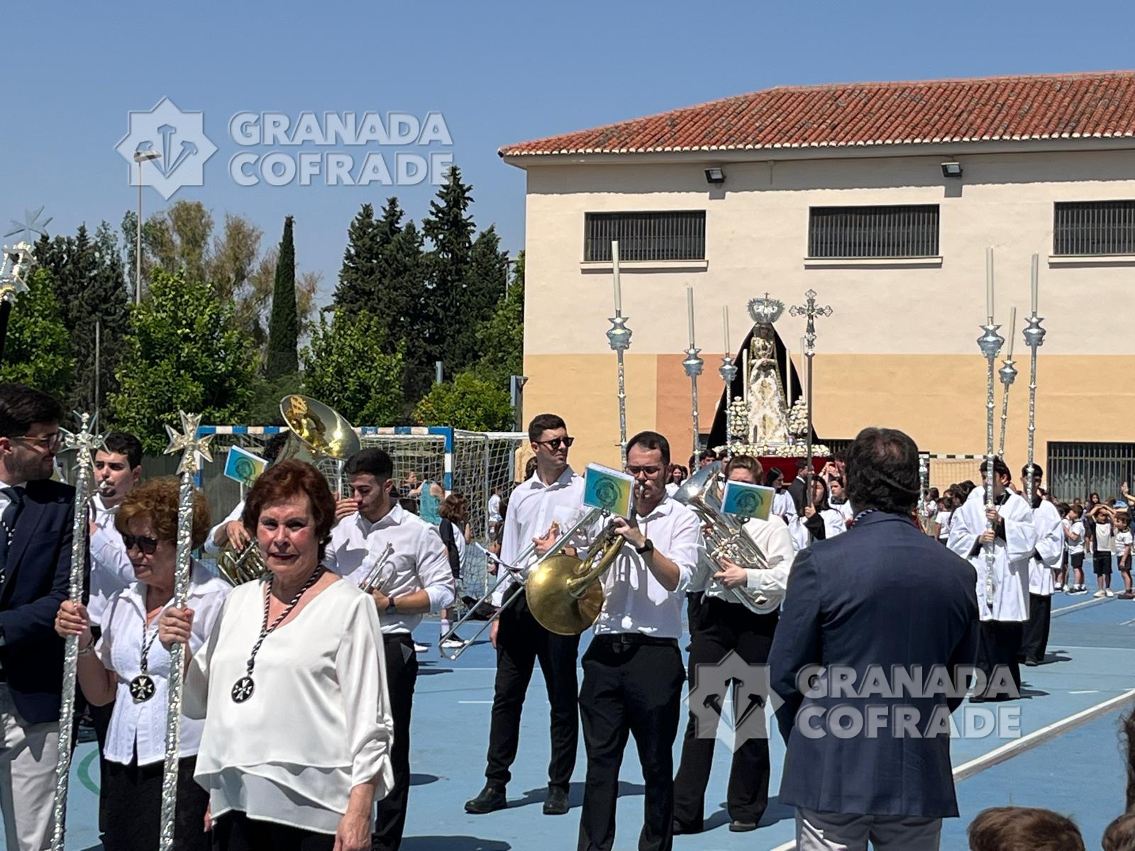 Profesores y alumnos participaron en la celebración y en el traslado de la Virgen desde la parroquia de Santo Tomás de Villanueva hasta el colegio donde en el pabellón de deportes se celebró la Eucaristía. Fue presidida por el párroco y director del colegio Angel Antonio García Cuadrado. En el traslado hasta el centro educativo acompañó a la Virgen el grupo GranaMusic al igual que en regreso que se desarrolló por un itinerario breve desde la calle Santo Tomás de Villanueva y por calle Recoletos hasta su sede parroquial.