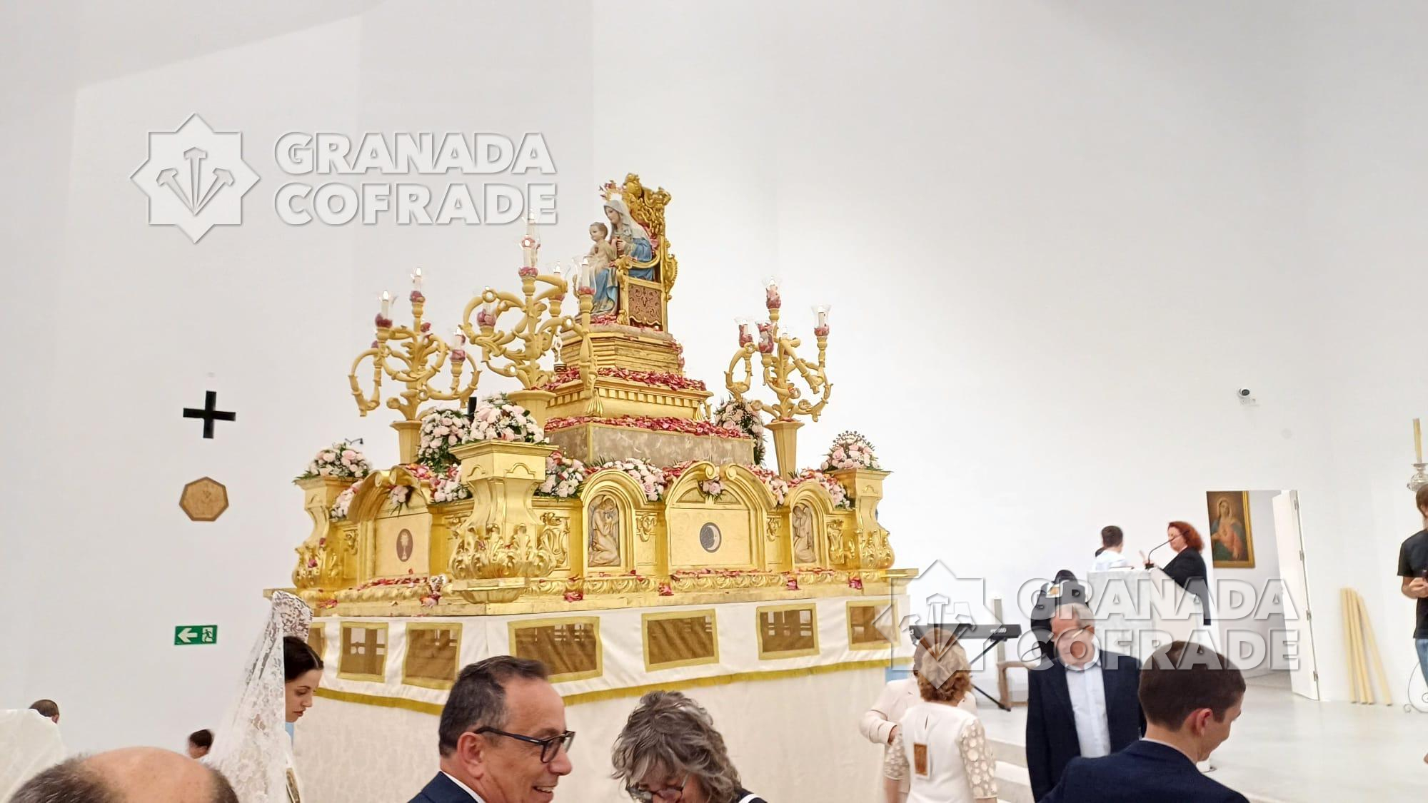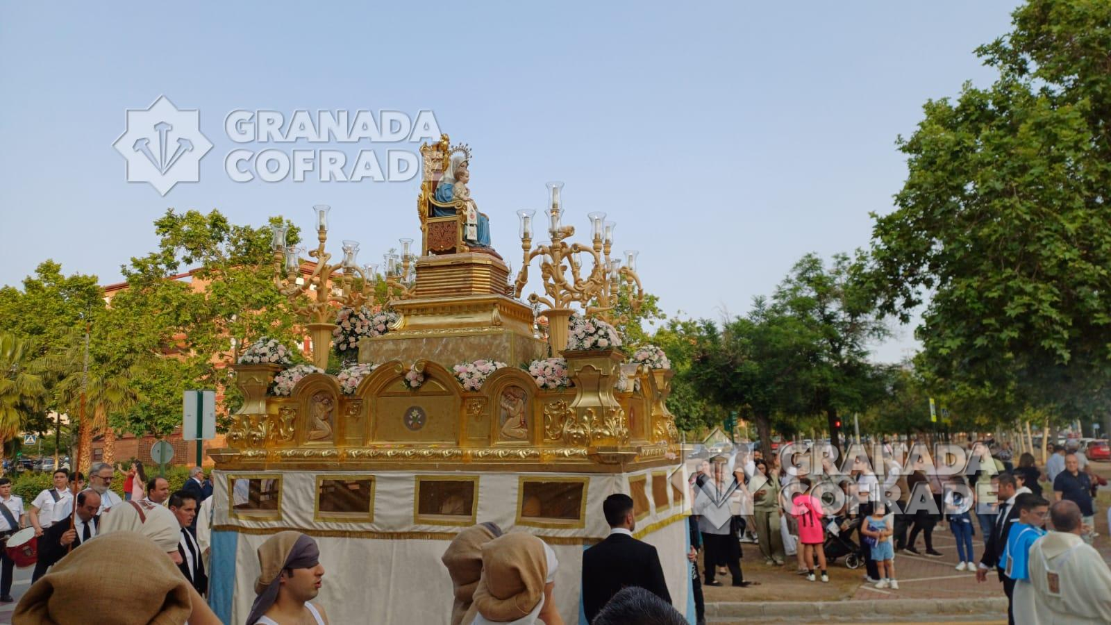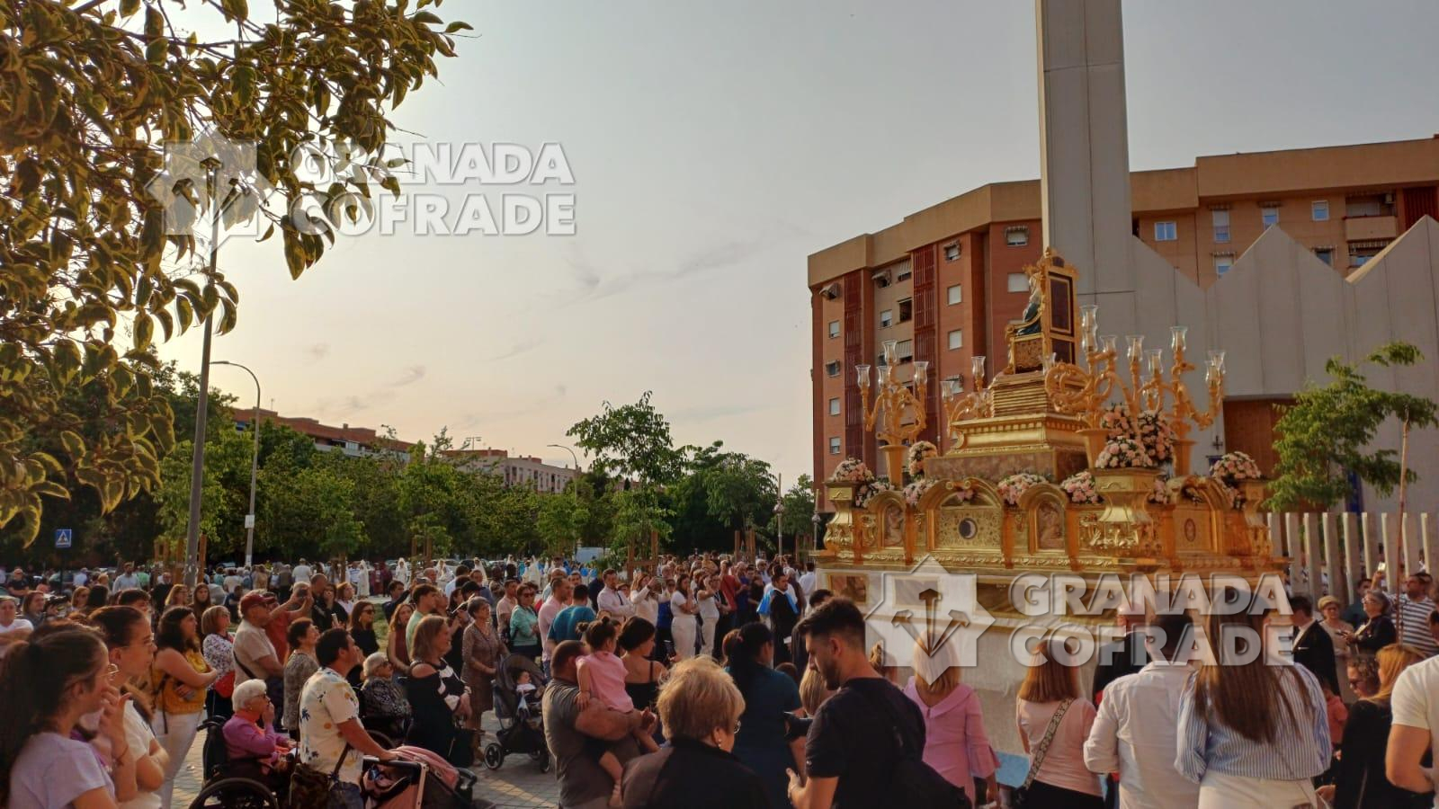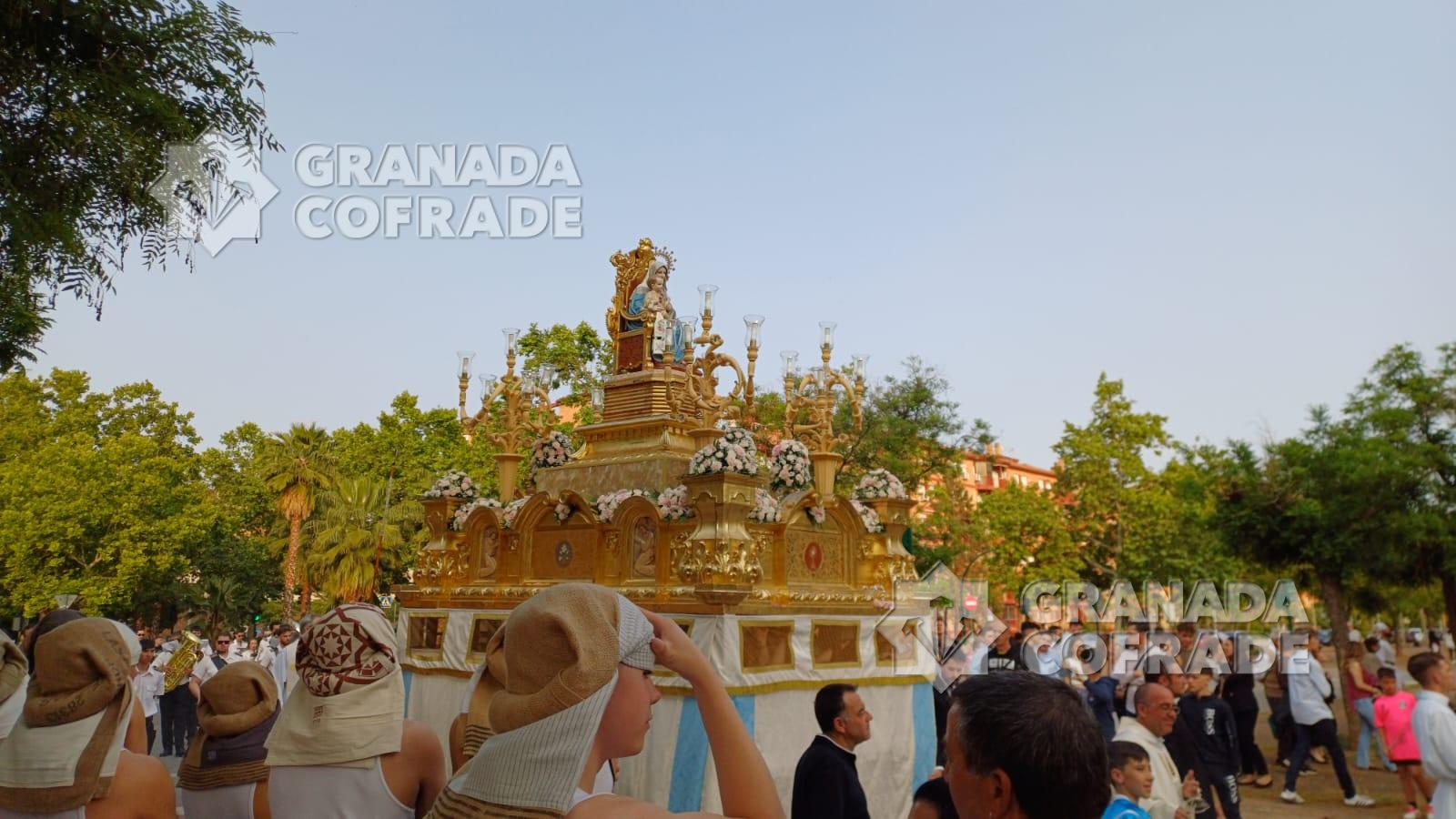 La imagen del Inmaculado Corazón de María que se venera en el Teologado Claretiano de Granada, presidió ayer tarde la procesión gloriosa que organiza su Archicofradía. En la última semana la imagen ha presidido el altar de cultos situado en el presbiterio del templo del Espíritu Santo, de la calle Joaquina Eguaras, del barrio de Almanjáyar y ayer realizó su salida procesional. Primero fue la celebración de la Eucaristía presidida por el párroco Juan Jesús Gea, quien después acompañó al cortejo que marchó por las calles Arzobispo Pedro de Castro para continuar en dirección a Iznájar y calle Izmail. El cortejo estuvo formado por varias filas de hermanos y feligreses y la participación de la banda de música Los Ángeles, de nuestra capital, dirigida por Manuel Elvira.