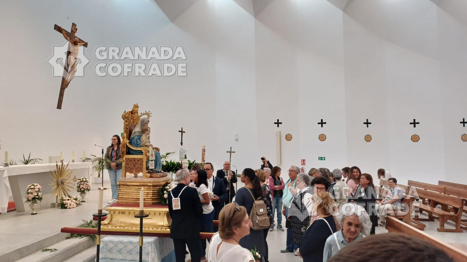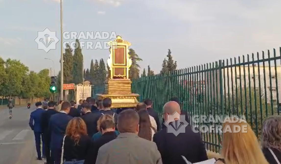 La imagen del Inmaculado Corazón de María ya se encuentra en la capilla del Teologado Claretiano, de la calle Pedro Machuca, 21. En la tarde de ayer, y después de cumplidos los cultos y salida procesional del pasado sábado, se dispuso el traslado de manera sencilla y discreta por las calles próximas a la parroquia del Espíritu Santo donde ha recibido culto durante la última semana. Con la cruz parroquial, el estandarte de la hermandad y el acompañamiento de los miembros de la Archicofradía se procedió al cortejo que discurrió sin molestar al tráfico rodado y por la acera de las calles y avenidas del recorrido. Previamente y en la parroquia los feligreses improvisaron una pequeña ofrenda floral a la Santísima Virgen.