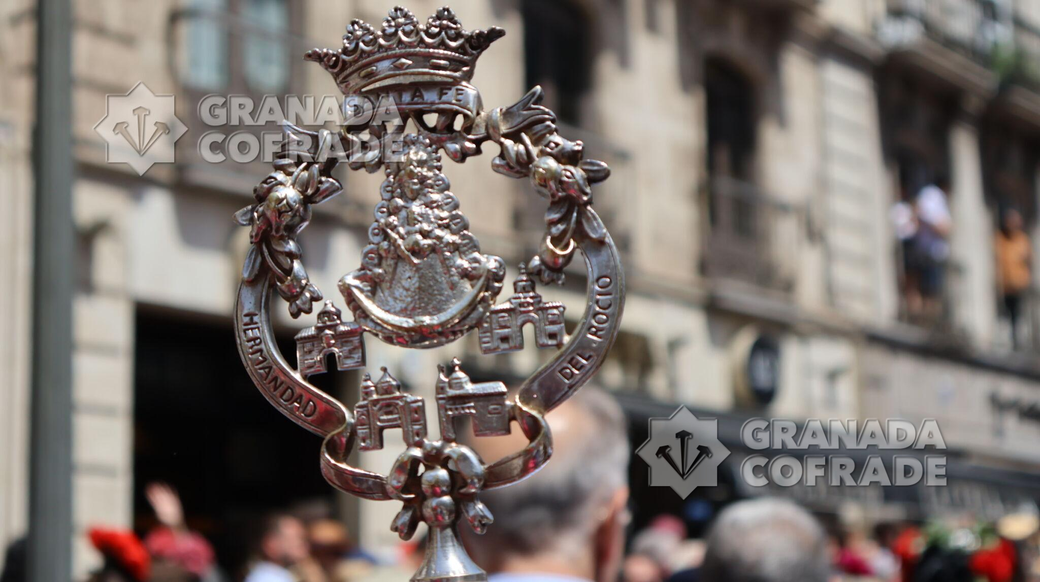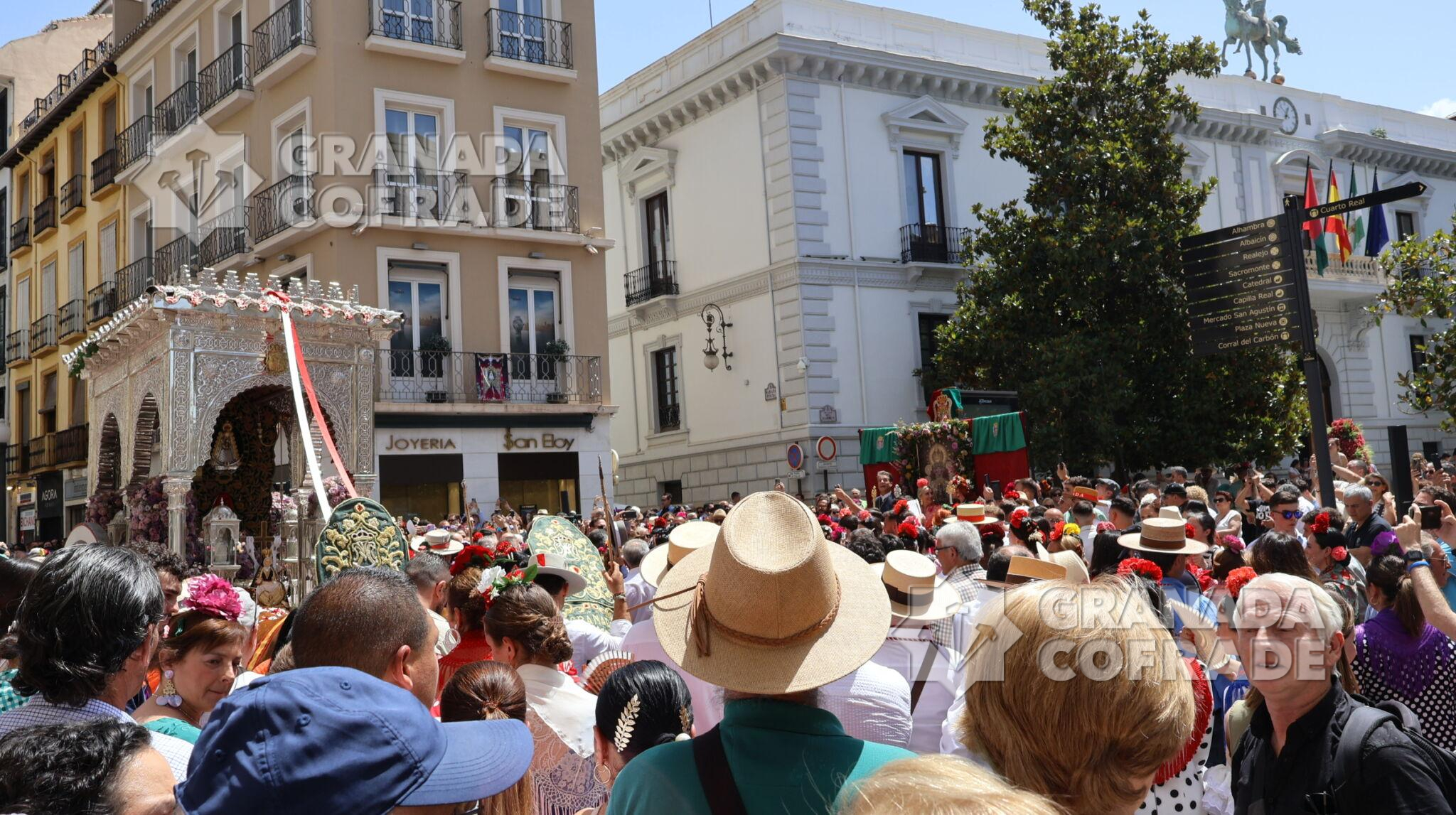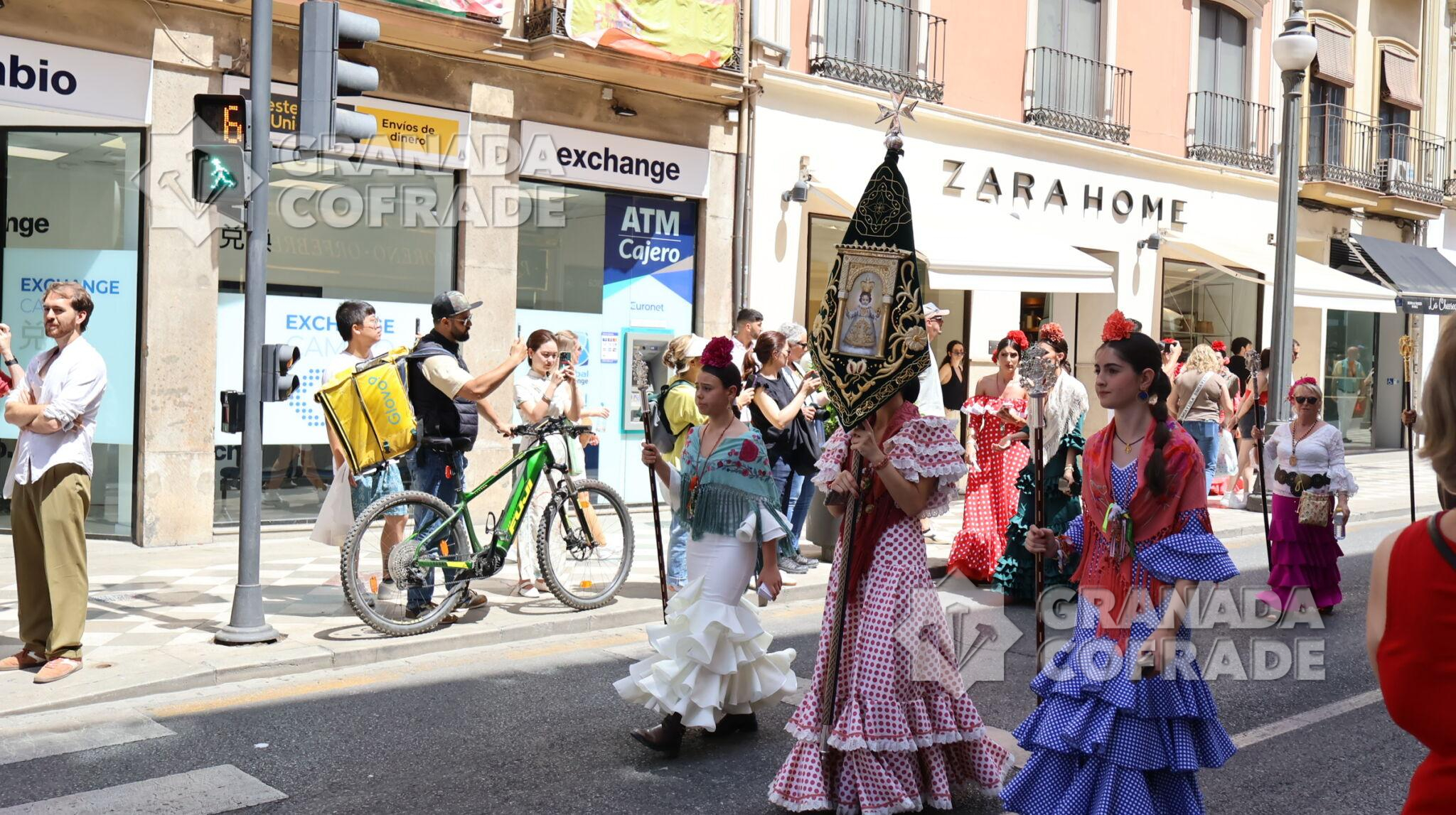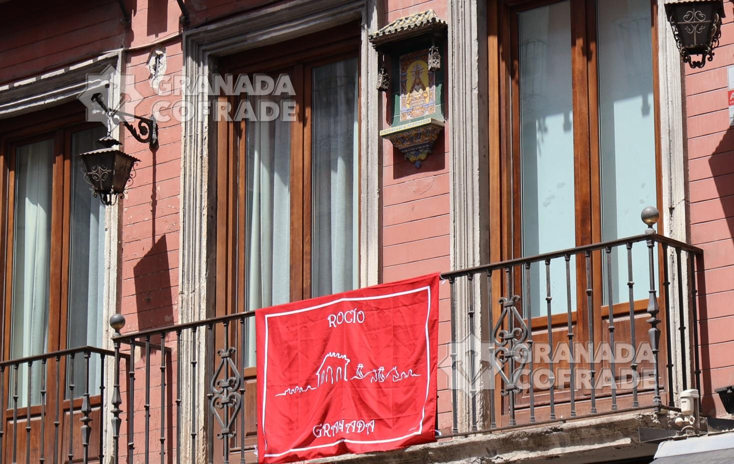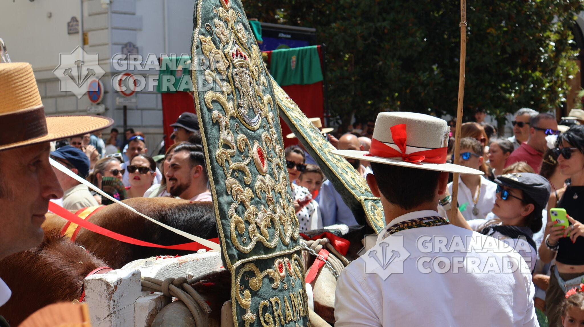 Mañana de vistosidad y colorido acompañando al Simpecado granadino que bordaron las Monjas de la Piedad, con sus veinticinco granadas y que fue acompañado por las principales autoridades granadinas. Estaba la Consejera de Fomento de la Junta de Andalucía, Rocío Díaz, y la alcaldesa de Granada, Marifrán Carazo. Estaban delegados de distintas áreas de Consejerías andaluzas y el Delegado de la Junta de Andalucía en Granada, Antonio Granados, junto al hermano mayor, Alfredo Alcalde.