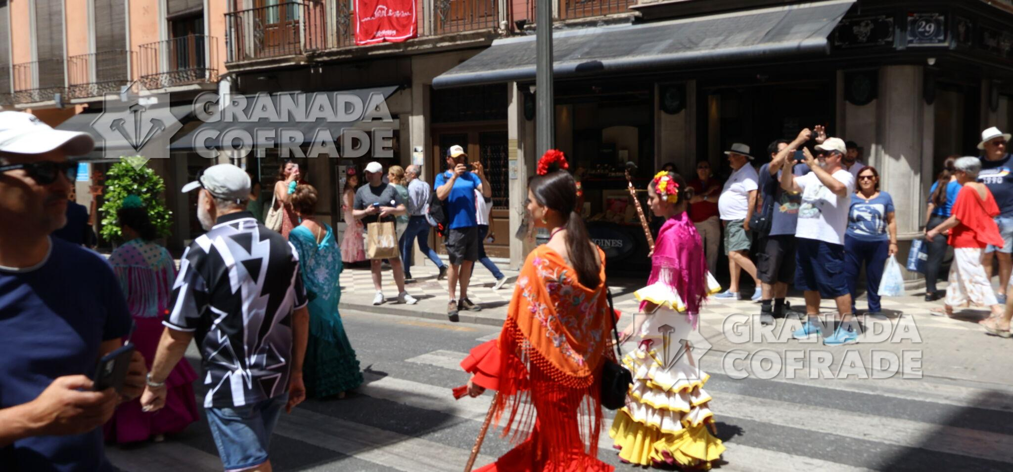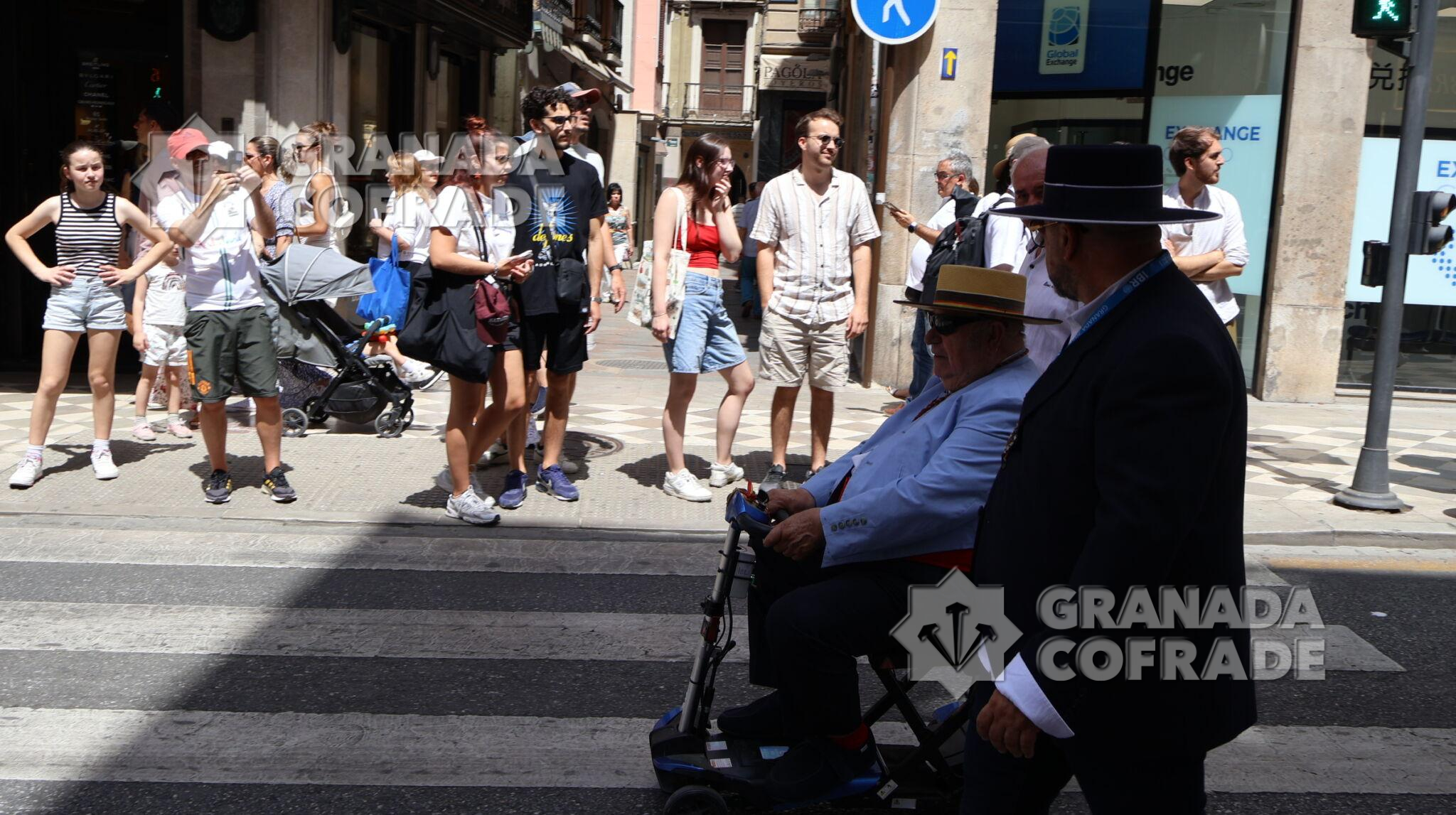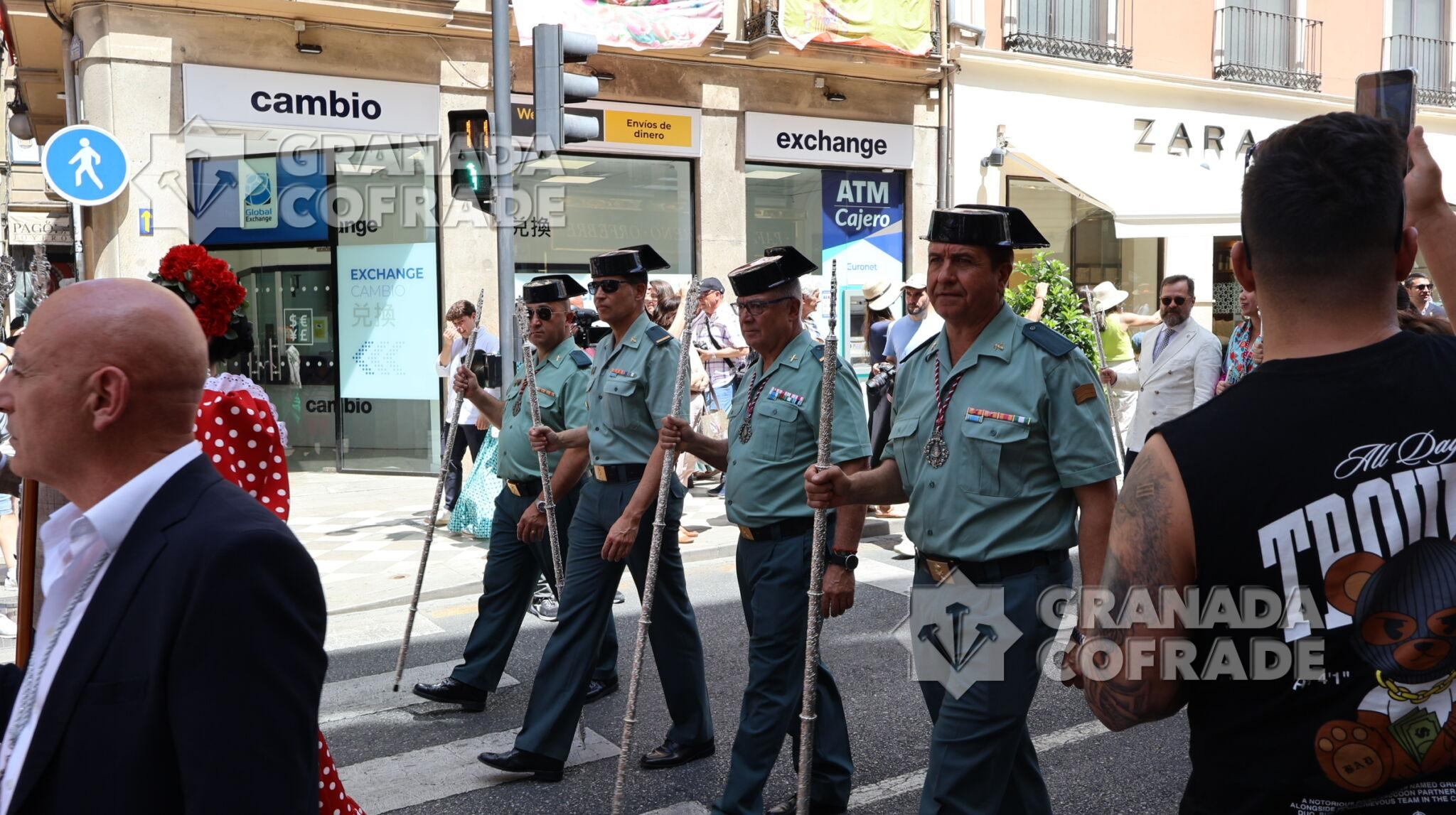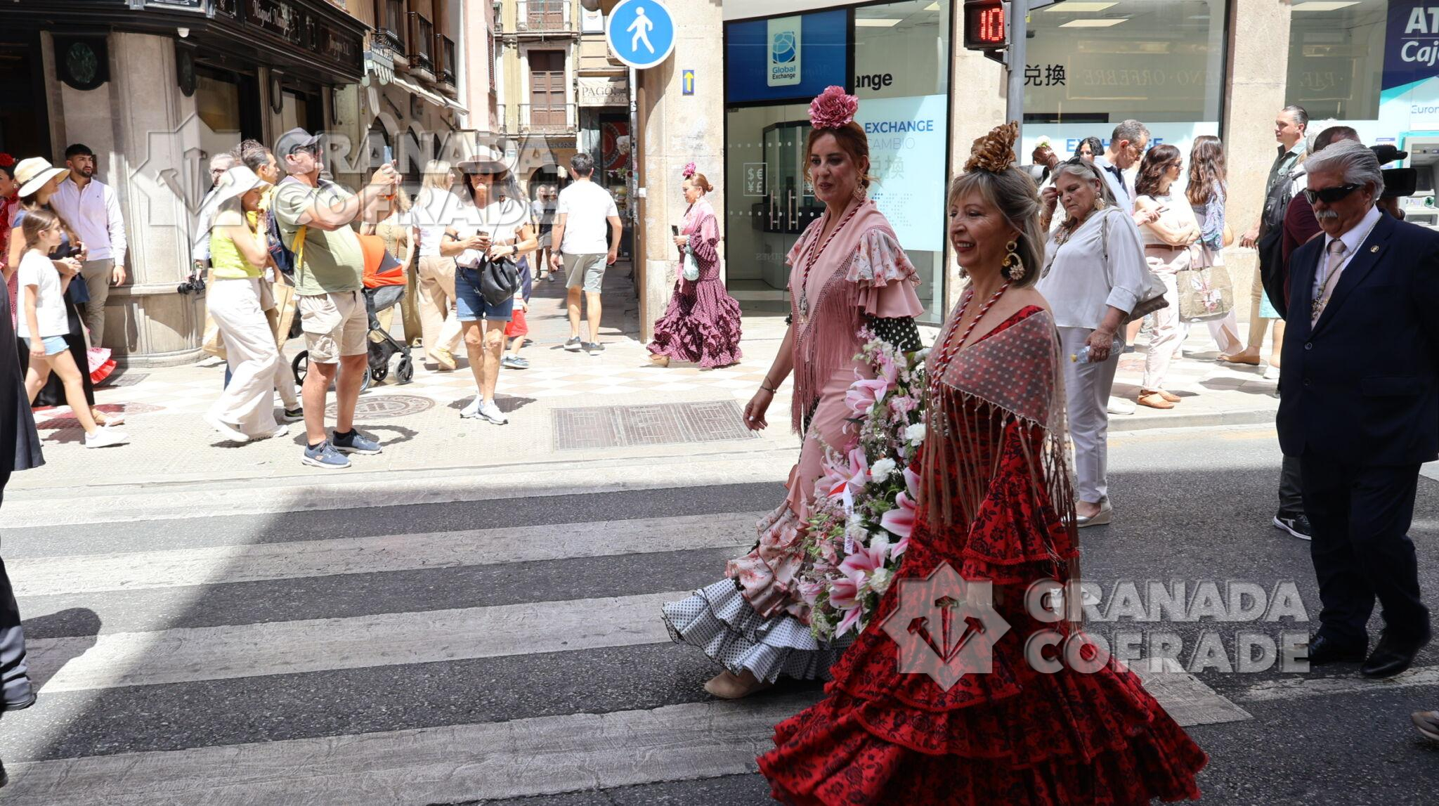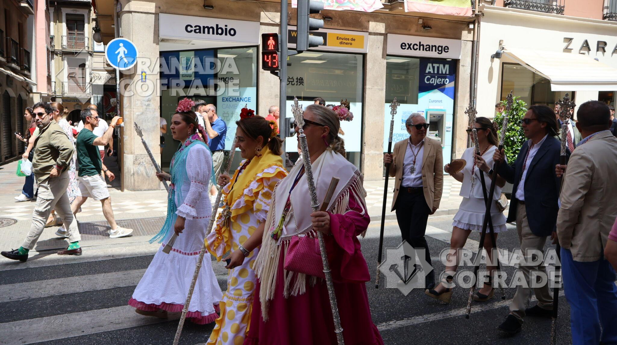 Mañana de vistosidad y colorido acompañando al Simpecado granadino que bordaron las Monjas de la Piedad, con sus veinticinco granadas y que fue acompañado por las principales autoridades granadinas. Estaba la Consejera de Fomento de la Junta de Andalucía, Rocío Díaz, y la alcaldesa de Granada, Marifrán Carazo. Estaban delegados de distintas áreas de Consejerías andaluzas y el Delegado de la Junta de Andalucía en Granada, Antonio Granados, junto al hermano mayor, Alfredo Alcalde.