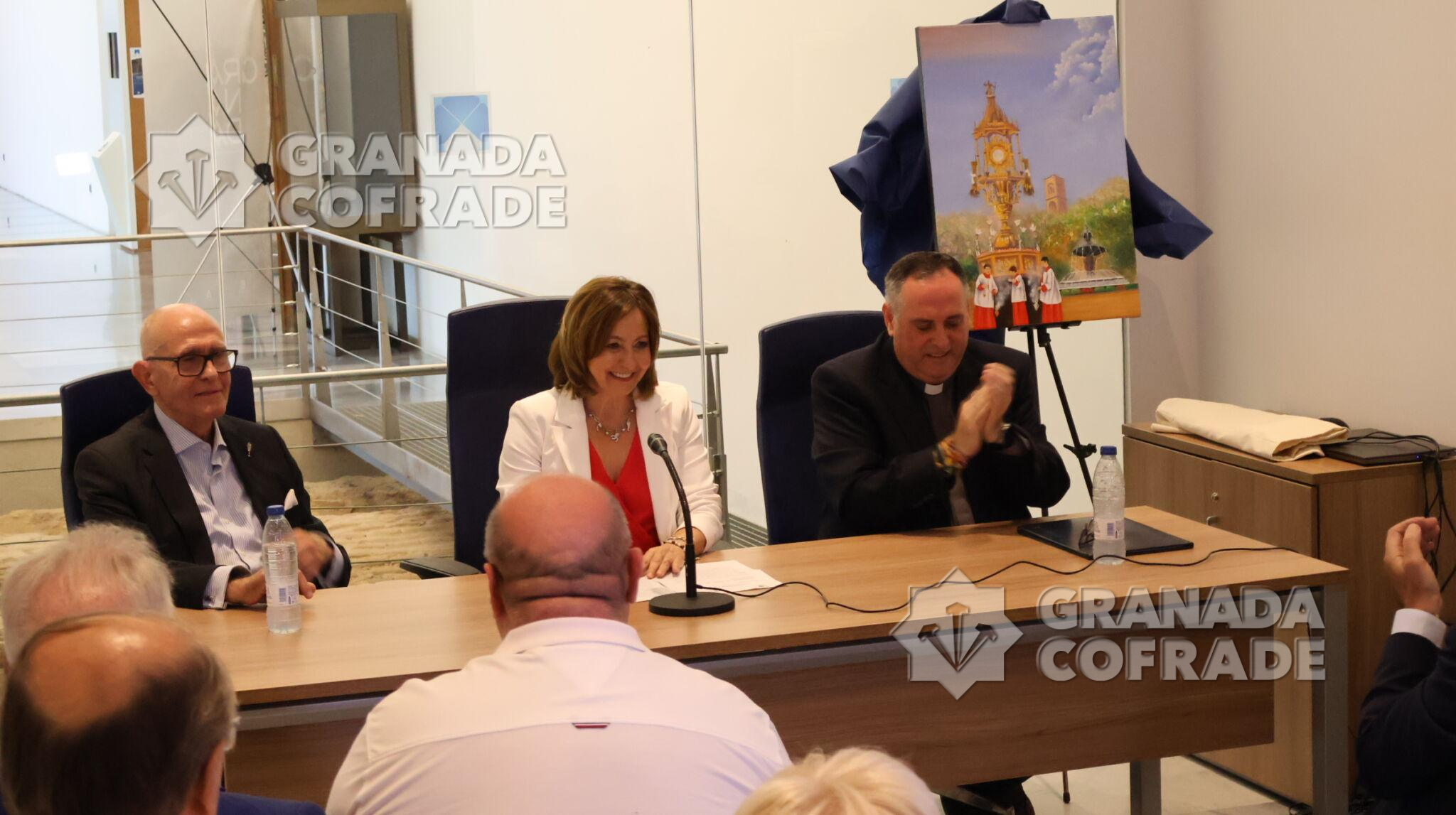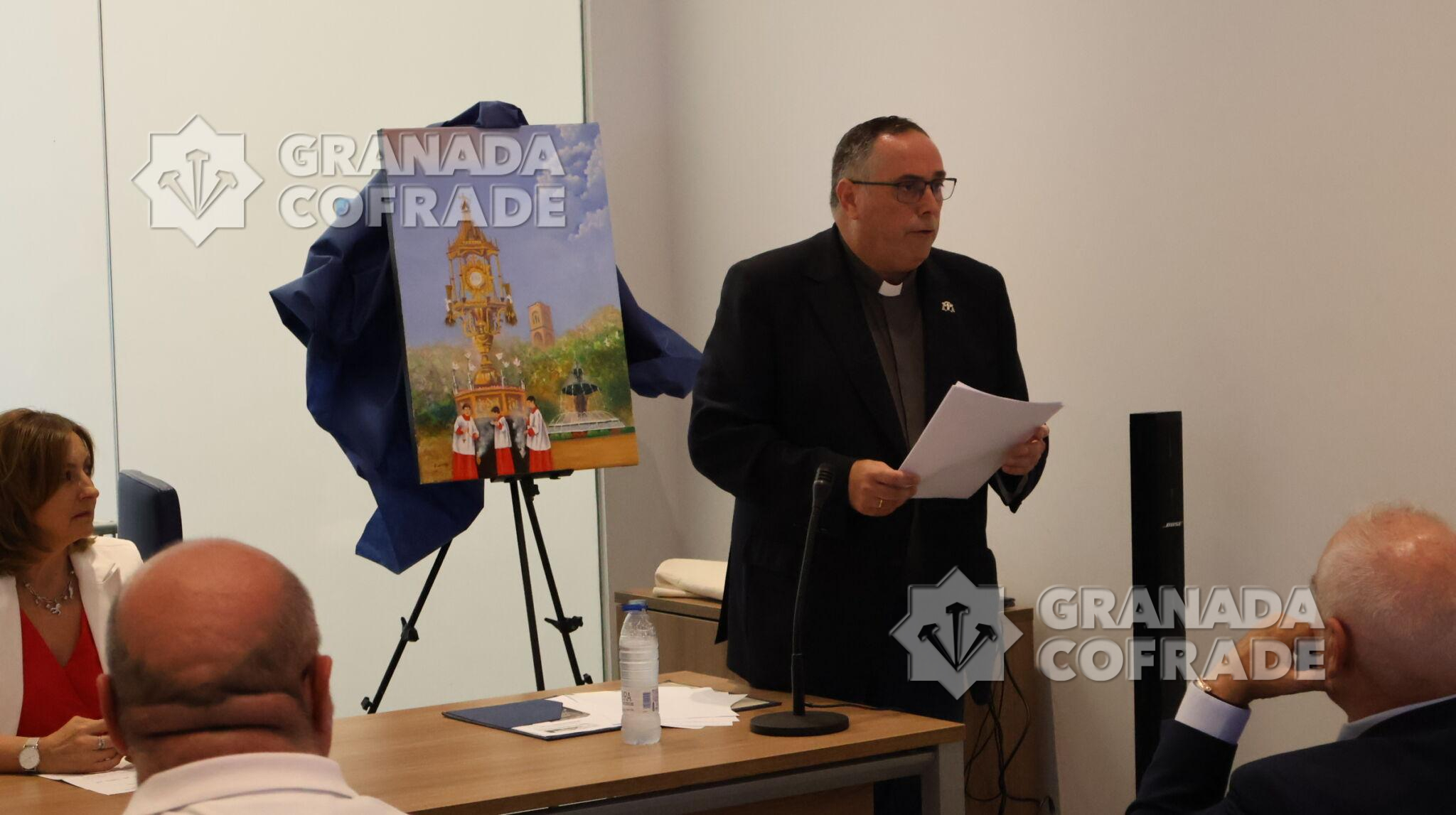 El acto fue presentado por el miembro de la Asociación, José Luis Ramírez, buceando en la vida del presentador y destacando su participación en las hermandades de Granada desde hace años cuando se hizo cargo de las parroquias de San Pedro y San Pablo y San Gil y Santa Ana, junto con Manuel García. El acto contó también con la presencia de la edil de Asuntos Sociales, Amparo Arrabal, quien agradeció la publicación del cartel y señaló que «recoge la ternura infantil junto a la Custodia»  resaltando que evoca «la esencia de nuestra fiesta, reflejando la vida misma, la inocencia y la devoción donde los niños, que son el futuro, caminan junto a lo sagrado». También el presidente  de la Asociación, Enrique González Gamero destacó la edición del cartel y la presentación del mismo.