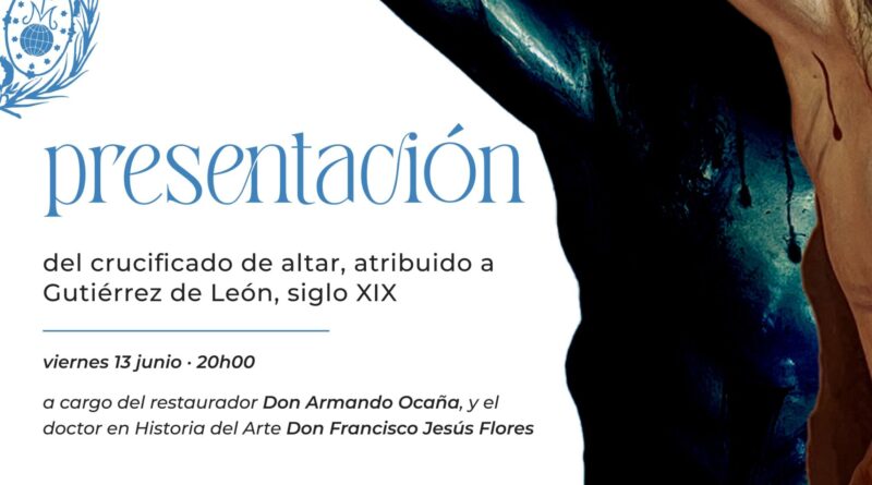 La hermandad del Santísimo Cristo Resucitado presenta el próximo viernes, día 13 de junio, a las ocho de la noche y en los salones parroquiales de Regina Mundi, la restauración de la imagen del Crucificado de altar, donada a la cofradía, y restaurado por Armando Ocaña, restaurador encargado de la conservación de la talla. En la presentación de la imagen estará acompañado el restaurador por Francisco Jesús Flores, historiador del arte y especialista en la obra de los Gutiérrez León. La imagen está atribuida a la saga escultórica de los Gutiérrez León procedente de Málaga y que dejó sus obras entre los siglos XVIII y XIX y que se distribuyó por buena parte de la geografía andaluza y que centró su tipo iconográfico principalmente en la imagen de María Dolorosa.