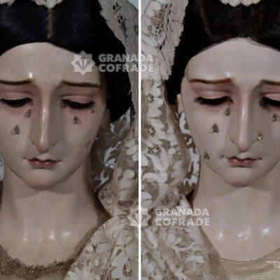 Durante este proceso, los restauradores descubrieron las marcas de dos lágrimas que estaban ausentes: una que había desaparecido y otra que se había desplazado. En este sentido, cabe destacar que localizaron tanto la ubicación original de la lágrima como el reguero que dejaba a lo largo de la mejilla. Tras este hallazgo, y previa consulta de imágenes antiguas y del parecer de la Junta de Gobierno, se acordó restituir ambas lágrimas en su posición original, en un proceso completamente reversible, tal y como marcan los protocolos en estos casos.