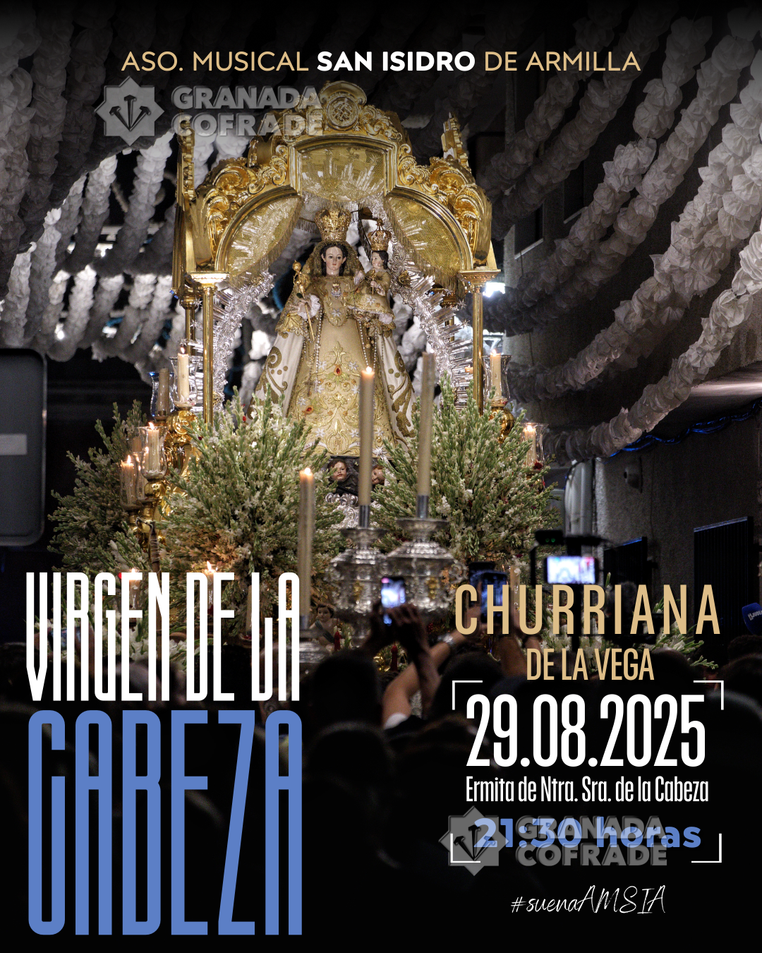 El próximo viernes, 29 de agosto, la Asociación Musical San Isidro, de Armilla sonará, como viene siendo habitual, tras Ntra. Sra. de la Cabeza de Churriana de la Vega.