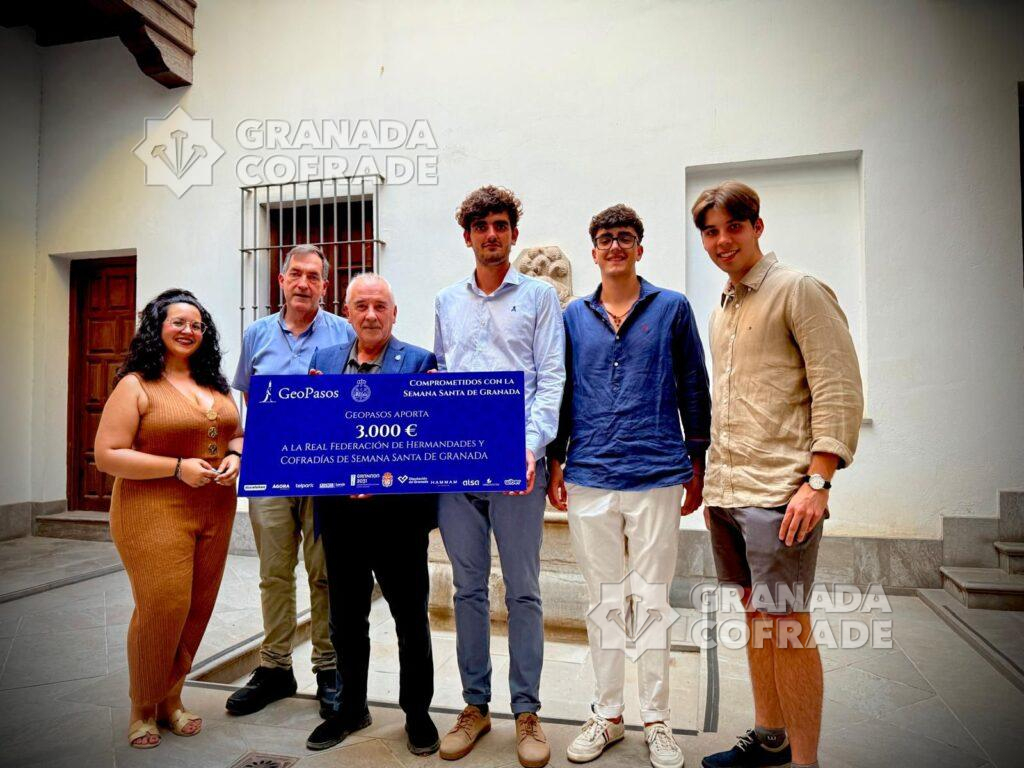 Asimismo, como resultado del acuerdo de colaboración firmado, se ha hecho entrega a la Real Federación de Hermandades y Cofradías de un cheque por parte de Geopasos en su apuesta decidida por la Semana Santa de Granada con un valor de 3000 euros.