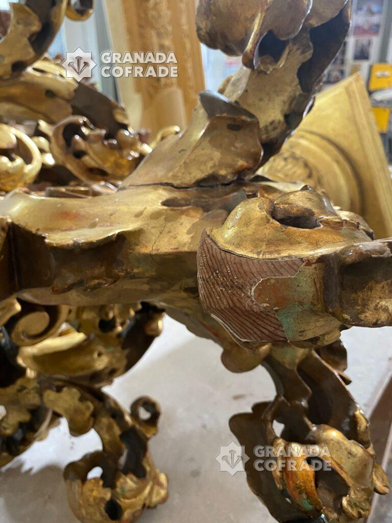 Tal y como se ha hecho con el resto previamente, se van a llevar tareas de saneamiento, conservación y dorado. Será el Martes Santo de 2026 cuando el paso luzca ya los seis guardabrisas restaurados, que son obra de Nicolás Prados López, fechados en 1947.