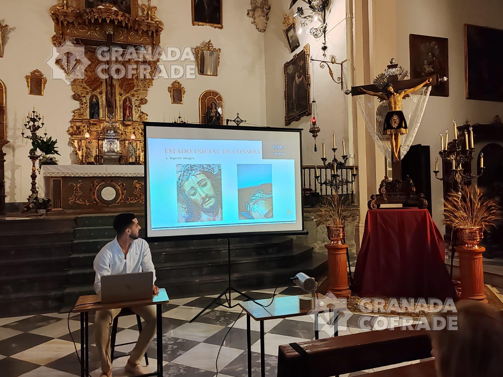 Durante el acto, al que asistió buen número de fieles y hermanos de la Hermandad de la Luz, se explicó el estado inicial de la imagen, los trabajos realizados tanto en la talla como en la cruz y en sus elementos y atributos metálicos, y se ofrecieron recomendaciones de conservación preventiva.