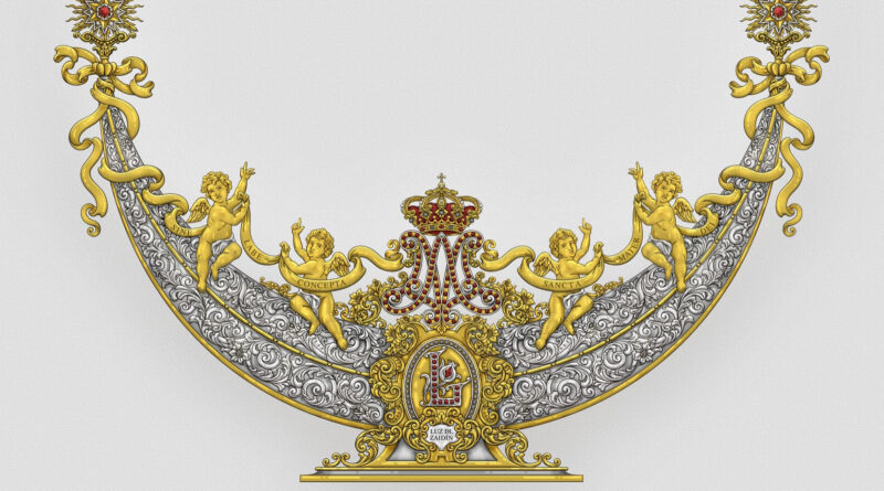 El diseño final es una presea de gran personalidad y fuerza visual gracias a la combinación cromática del oro y la plata, los diamantes y los rubíes con el movimiento alegre de los ángeles y el diseño barroco de todo su conjunto. La misma será realizada por Alberto Quirós.