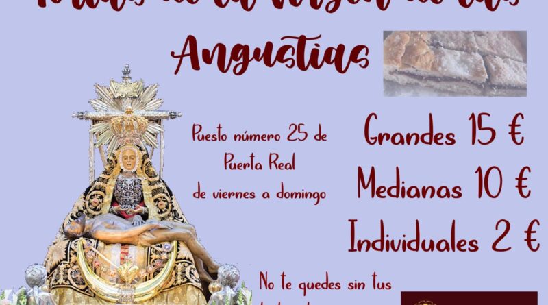 Llega el último fin de semana de septiembre y la hermandad de Jesús del Trabajo y Nuestra Señora de la Luz estará junto a la Fuente de las Batallas en el tradicional mercadillo de puestos de otoño y tortas de la Virgen. Serán los próximos días 26, 27 y 28 de septiembre, y estará en el puesto número 25 para la venta de las tortas en honor a la Virgen de las Angustias. Los precios disponibles son de 10 euros las medianas; las grandes al precio de 15 euros y las individuales a dos euros cada una.