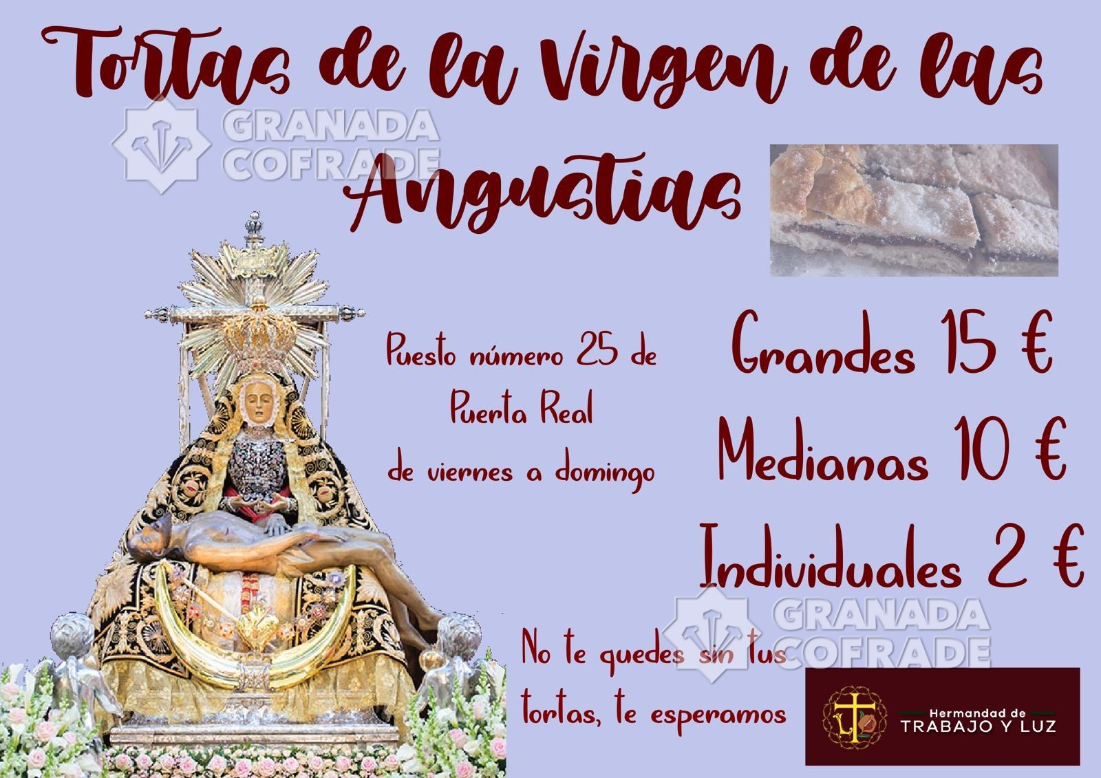 Llega el último fin de semana de septiembre y la hermandad de Jesús del Trabajo y Nuestra Señora de la Luz estará junto a la Fuente de las Batallas en el tradicional mercadillo de puestos de otoño y tortas de la Virgen. Serán los próximos días 26, 27 y 28 de septiembre, y estará en el puesto número 25 para la venta de las tortas en honor a la Virgen de las Angustias. Los precios disponibles son de 10 euros las medianas; las grandes al precio de 15 euros y las individuales a dos euros cada una.