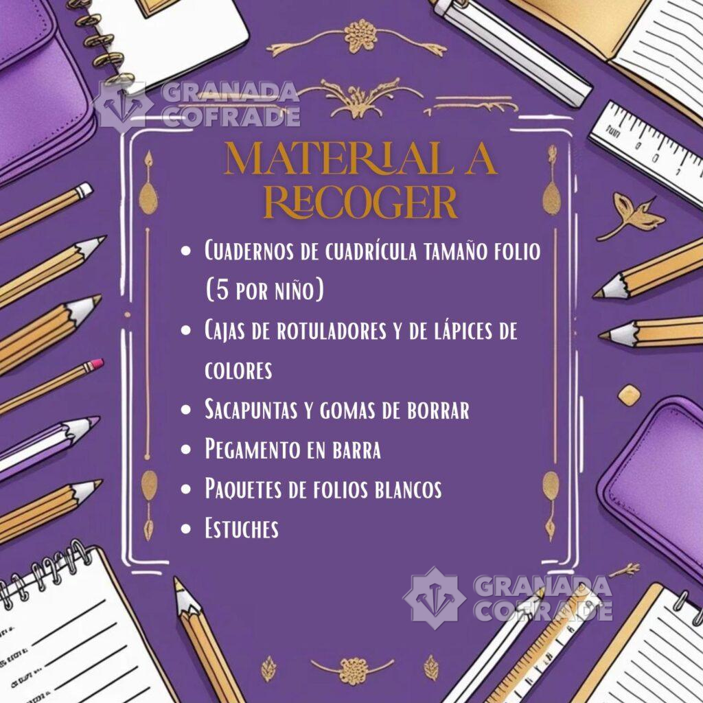 Recogida solidaria de material escolar, de la cofradía de Jesús Nazareno, para los colegios más necesitados de Granada