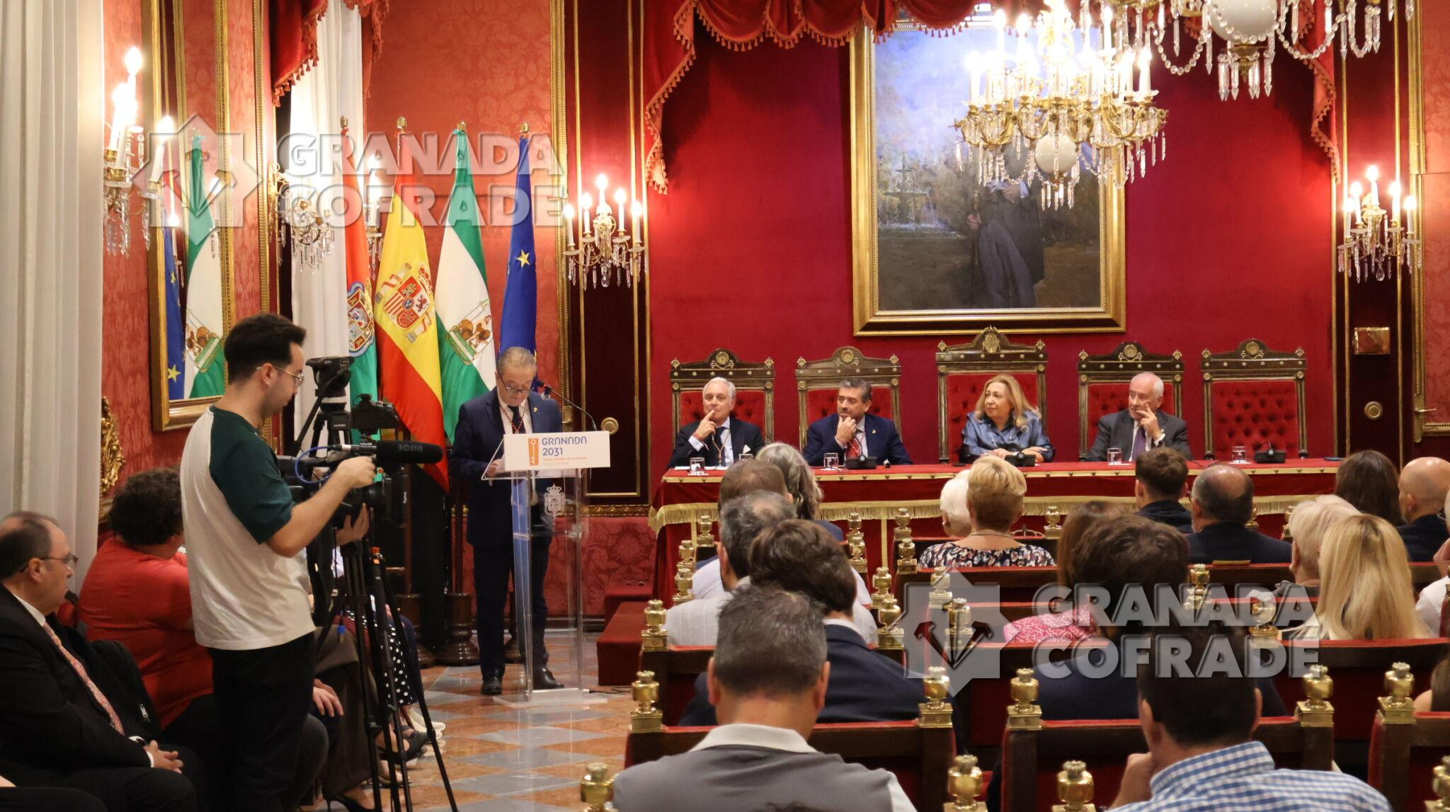 Una presentación en la que Francisco Barroso habló de la espiritualidad «que sale del himno Eucarístico de Santo Tomás de Aquino, de la obra sacramental de Federico, en los Autos Sacramentales de Lope de Vega o de Calderón, está en las palabras de Conchita Barrecheguren en su carmen de la Antequeruela, de fray Leopoldo que supo llevar junto al pan material el pan Eucarístico». Palabras de ánimo para continuar «adelante que al recibirte a Ti vivo te vemos en cada cosa aunque parezcas dormido» y recordó tantas necesidades y miserias que invaden a muchos ciudadanos, hombres y mujeres, en estos años duros para muchos. Sobre el texto puso nombres propios de cofrades que lo dieron todo por la hermandad, escultor de las imágenes, Espinosa Cuadros, hermanos mayores, capataces, donantes y personas que han «escrito las páginas de la historia de esta cofradía».
