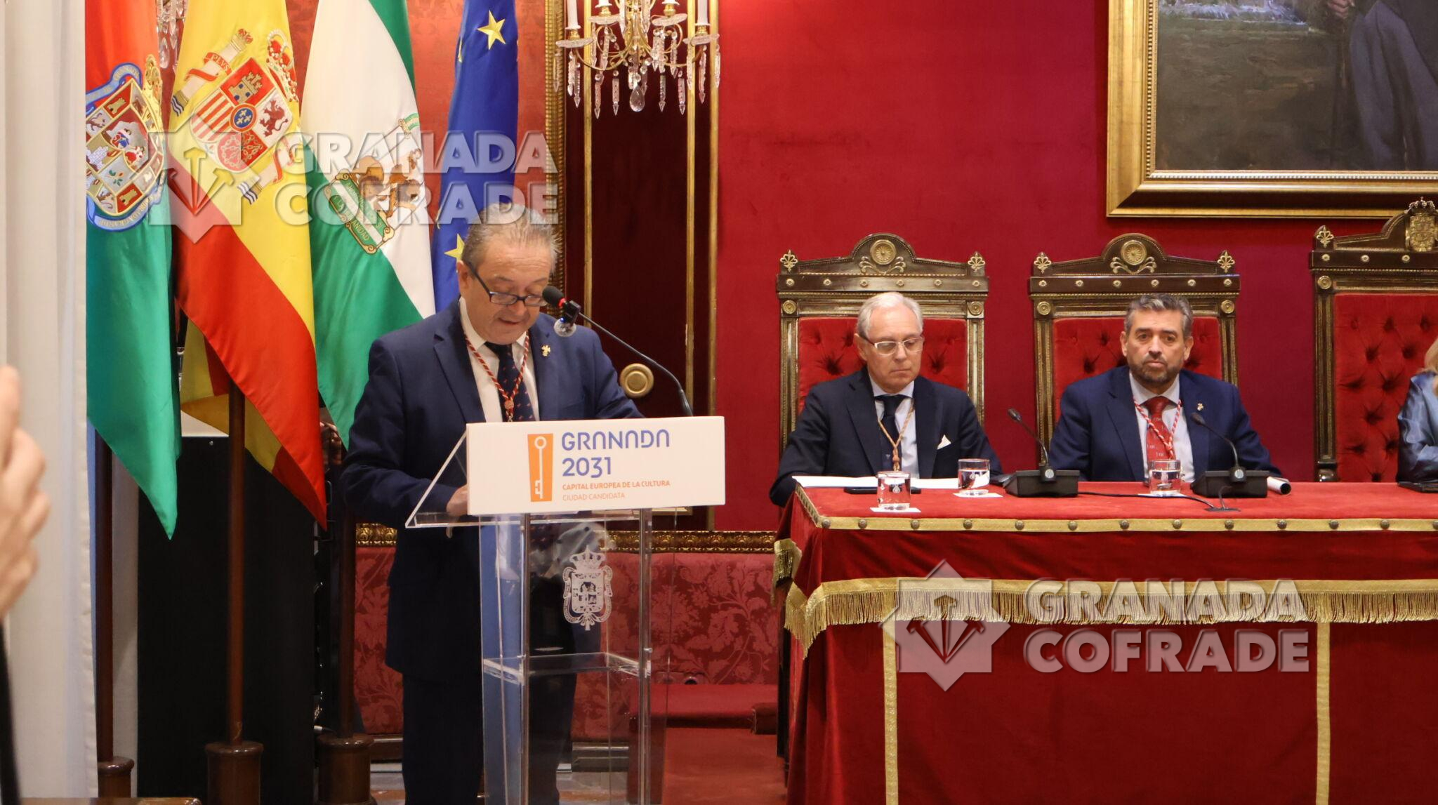 Una presentación en la que Francisco Barroso habló de la espiritualidad «que sale del himno Eucarístico de Santo Tomás de Aquino, de la obra sacramental de Federico, en los Autos Sacramentales de Lope de Vega o de Calderón, está en las palabras de Conchita Barrecheguren en su carmen de la Antequeruela, de fray Leopoldo que supo llevar junto al pan material el pan Eucarístico». Palabras de ánimo para continuar «adelante que al recibirte a Ti vivo te vemos en cada cosa aunque parezcas dormido» y recordó tantas necesidades y miserias que invaden a muchos ciudadanos, hombres y mujeres, en estos años duros para muchos. Sobre el texto puso nombres propios de cofrades que lo dieron todo por la hermandad, escultor de las imágenes, Espinosa Cuadros, hermanos mayores, capataces, donantes y personas que han «escrito las páginas de la historia de esta cofradía».