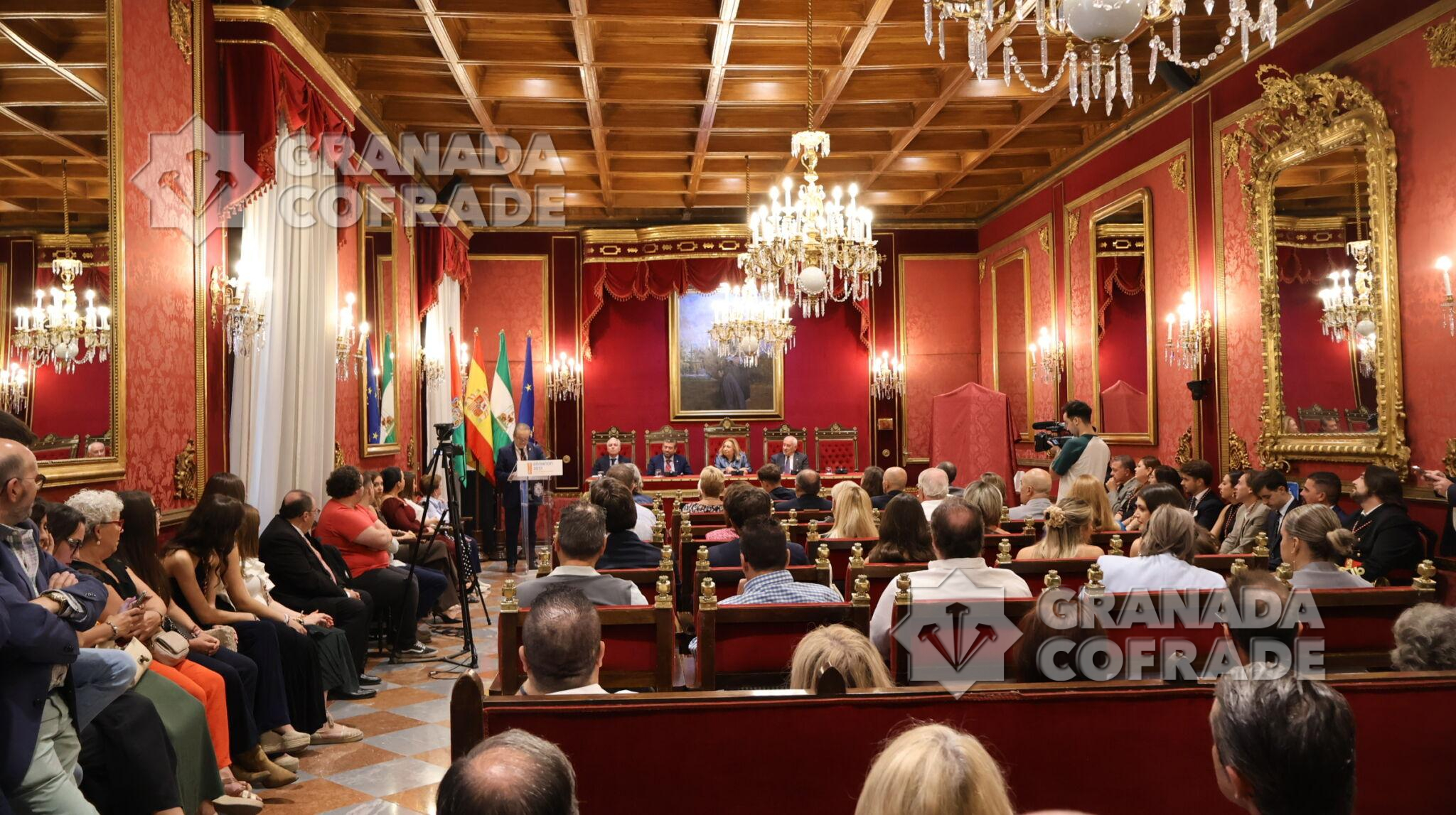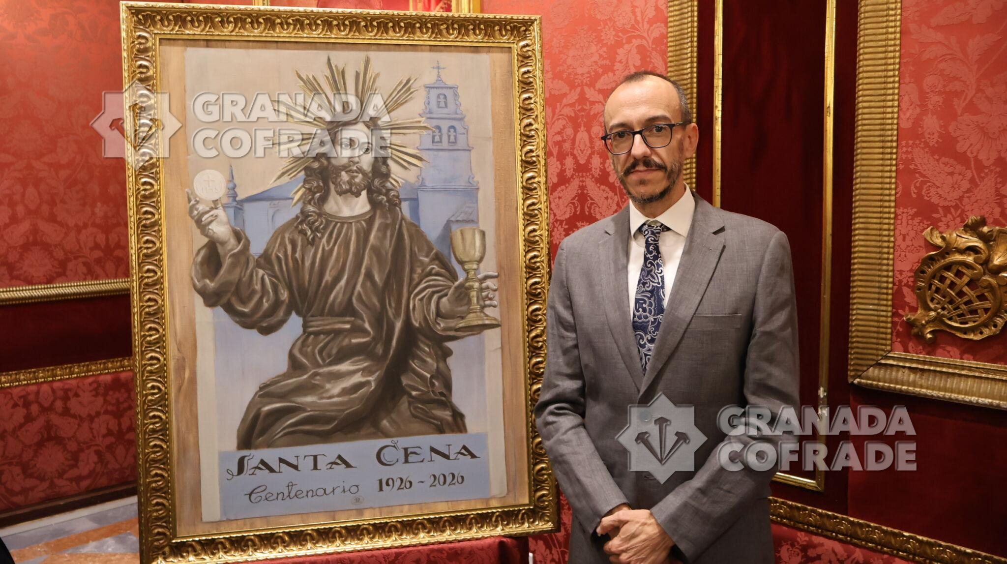 Francisco Barroso abrió ayer la caja de las sorpresas de un cartel «realizado al óleo sobre lienzo y que recuerda el Art-decó de los años cuarenta, reinterpretando la portada de la publicación de 1944 «Acuarelas Granadinas» de José Gómez Sánchez-Reina que fuera su hermano mayor y prócer de esta hermandad del Domingo de Ramos. Una presentación realizada en el Salón de Plenos del Ayuntamiento de Granada en la que destacó los sentimientos que levanta la obra, las características del autor del cartel y las distintas expresiones que puede encontrar el hermano de esta cofradía a punto de ser centenaria. «El Cáliz ahí está y la Sagrada Forma en la que Juan Díaz Losada convierte en un altar que llega hasta nuestros corazones, en una luz que es fruto de la minuciosidad de sus detalles y de la delicadeza de sus pinceladas y abajo la leyenda: Santa Cena, Centenario, 1926-2026». La hermana número 1 de la cofradía, Carmen Torres, y el propio presentador del cartel fueron los encargados de destaparlo a los ojos del público.