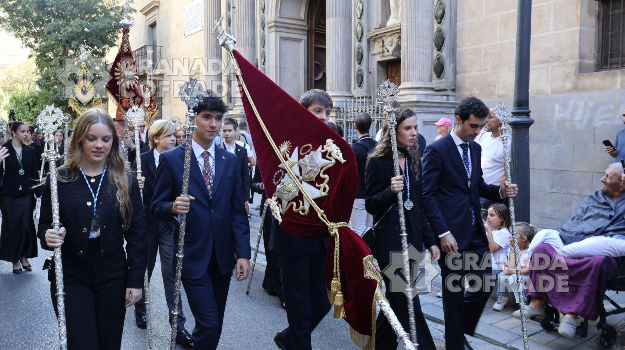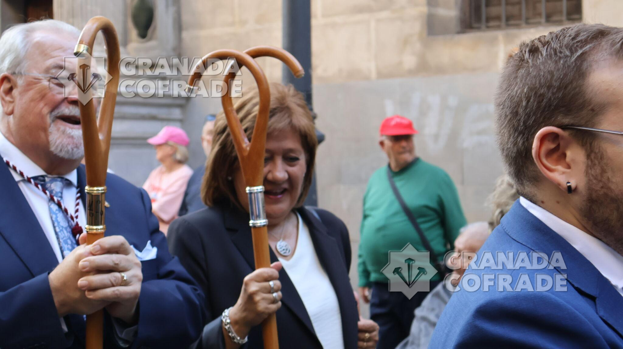 La imagen de San Rafael, obra original de Bernardo Francisco de Mora, estrenó ayer una nueva túnica realizada en color verde «por celebrarse este año el Jubilar de la Esperanza y tener ese símbolo del Año que estamos celebrando en la Iglesia», como recordó fray Juan José Hernández, a los enfermos que estaban en la puerta del Hospital de San Rafael, lugar al que llegaba procedente de la basílica de San Juan de Dios a los sones de «Pescador de Hombres». A las cinco de la tarde se ponían en la puerta de la basílica la cruz basilical y la umbrela del templo. Después, le seguían las representaciones de las hermandades de Jesús Despojado de sus Vestiduras, Cristo de la Buena Muerte (Ferroviarios), Esperanza y Santo Crucifijo de San Agustín. La presidencia de la hermandad del Santo Escapulario de San Juan de Dios la ostenta José Luis Ramírez que iba precedido por la representación de los Caballeros de San Juan de Dios. En la presidencia también miembros de la junta directiva de la Asociación de Vecinos de San Juan de Dios-Boquerón con su presidenta Cruz Palma.