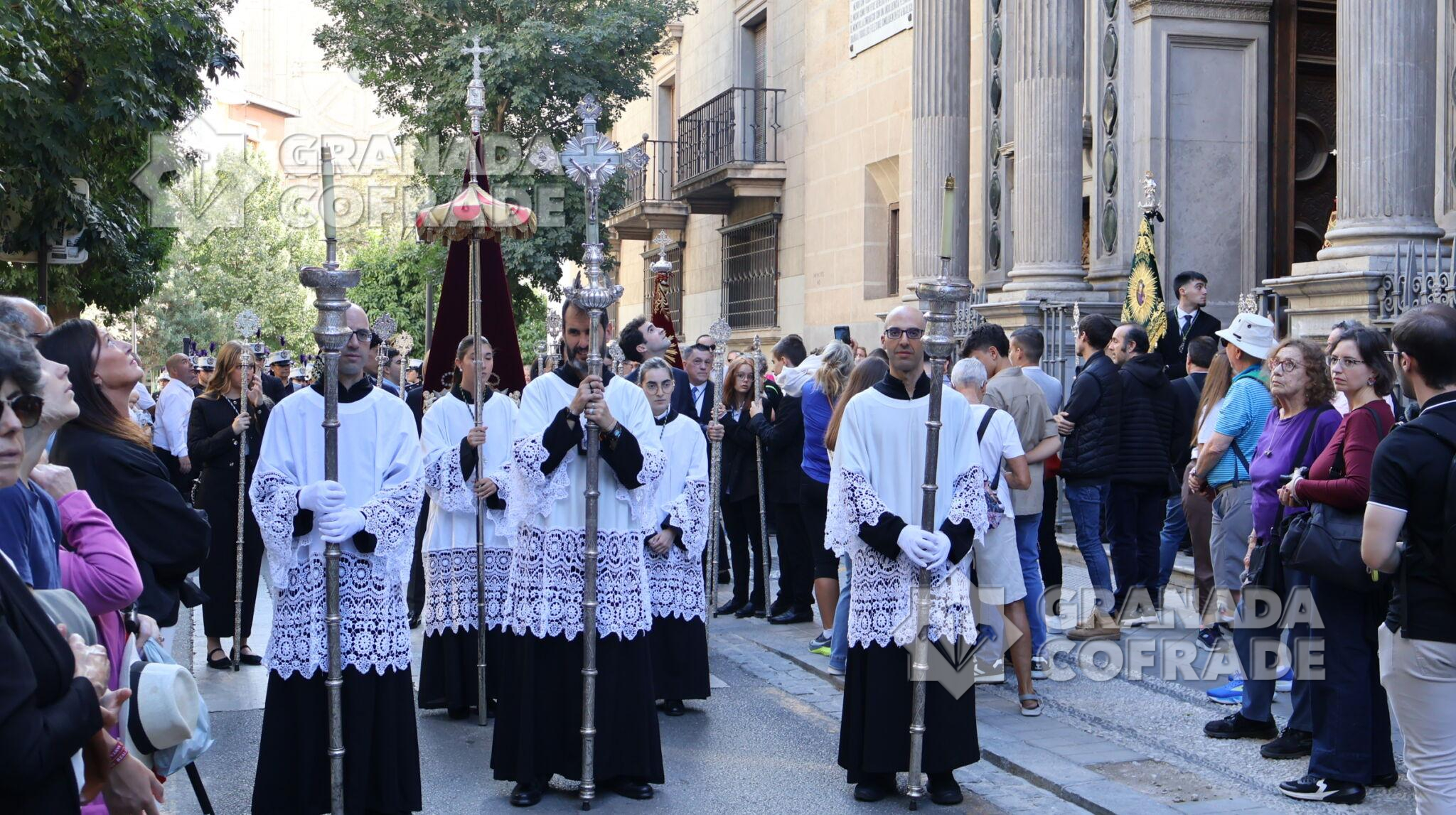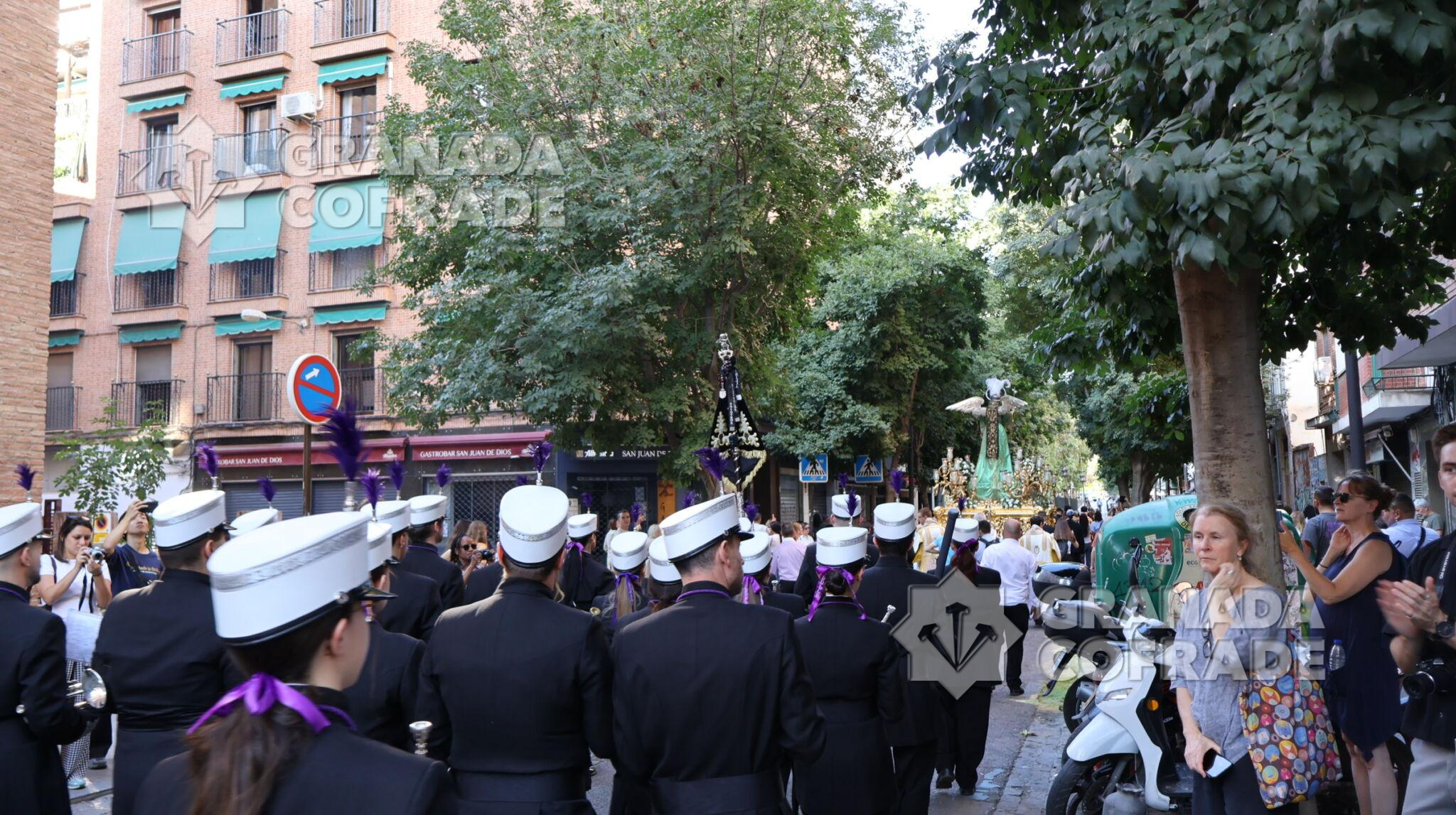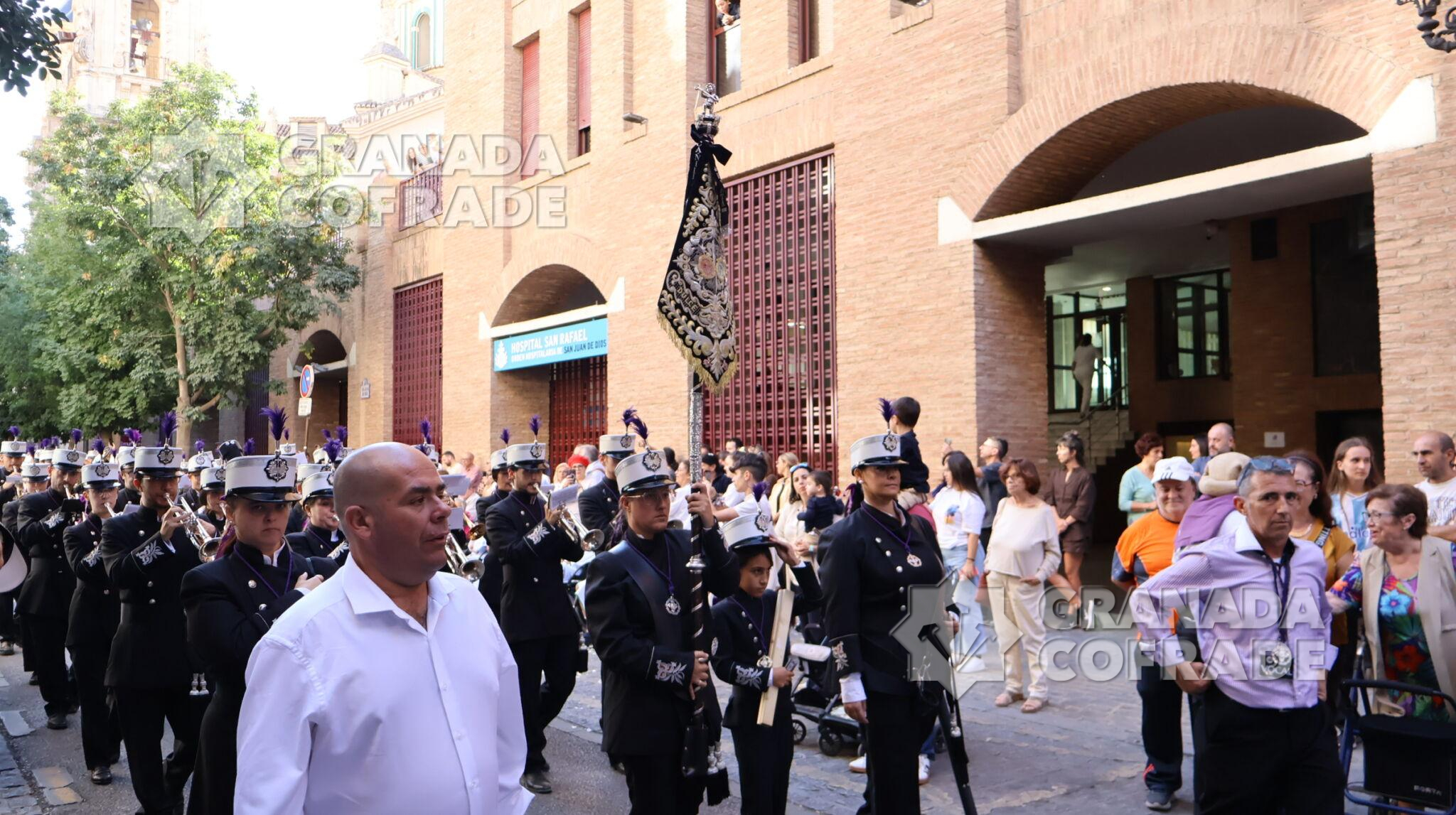 El paso procesional de San Rafael estrenaba nueva fase del bordado de los faldones con granadas bordadas en oro y el escudo de la Orden Hospitalaria e iba adornado con claveles blancos, principalmente, lentisco y eucalipto tanto los frisos como sus jarras. Era portado por costaleras a las órdenes de Curro Quiles y José Carlos Torres, y el acompañamiento musical por la Agrupación del Dulce Nombre de Jesús. El recorrido procesional siguió por la calle San Juan de Dios hasta Nueva del Santísimo y Navarrete para pasar por el interior del barrio y regresar al templo basilical donde se celebró el tercer día de novena al Hermano Mayor de la Orden Hospitalaria.
