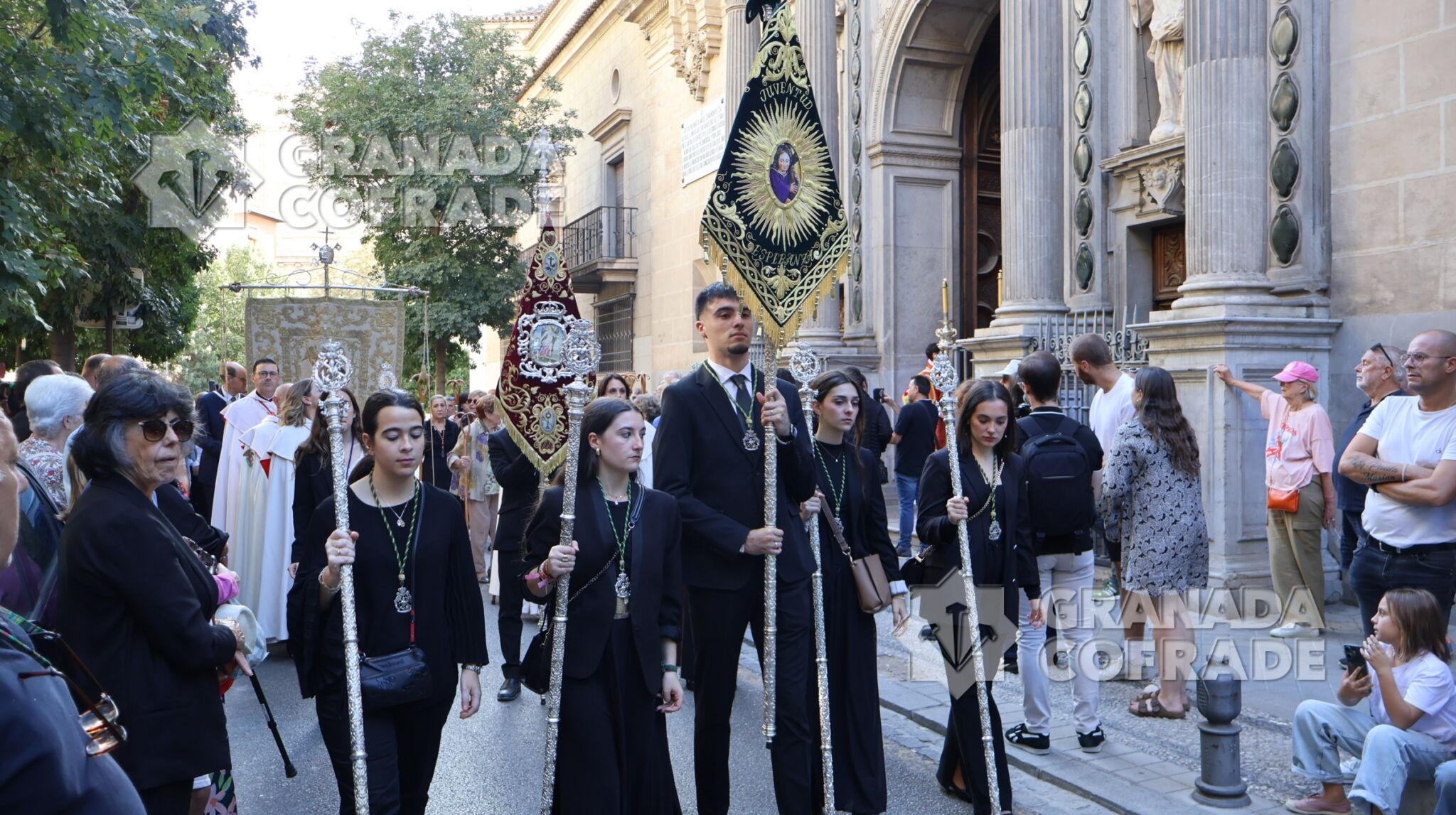 La imagen de San Rafael, obra original de Bernardo Francisco de Mora, estrenó ayer una nueva túnica realizada en color verde «por celebrarse este año el Jubilar de la Esperanza y tener ese símbolo del Año que estamos celebrando en la Iglesia», como recordó fray Juan José Hernández, a los enfermos que estaban en la puerta del Hospital de San Rafael, lugar al que llegaba procedente de la basílica de San Juan de Dios a los sones de «Pescador de Hombres». A las cinco de la tarde se ponían en la puerta de la basílica la cruz basilical y la umbrela del templo. Después, le seguían las representaciones de las hermandades de Jesús Despojado de sus Vestiduras, Cristo de la Buena Muerte (Ferroviarios), Esperanza y Santo Crucifijo de San Agustín. La presidencia de la hermandad del Santo Escapulario de San Juan de Dios la ostenta José Luis Ramírez que iba precedido por la representación de los Caballeros de San Juan de Dios. En la presidencia también miembros de la junta directiva de la Asociación de Vecinos de San Juan de Dios-Boquerón con su presidenta Cruz Palma.