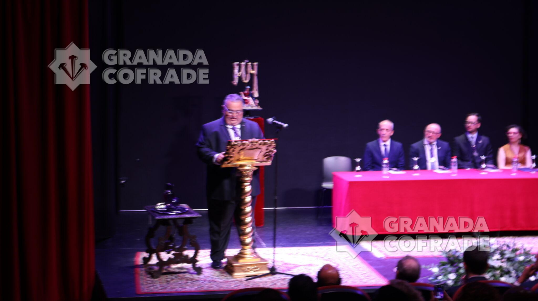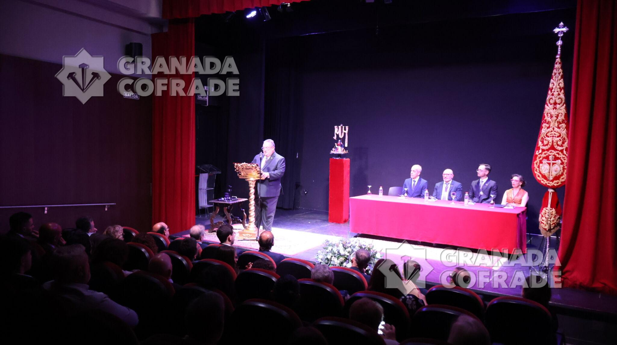 Realmente siente el pregonero a los Titulares de la cofradía a quienes dedicó poemas con los que mostraba su profunda vinculación a la cofradía centenaria, recordó momentos e instantes vividos a lo largo de la trayectoria de estos ya casi cien años de existencia, a sus hermanos mayores y miembros de juntas de gobierno. Recordó -recogido de la prensa de los años fundacionales anécdotas y recuerdos, las luces y las sombras de esta corporación y los difíciles momentos vividos «en distintas etapas como los «tiempos de la II República donde ninguna cofradía salió pero se mantuvo la llama de la fe en nuestros Titulares. La Guerra Civil que también nos tuvo alejados de las calles granadinas o los difíciles años setenta que abrieron una profunda crisis en las hermandades de toda Andalucía». Ruiz Pastor también revivió «los difíciles años de la reciente pandemia del Covid que gracias a las videollamadas y nuevas tecnologías tejimos unos lazos de hermandad extraordinarios».
