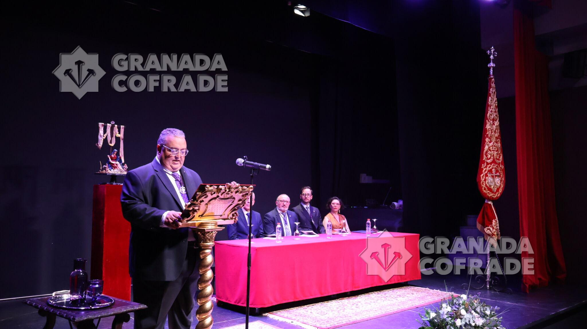 Realmente siente el pregonero a los Titulares de la cofradía a quienes dedicó poemas con los que mostraba su profunda vinculación a la cofradía centenaria, recordó momentos e instantes vividos a lo largo de la trayectoria de estos ya casi cien años de existencia, a sus hermanos mayores y miembros de juntas de gobierno. Recordó -recogido de la prensa de los años fundacionales anécdotas y recuerdos, las luces y las sombras de esta corporación y los difíciles momentos vividos «en distintas etapas como los «tiempos de la II República donde ninguna cofradía salió pero se mantuvo la llama de la fe en nuestros Titulares. La Guerra Civil que también nos tuvo alejados de las calles granadinas o los difíciles años setenta que abrieron una profunda crisis en las hermandades de toda Andalucía». Ruiz Pastor también revivió «los difíciles años de la reciente pandemia del Covid que gracias a las videollamadas y nuevas tecnologías tejimos unos lazos de hermandad extraordinarios».