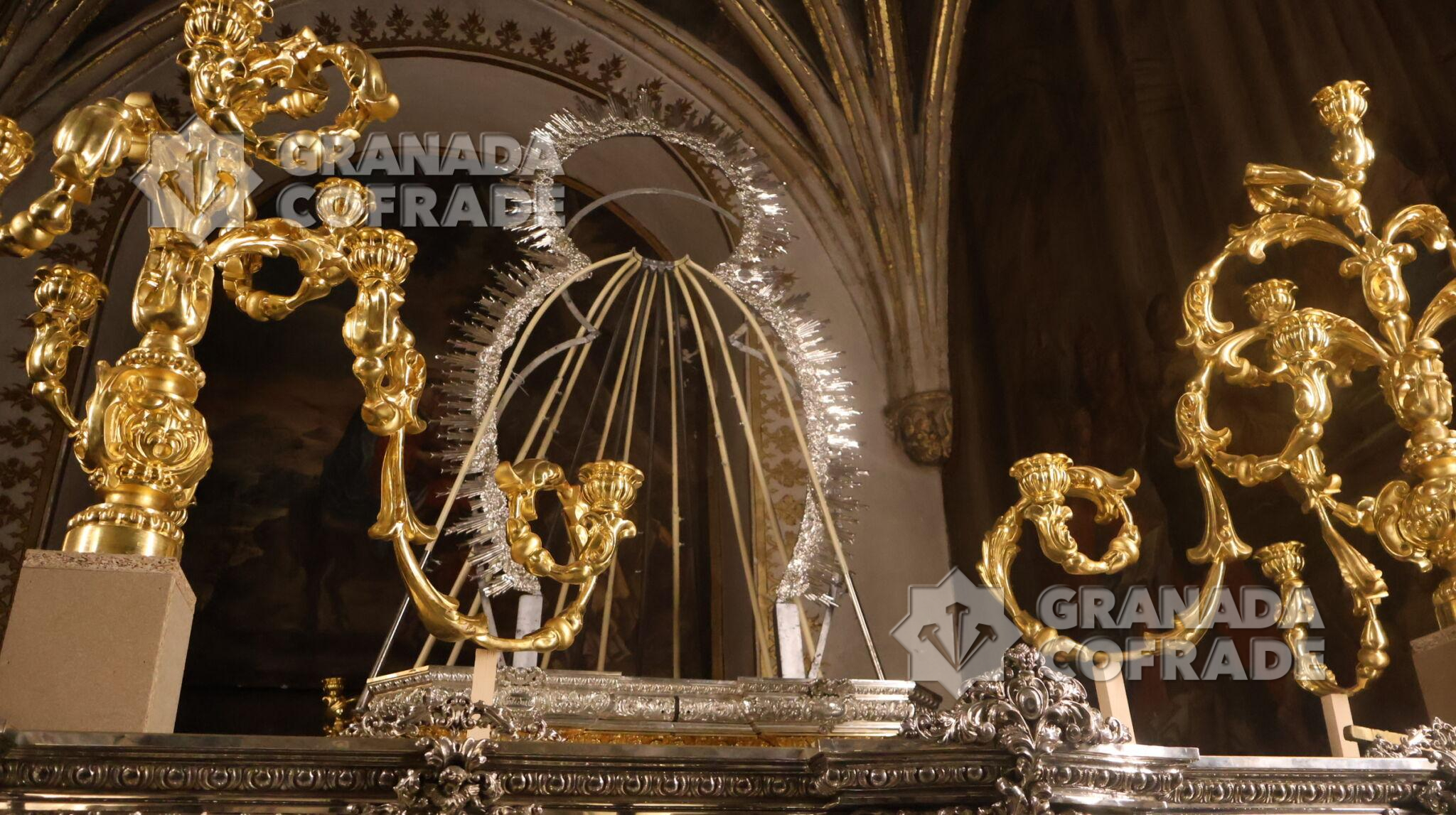 En esta ocasión la Virgen de la Victoria se presentará en su paso procesional, sin palio y como novedad, una ráfaga recogiendo el perfil de la Santísima Virgen que ha sido cedida por la hermandad de Nuestra Señora del Rosario, de San Julián, de la capital andaluza.