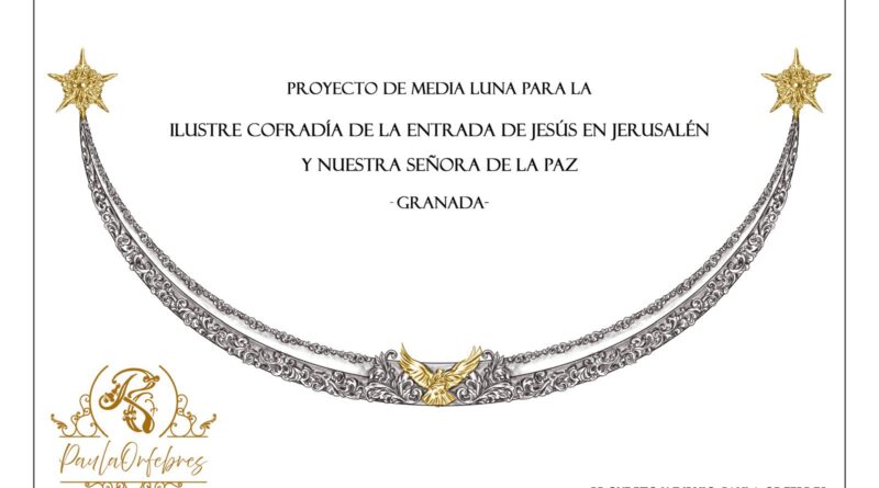El proyecto consiste en la realización de una media luna de 100 x 45 cm, diseñada ex profeso por Paula Orfebres siguiendo la línea artística de la Borriquilla. La pieza destaca por la riqueza de sus motivos vegetales y decorativos minuciosos, con un elemento central: una paloma corpórea con alas abiertas y una rama de olivo en el pico, símbolo de Paz y entendimiento entre las personas, en homenaje a Nuestra Señora de la Paz.