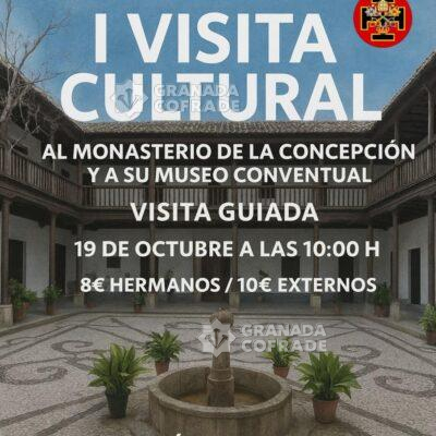 La Hermandad del Santo Sepulcro y Nuestra Señora de la Soledad en el Calvario ha anunciado la celebración de su I Visita Cultural, la cual tendrá lugar el próximo sábado 19 de octubre a las 10:00 horas. La actividad consistirá en una visita guiada al Monasterio de la Concepción y a su museo conventual, una joya del patrimonio granadino que conserva un valioso legado artístico y religioso.