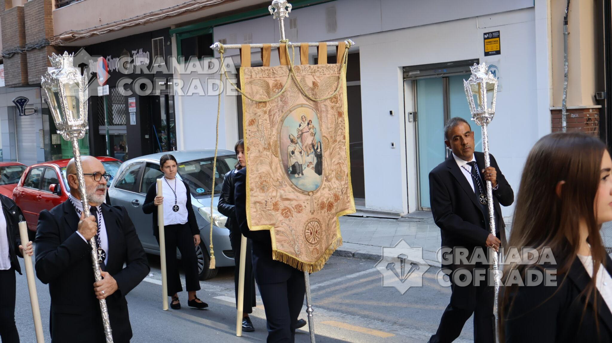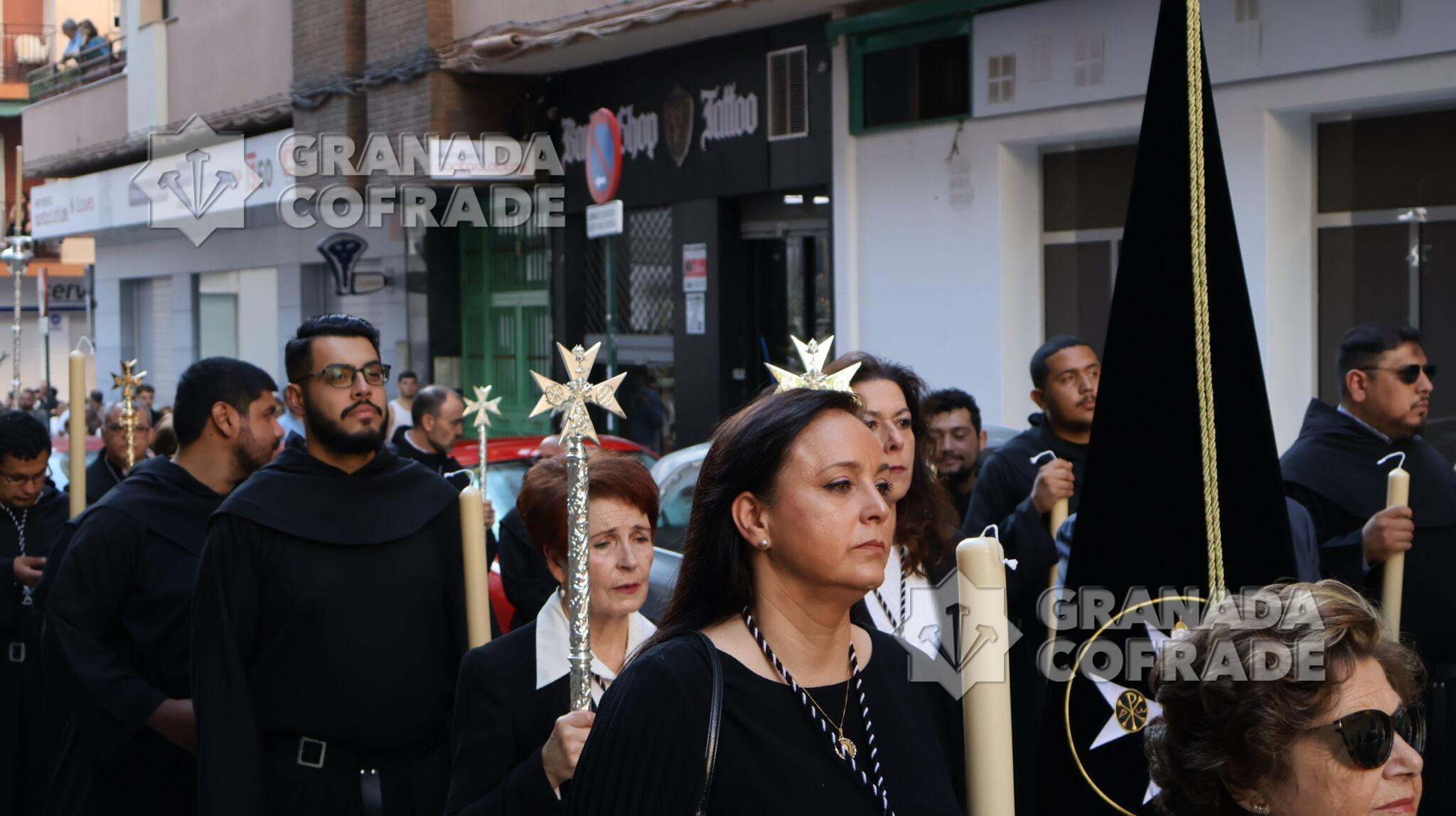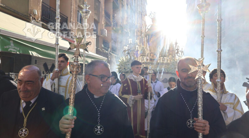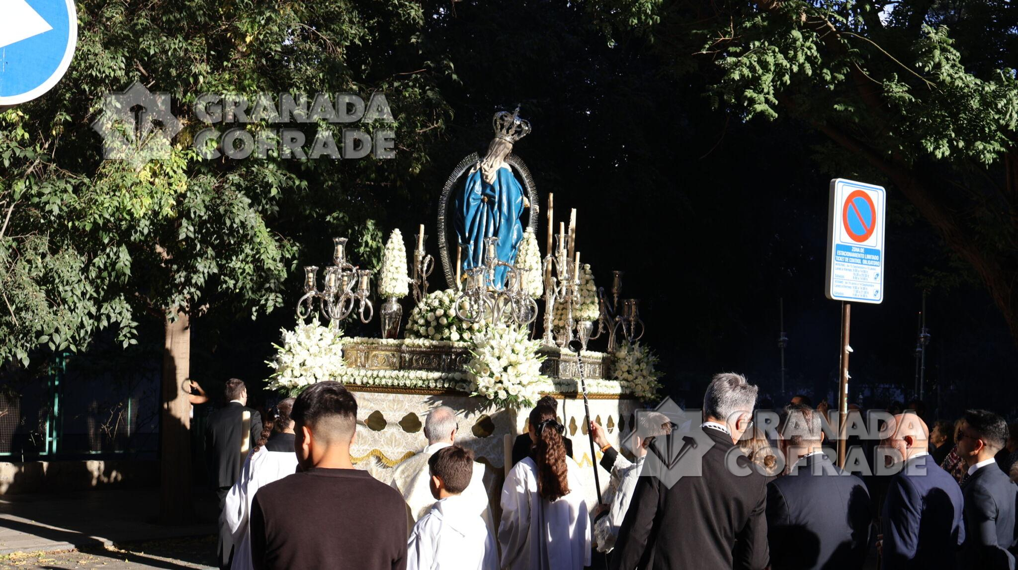 La procesión de Nuestra Señora de la Consolación y Correa de San Agustín, de la Archicofradía de su nombre, recorrió ayer las calles que separan el barrio de La Rosaleda del centro de la capital hasta llegar por Martínez de la Rosa y Gran Capitán hasta la parroquia de Santa María Magdalena para realizar en este lugar la estación de gloria de esta corporación letífica agustina.