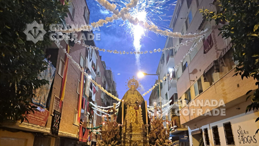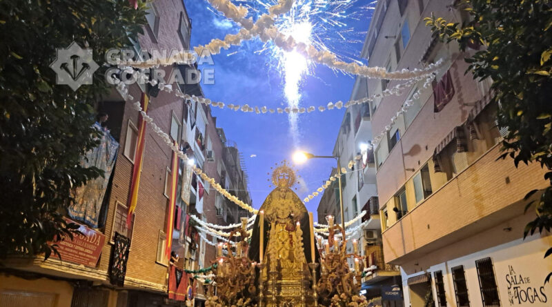 Un año más, la Virgen del Amor y el Trabajo volvió a salir a las calles de Granada para encontrarse con los vecinos del barrio de “Los Pajaritos”. La procesión, organizada por la Cofradía de los Ferroviarios, partió a las seis y media de la tarde desde la capilla anexa a San Juan de Letrán, acompañada por una traca de pirotecnia que marcó el inicio del recorrido. Como en años anteriores, acompañaron a la hermandad el recién elegido pregonero, Tito Ortiz, y la edil presidenta del distrito, Ana Sánchez.