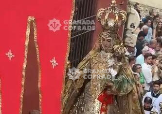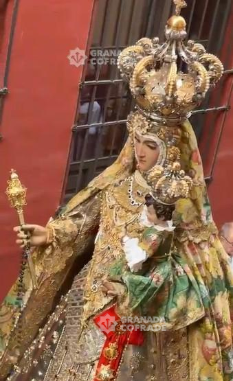 Tres horas y media estuvo en las calles del centro de la ciudad y del Realejo el cortejo de la Archicofradía de Nuestra Señora del Rosario, de Granada, que partió a las seis de la tarde del interior del templo de Santo Domingo. Una palma real saludó la salida de la venerada imagen e inmediatamente la banda de música Ángeles de Granada interpretó el himno nacional de España. La Salve Marinera fue después coreada por los numerosos vecinos y devotos de la Virgen del Rosario que llenaban la plaza de Santo Domingo, y los representantes de la Armada Española que formaban en el cortejo y daban escolta a la Virgen.