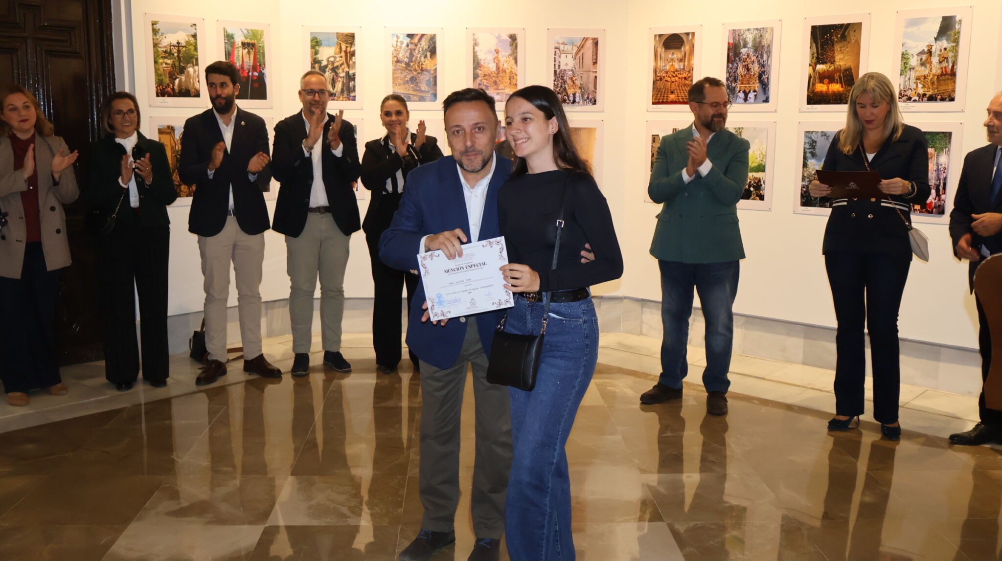 En un acto celebrado anoche en la sala de exposiciones del Centro Cultural Gran Capitán, se entregaron ayer los premios del concurso fotográfico que anualmente convoca la Federación de Cofradías. Fue numeroso el público que participó indicando el presidente federativo, Armando Ortiz, que «en las fotos hay más que una instantánea. Muchas veces decimos que los costaleros cuando rachean rezan con los pies. Pues yo tengo que decir que los fotógrafos también rezan y sus fotografías nos ayudan a rezar. Por tanto estamos agradecidos con su trabajo y su esfuerzo por nuestra Semana Santa que tiene un gran futuro». Estuvieron presentes varios hermanos mayores en la clausura y entrega de los premios, además de los ediles Francis Almohalla y Carolina Amate junto con el edil socialista Juanjo Ibáñez. La concejala de Fiestas Mayores señaló que «es una satisfacción para mi que el cartel de 2026 sea una instantánea realizada en la nueva Carrera Oficial» y el consiliario federativo, José Gabriel Martín, dijo que es «importante tener en cuenta que todos estamos llamados a ser imagen del Amor de Dios, pero , ¡cuidado¡, que una imagen desenfocada, que una vida desenfocada, inapropiada para el contenido o tratada en exceso puede hacer que nuestro producto desvirtúe la información e incluso que adquiera más protagonismo del deseado para mal».