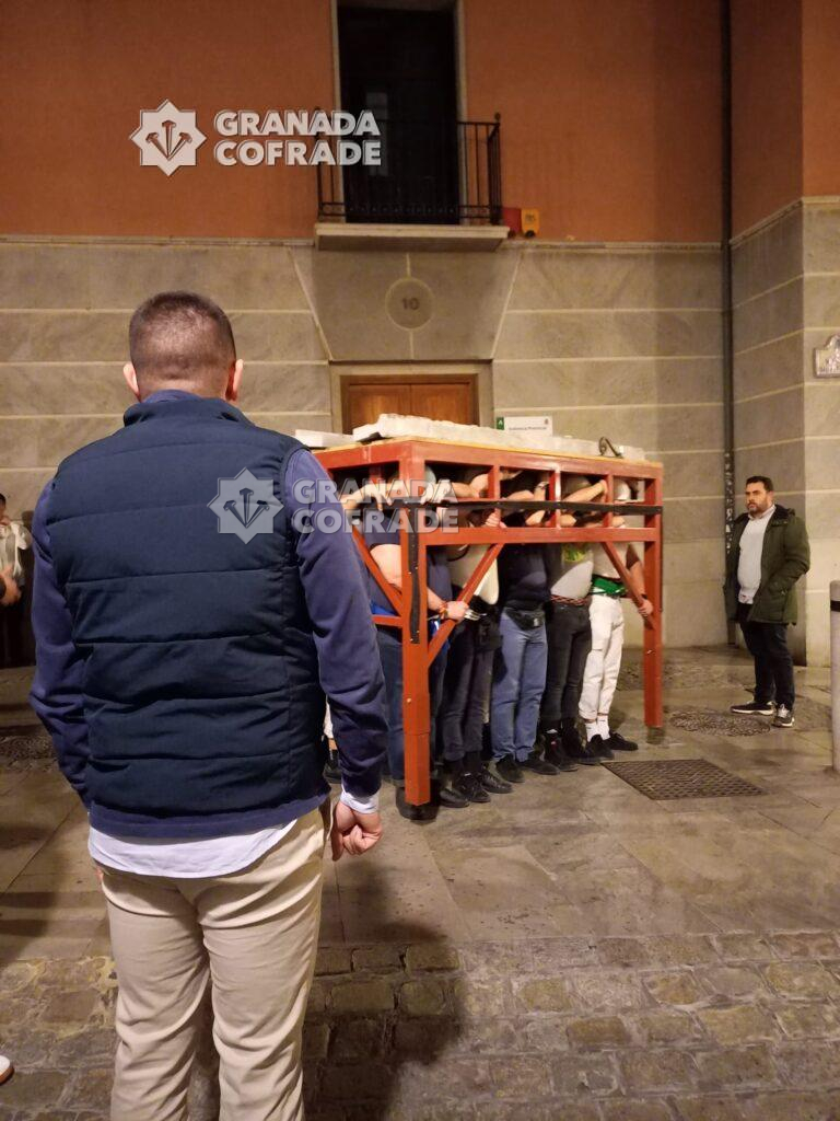 En la noche del pasado viernes tuvo lugar el primer ensayo de la cuadrilla de costaleros de Nuestra Señora de la Granada y el Niño Jesús de los Reyes. Tras la «igualá» del pasado día 30 de octubre, en donde se dieron cita más de 160 aspirantes, tan solo 60 pudieron entrar en una de las dos cuadrillas, alta y baja, que se han hecho para la próxima salida de la Virgen de cara a presidir la Vigilia de la Inmaculada del siete de diciembre en la Catedral.
