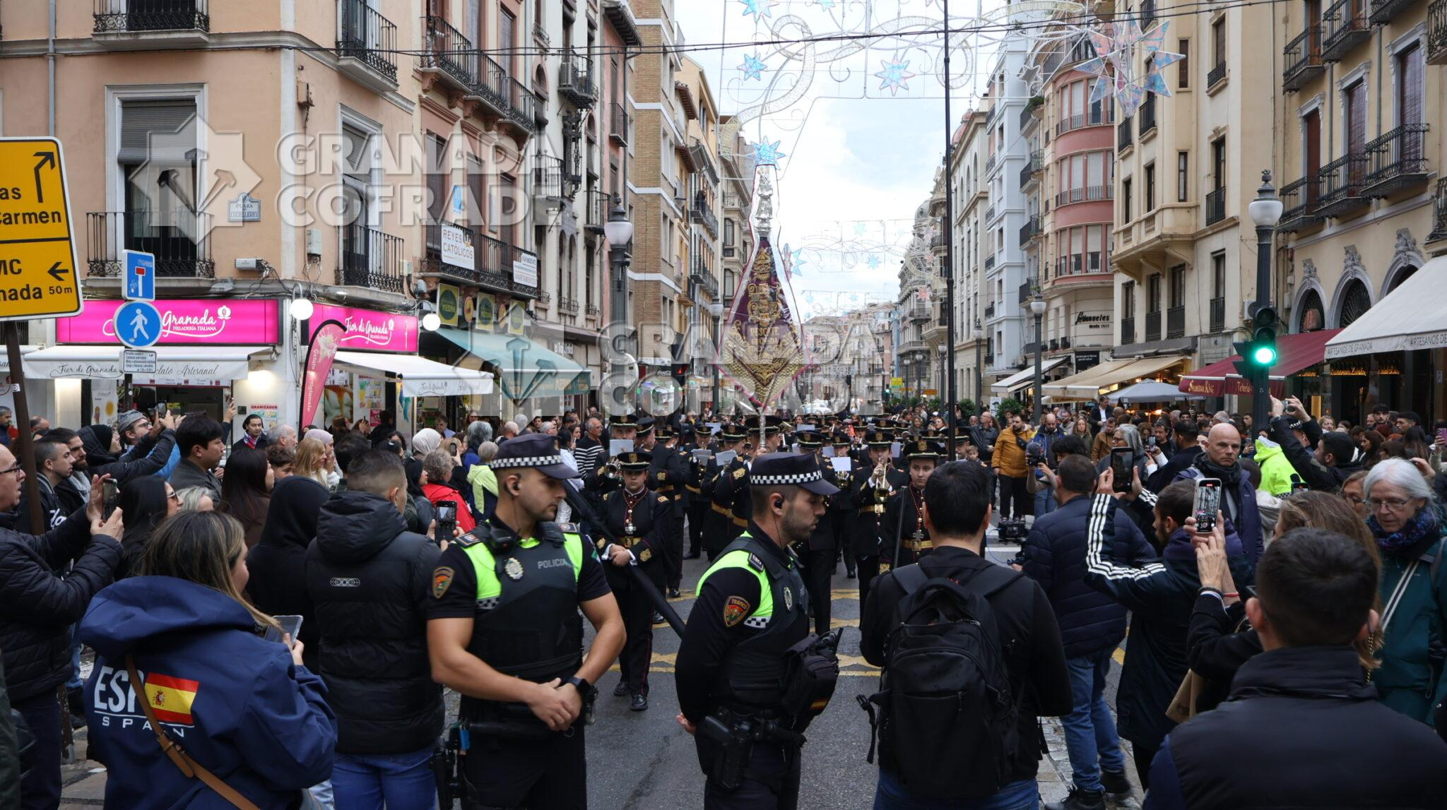 Desde plaza de Mariana Pineda subió por San Matías la agrupación musical «Jesús del Rescate» que dirige David Jiménez interpretando buen número de marchas procesionales de su repertorio hasta llegar por la calle de la Colcha a Reyes Católicos para subir hasta Plaza Nueva. También tenía su meta en este lugar la banda de cornetas y tambores de Jesús del Gran Poder, que dirige José Manuel Fernández. Se habían formado en la plaza del Triunfo, por delante del Arco de Elvira y desde ese punto hasta Plaza Nueva también fueron dando pinceladas del nivel musical alcanzado también por esta formación del Martes Santo. Ante el Palacio de la Real Chancillería, sede del Tribunal de Justicia de Andalucía se dejaron caer cada banda con la interpretación de tres marchas procesionales ante numeroso público. «Seres de Luz», «Amaré» y «Rescátame» fueron las marchas que, de manera alternativa, interpretó la agrupación musical de la hermandad establecida en la parroquia de la Magdalena.