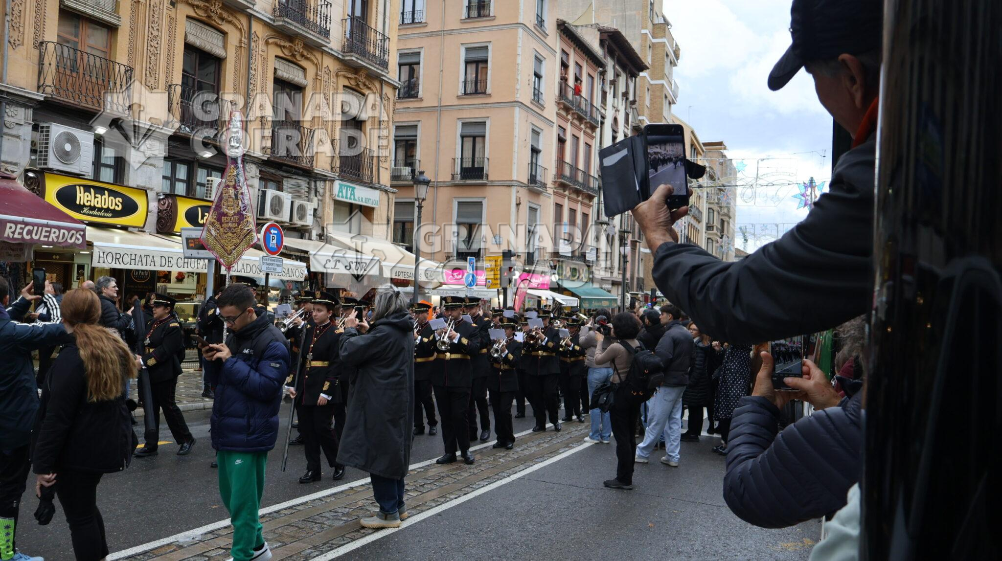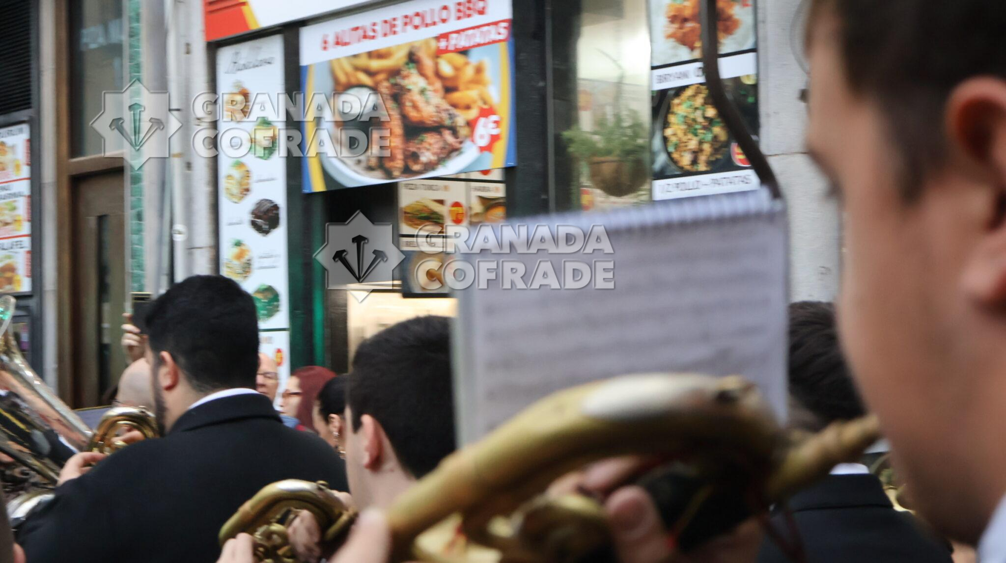 Desde plaza de Mariana Pineda subió por San Matías la agrupación musical «Jesús del Rescate» que dirige David Jiménez interpretando buen número de marchas procesionales de su repertorio hasta llegar por la calle de la Colcha a Reyes Católicos para subir hasta Plaza Nueva. También tenía su meta en este lugar la banda de cornetas y tambores de Jesús del Gran Poder, que dirige José Manuel Fernández. Se habían formado en la plaza del Triunfo, por delante del Arco de Elvira y desde ese punto hasta Plaza Nueva también fueron dando pinceladas del nivel musical alcanzado también por esta formación del Martes Santo. Ante el Palacio de la Real Chancillería, sede del Tribunal de Justicia de Andalucía se dejaron caer cada banda con la interpretación de tres marchas procesionales ante numeroso público. «Seres de Luz», «Amaré» y «Rescátame» fueron las marchas que, de manera alternativa, interpretó la agrupación musical de la hermandad establecida en la parroquia de la Magdalena.