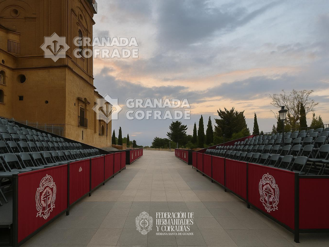 La Carrera Oficial proyectada dará comienzo en el Paseo de la Catedral, donde se instalará un graderío con capacidad inicial para aproximadamente 500 personas. El recorrido continuará por calle Arco de Palacio y calle Santa María del Buen Aire, accediendo a la S.A.R.I. Catedral de Guadix por la Puerta de Santiago para la realización de la Estación de Penitencia en el interior del templo.